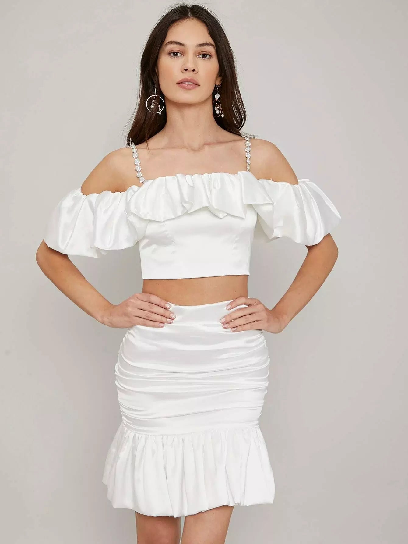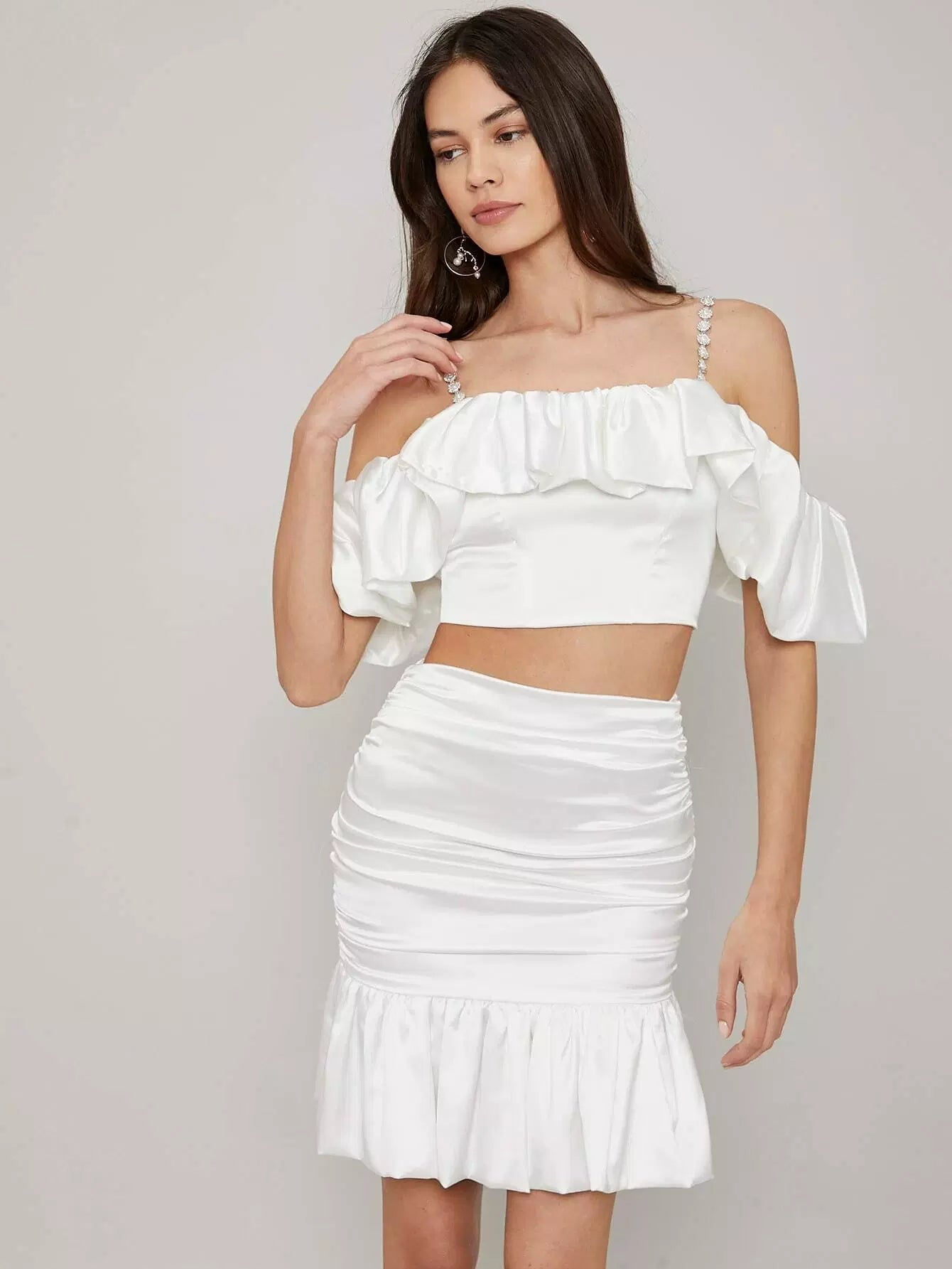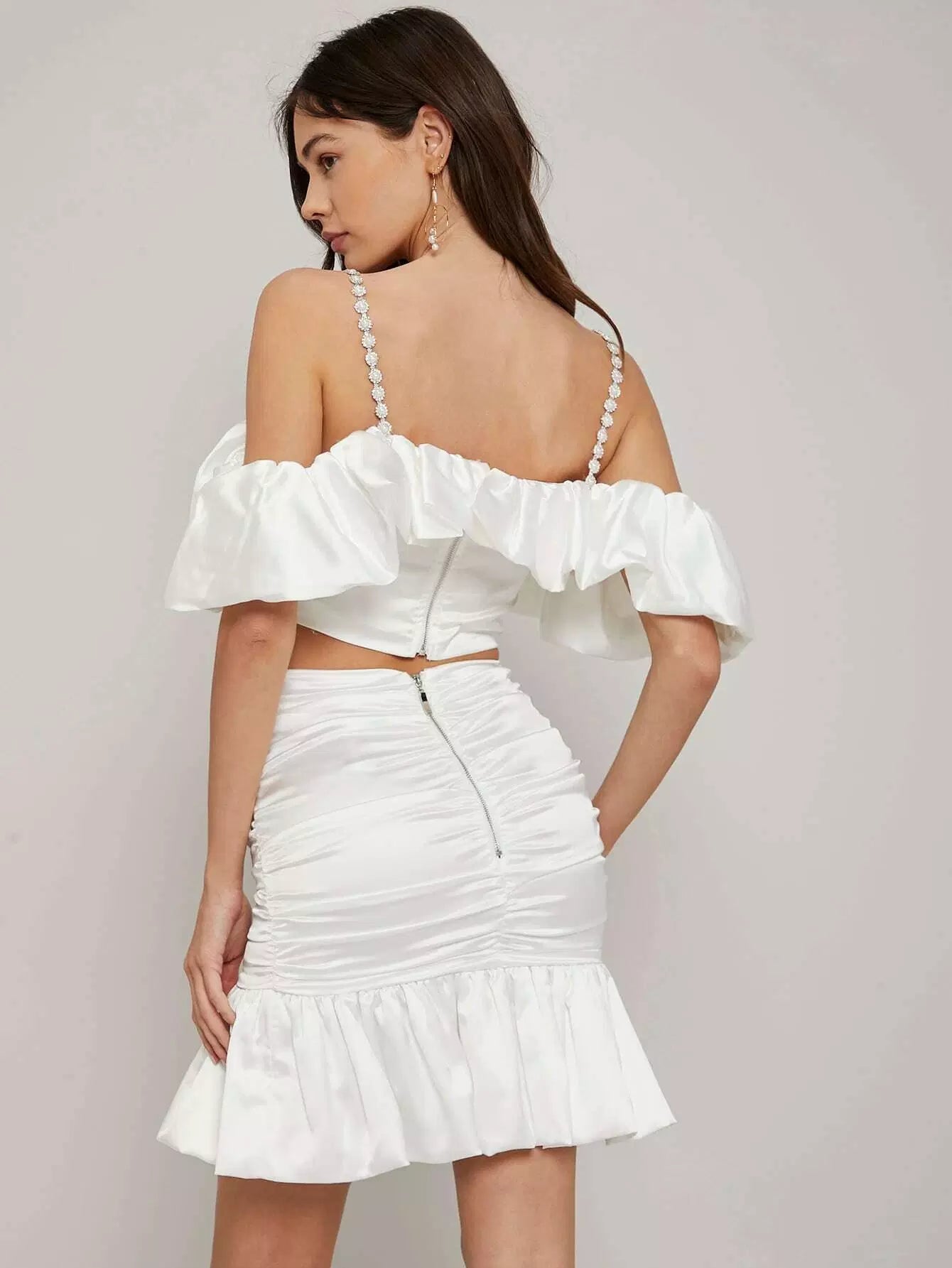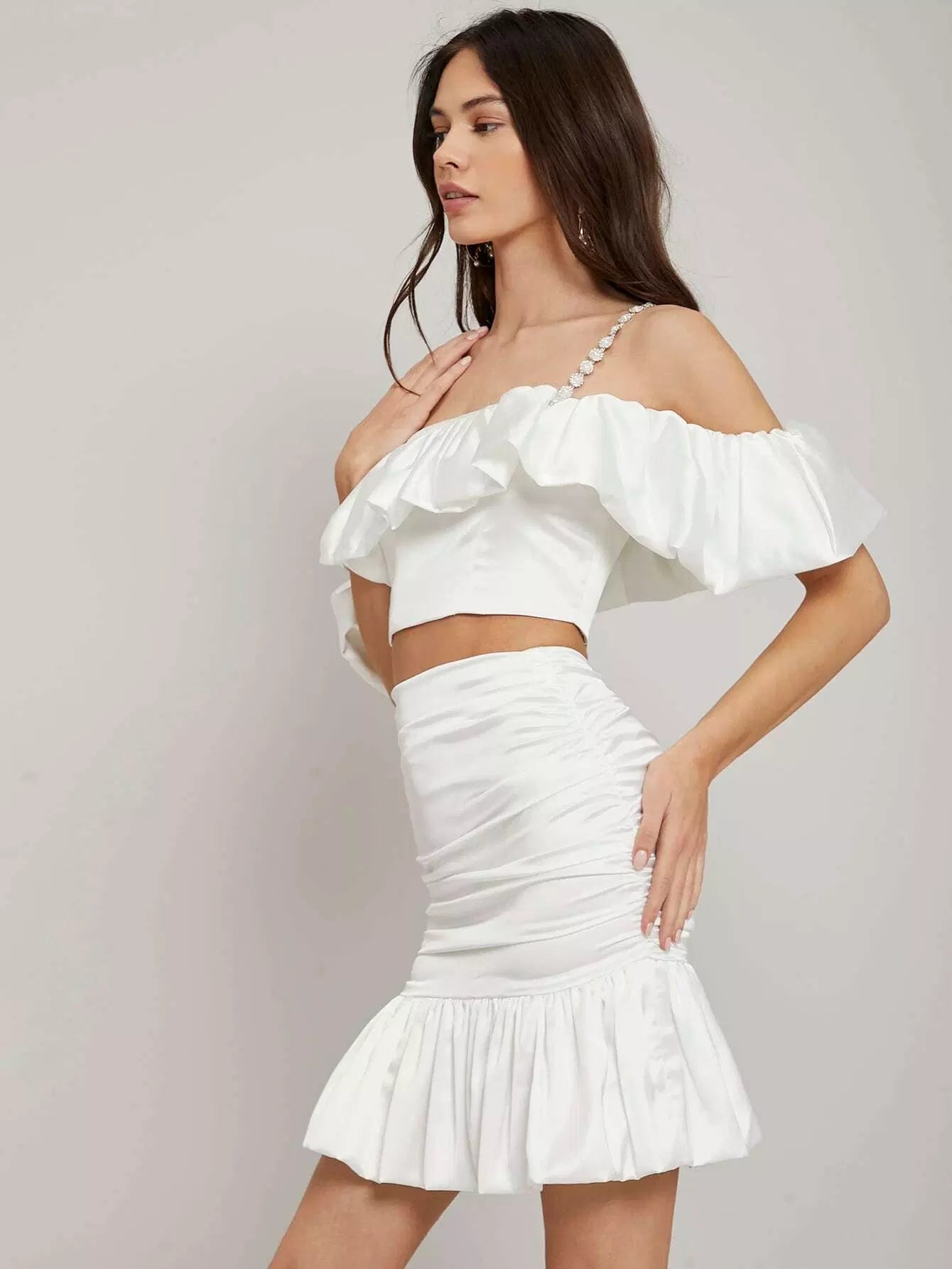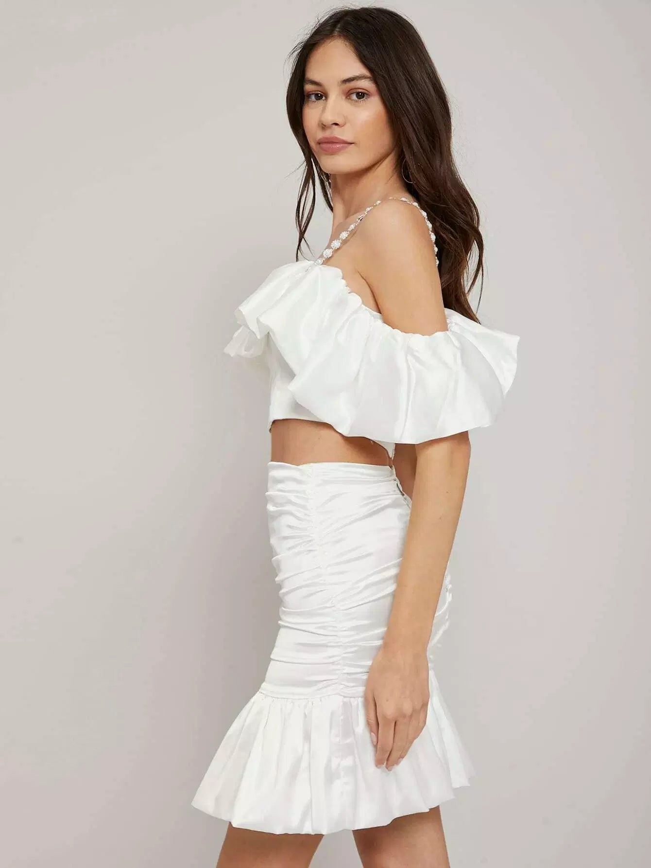 طقم قميص قصير من الساتان وتنورة حورية البحر