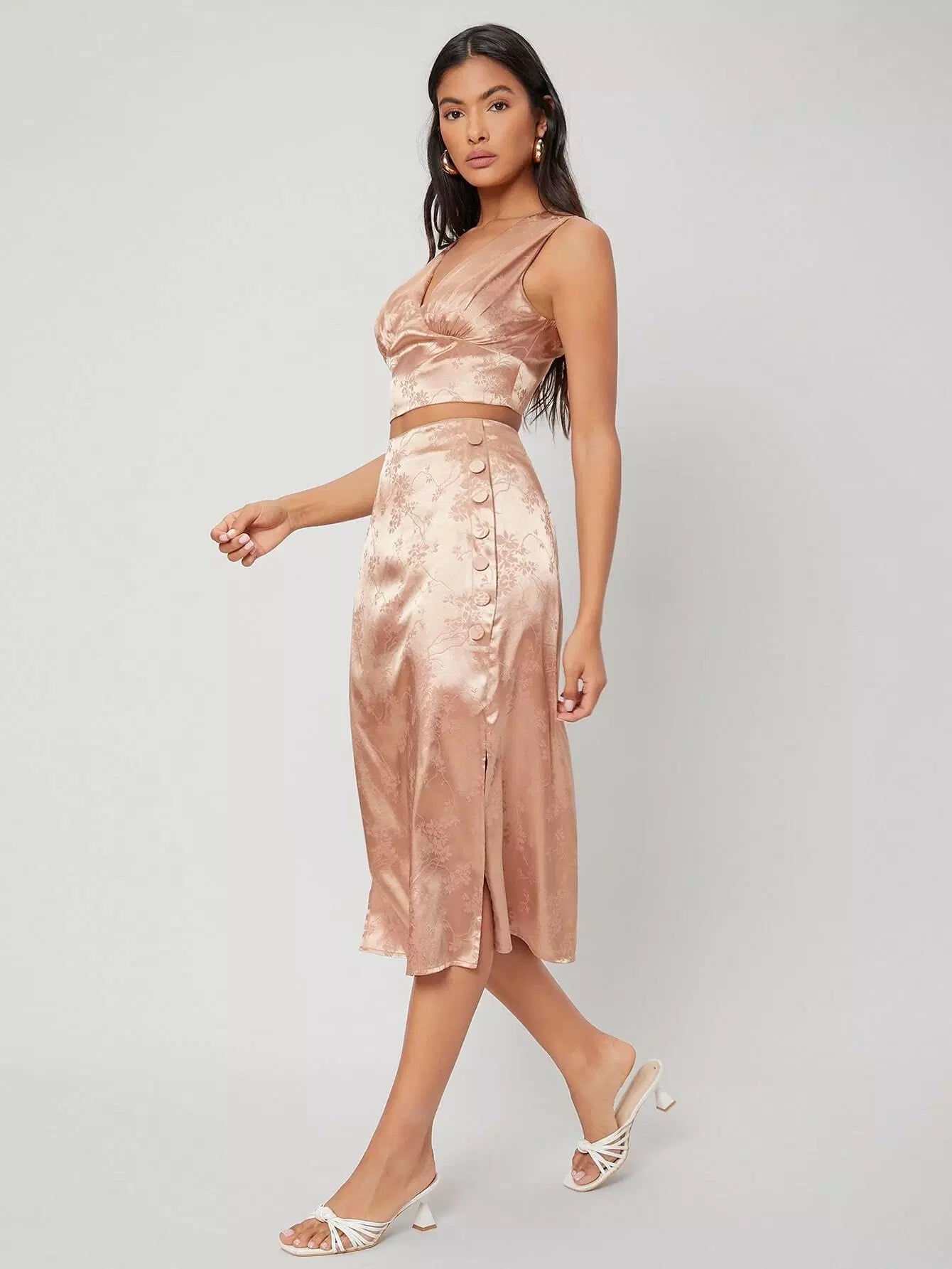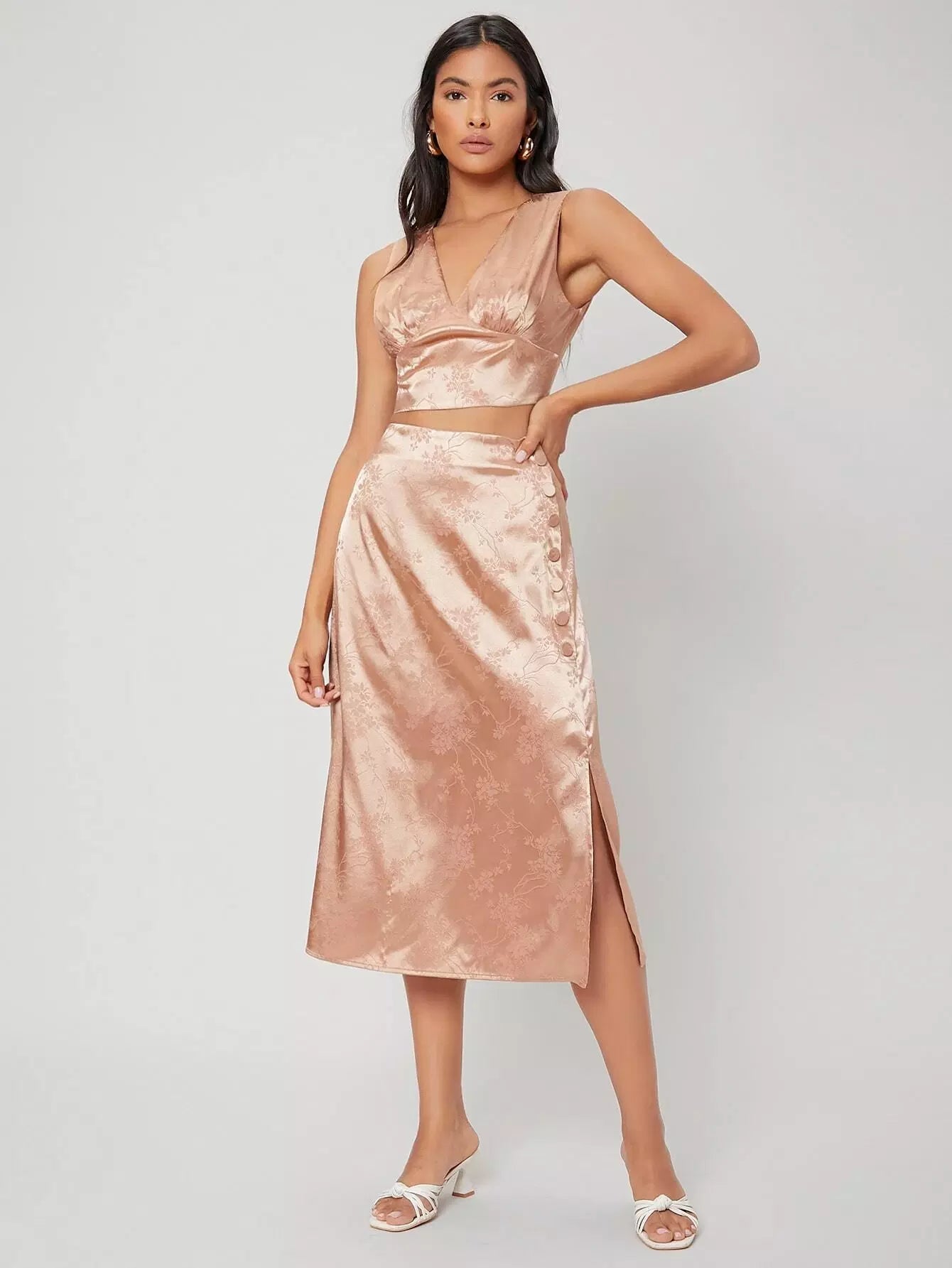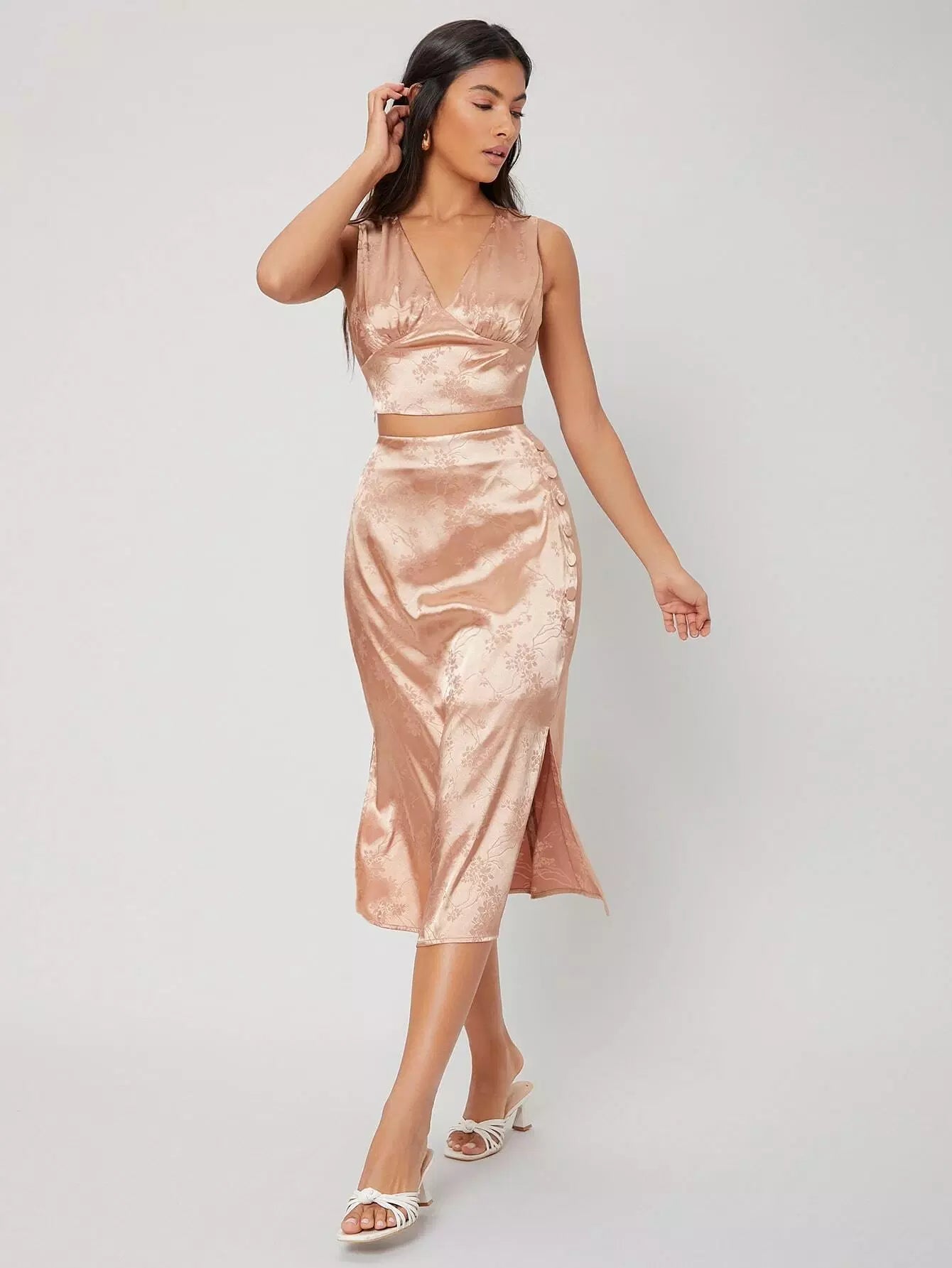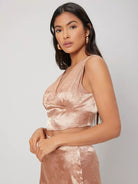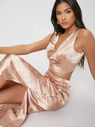 طقم قميص قصير من الساتان وتنورة منقسمة