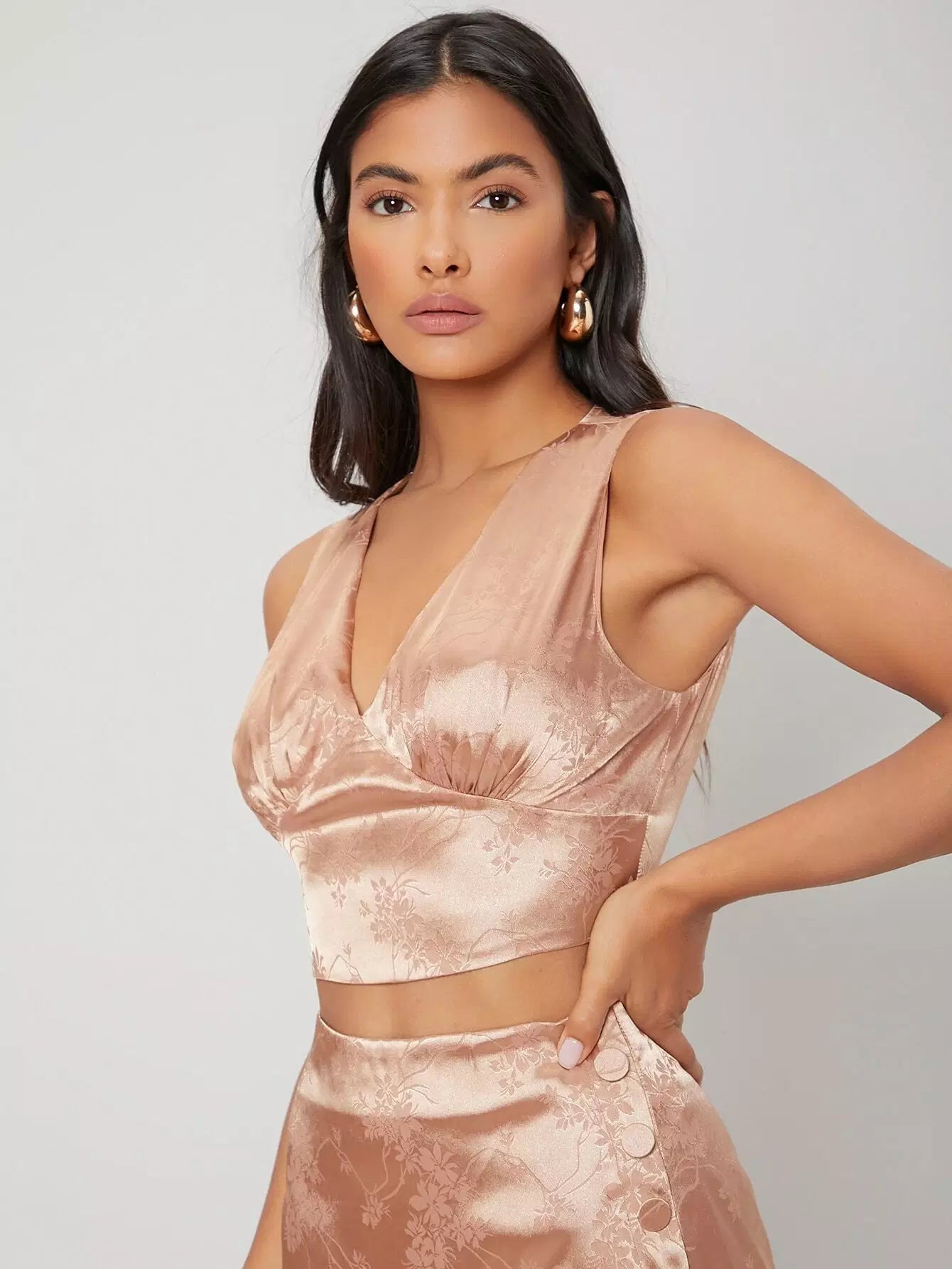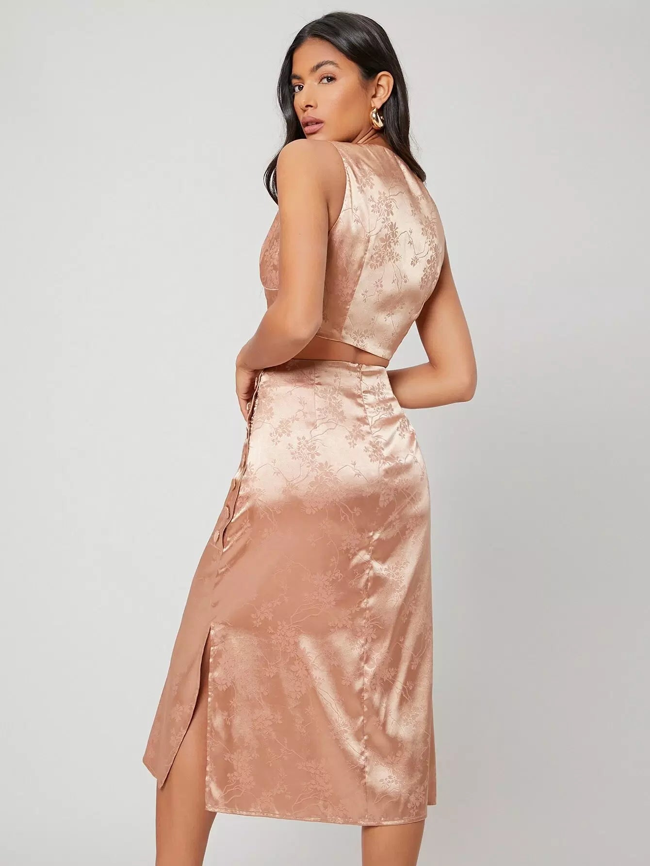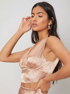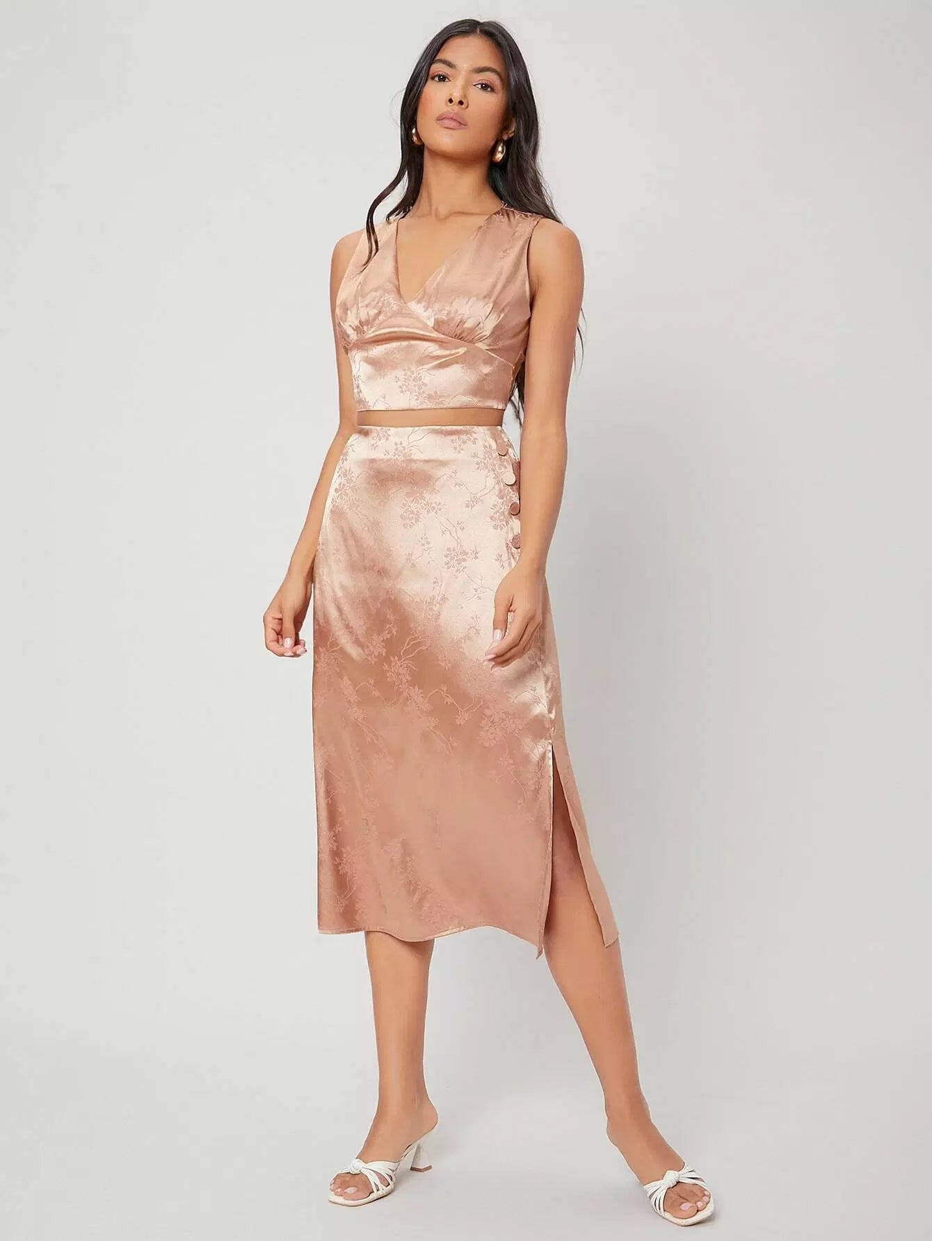 طقم قميص قصير من الساتان وتنورة منقسمة