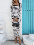 مجموعة SHEIN Essnce المكونة من قطعتين من الفستان والجاكيت البسيط غير الرسمي بأكمام طويلة للنساء