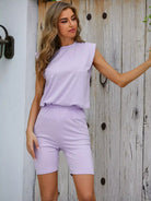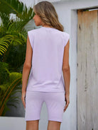 تانك بدون أكتاف بغطاء للكتف وسروال قصير لراكبي الدراجات النارية