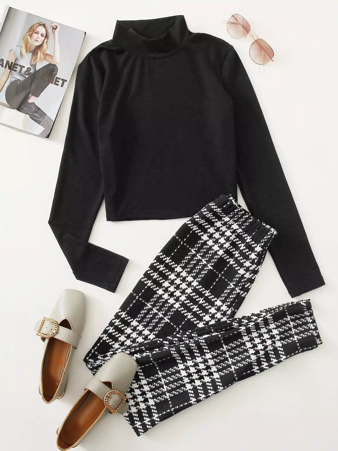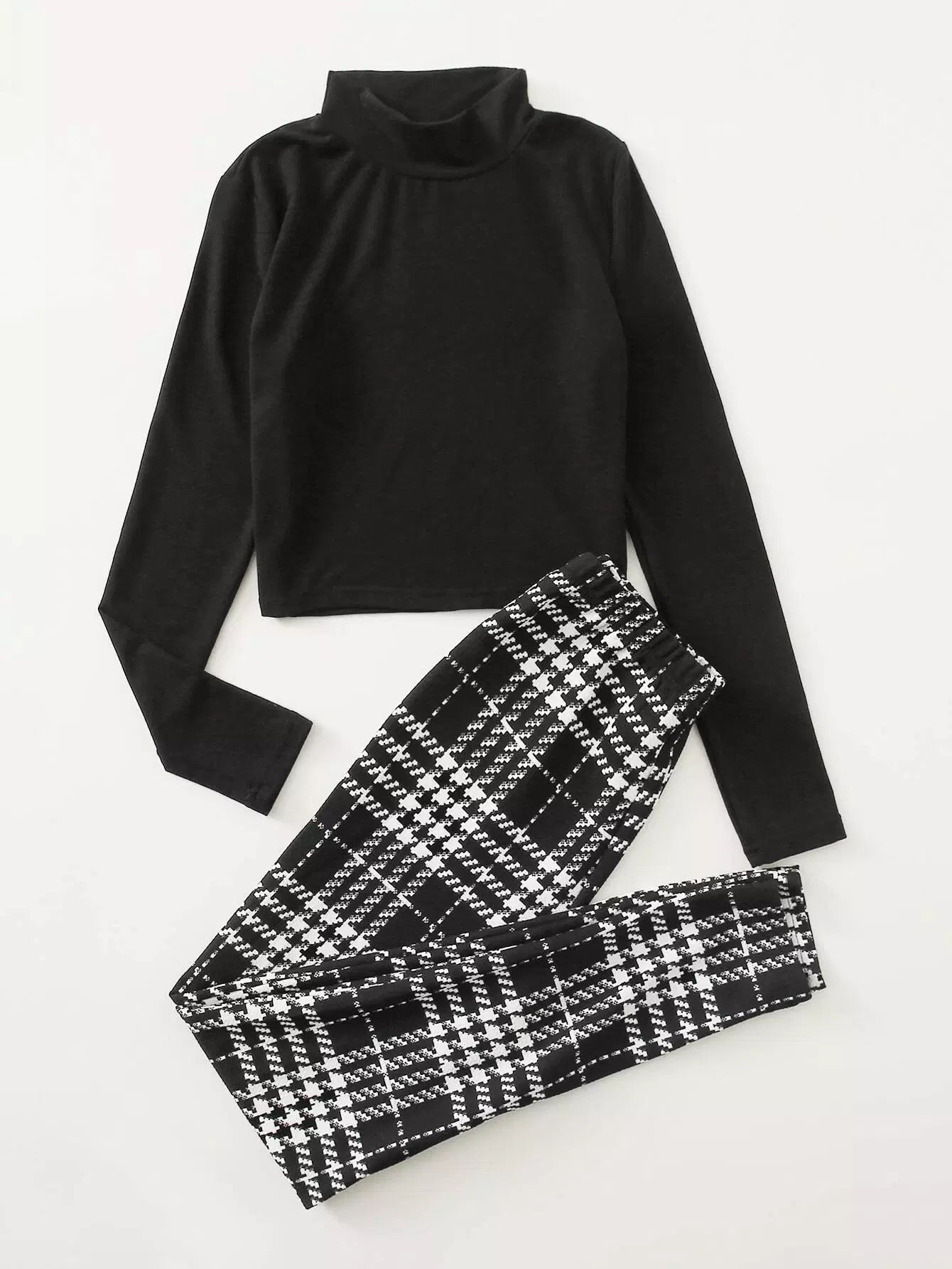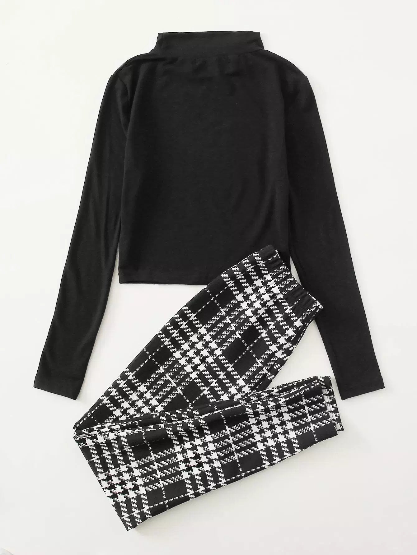 تي شيرت برقبة سادة برقبة سادة وبنطلون ضيق برقبة سادة