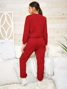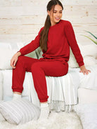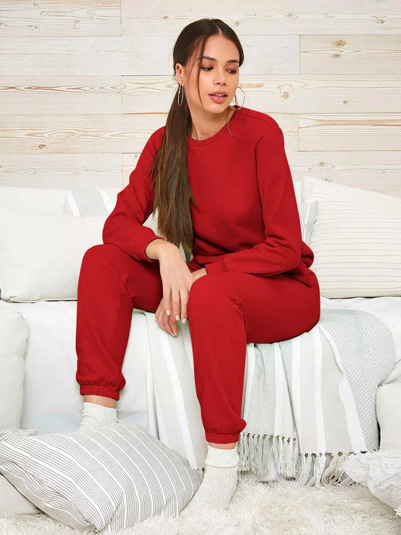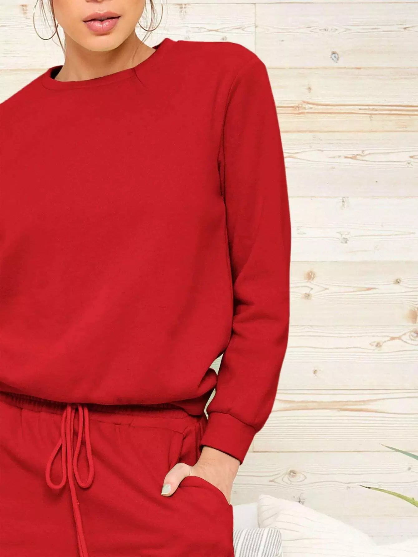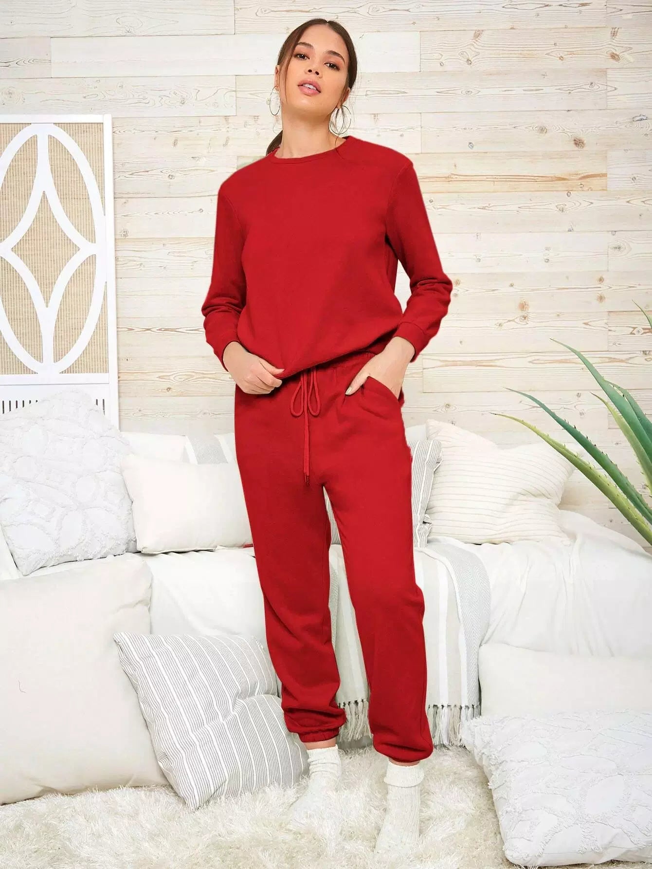 طقم بلوزة سادة وبنطال رياضي برباط على الخصر