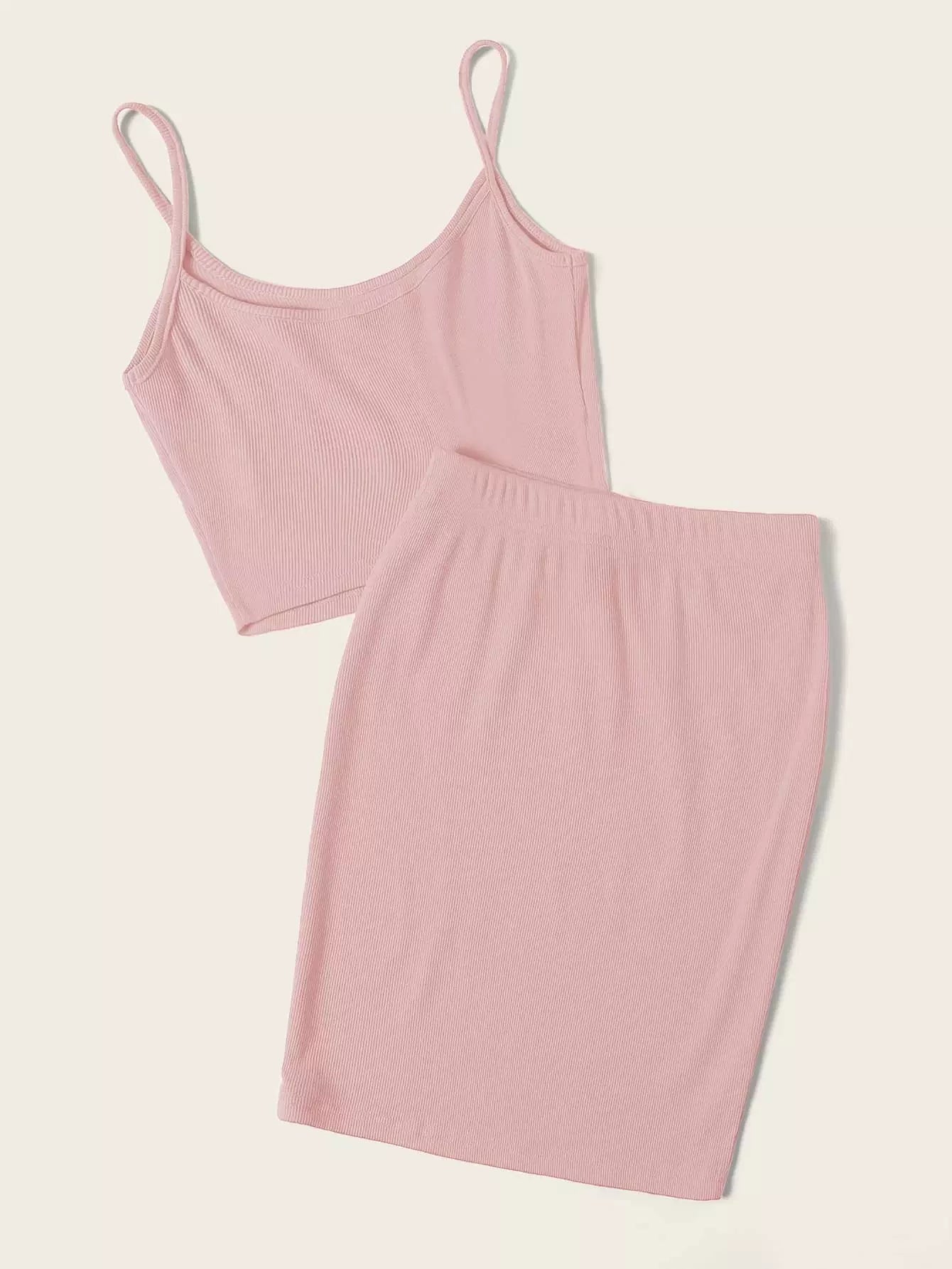 طقم قميص قصير محبوك على شكل ضلع سادة مع تنورة