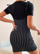 فستان مخطط بأكمام طويلة وربطة عنق على الكتف وحاشية مقسمة