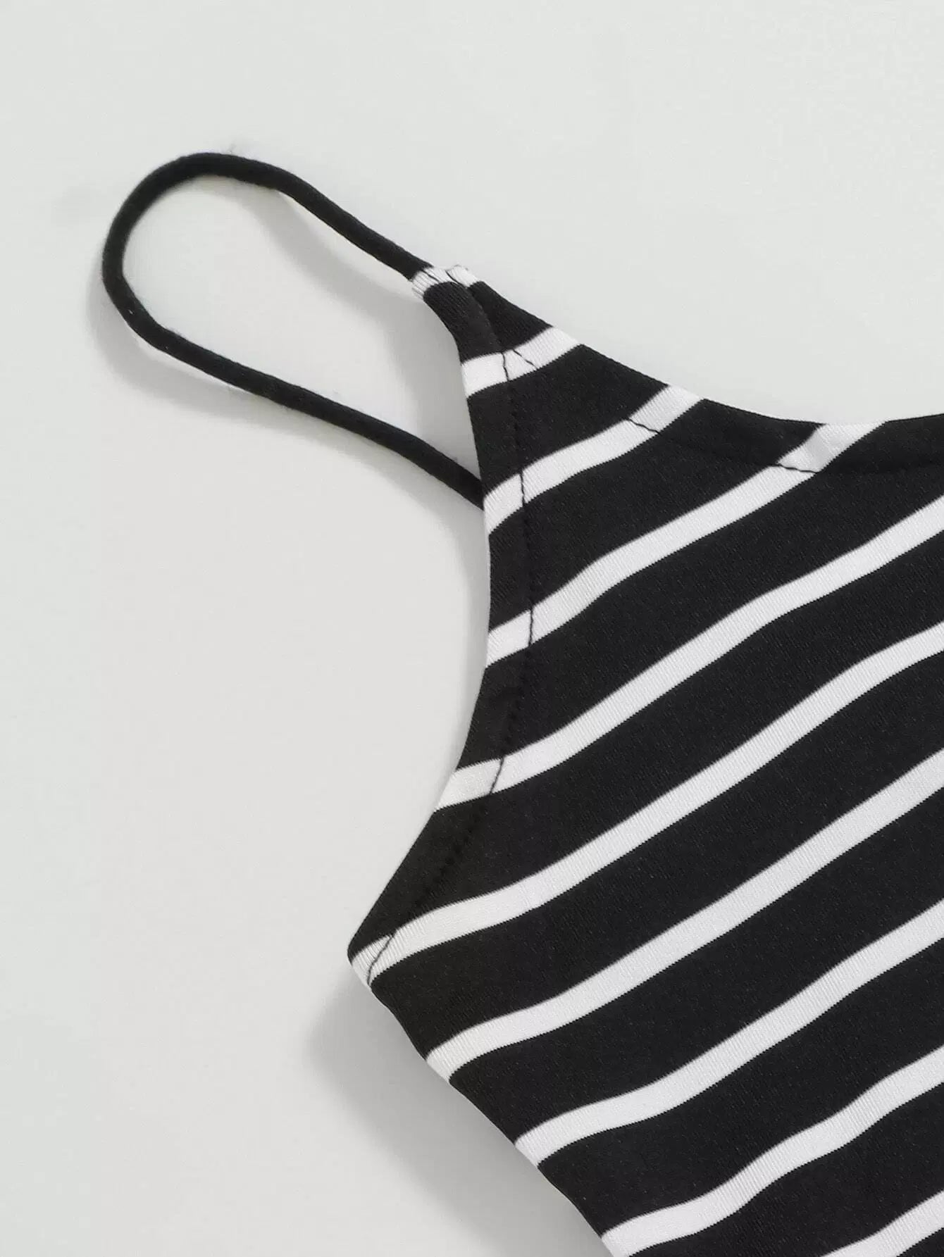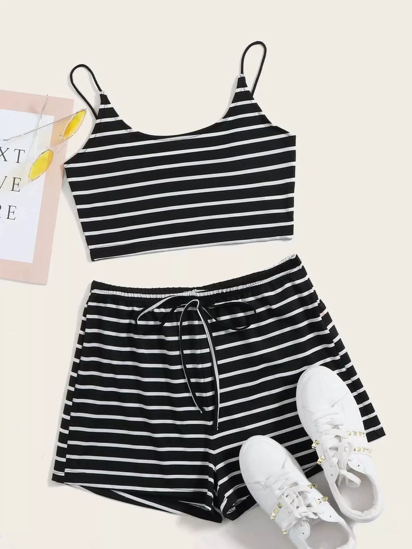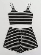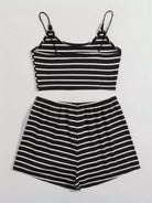 طقم بلوزة قصيرة مخططة بقصّة قصيرة مخططة وشورت بخصر مربوط