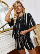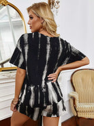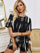 تي شيرت بأكتاف منسدلة مصبوغ بربطة عنق وسروال قصير