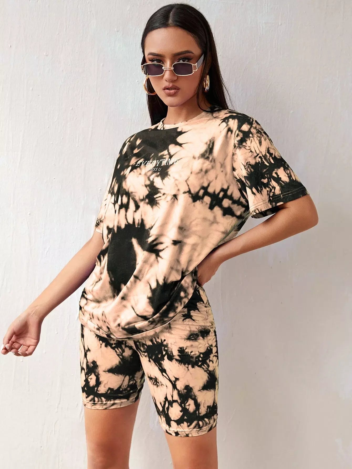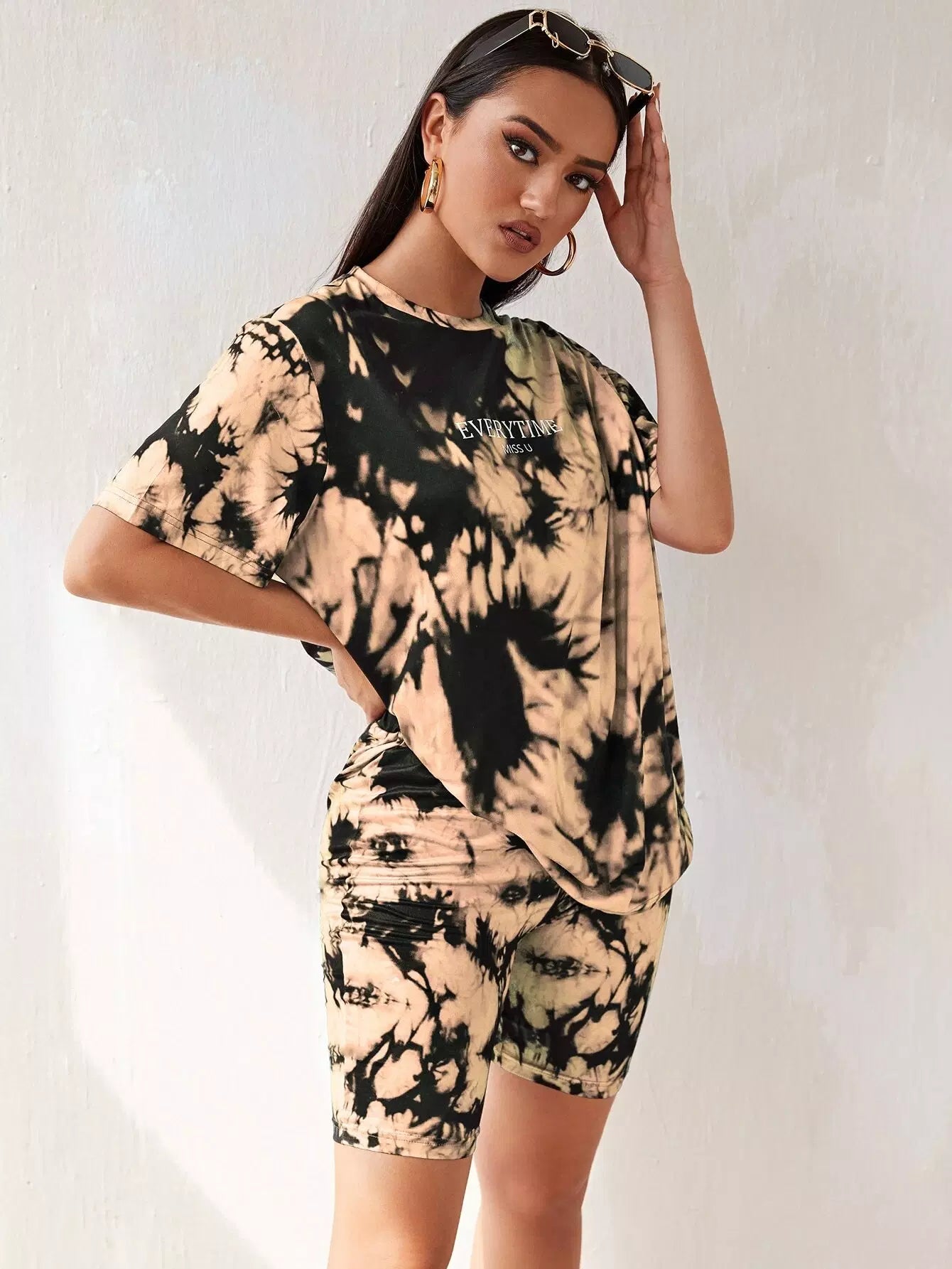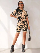 طقم تي شيرت وشورت راكبي دراجات نارية برسومات وربطة عنق