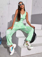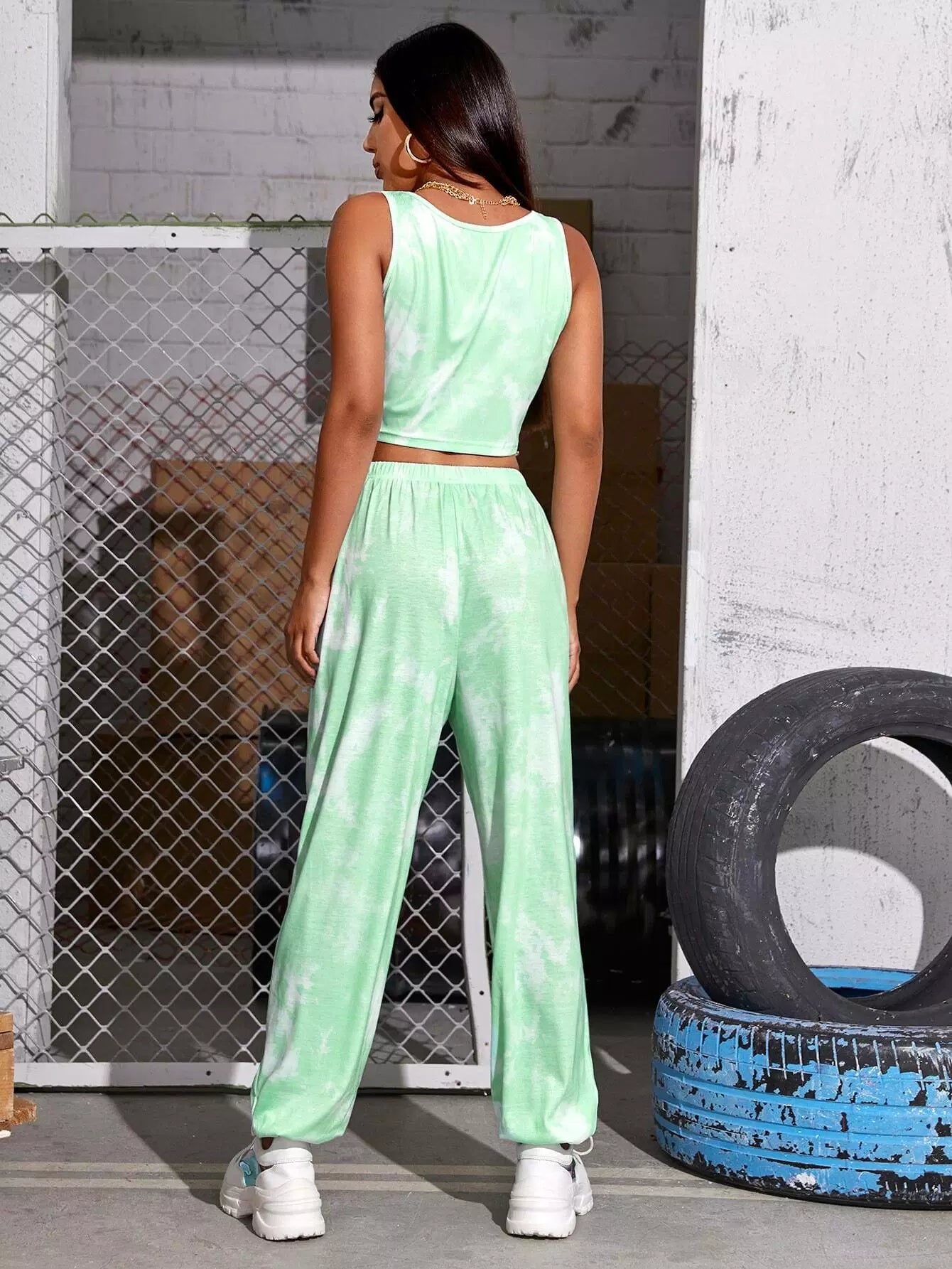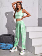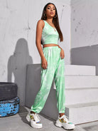 طقم توب وبنطلون قصير من نسيج مضلع مصبوغ بالربط