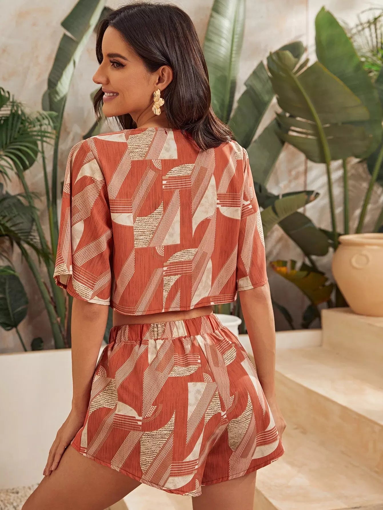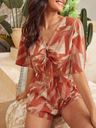 طقم بلوزة وشورت قصير برباط أمامي بربطة عنق وسروال قصير