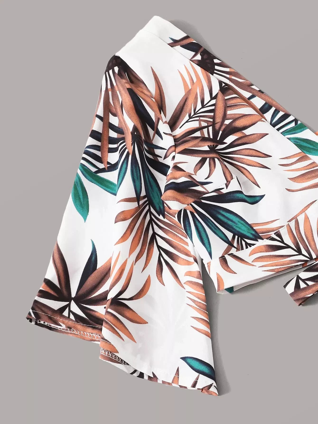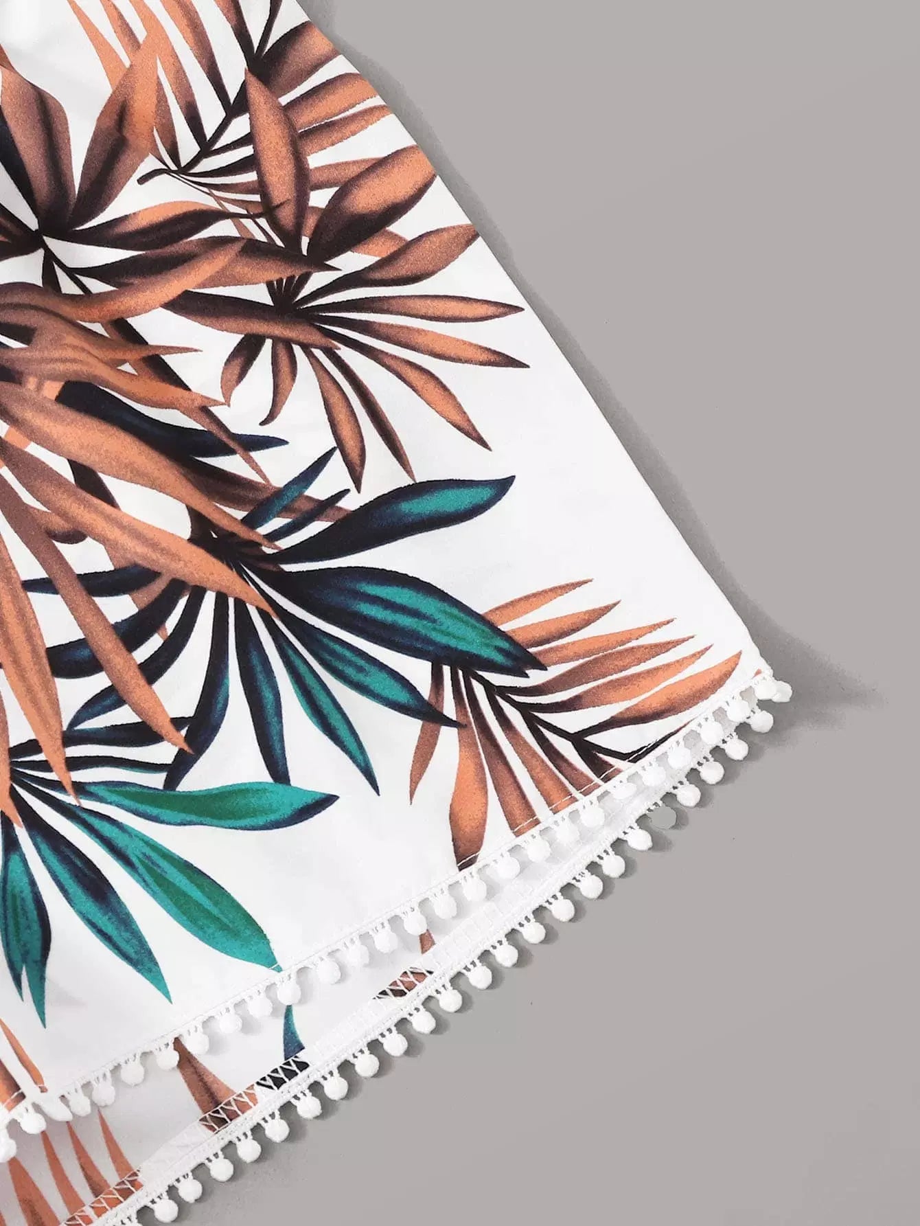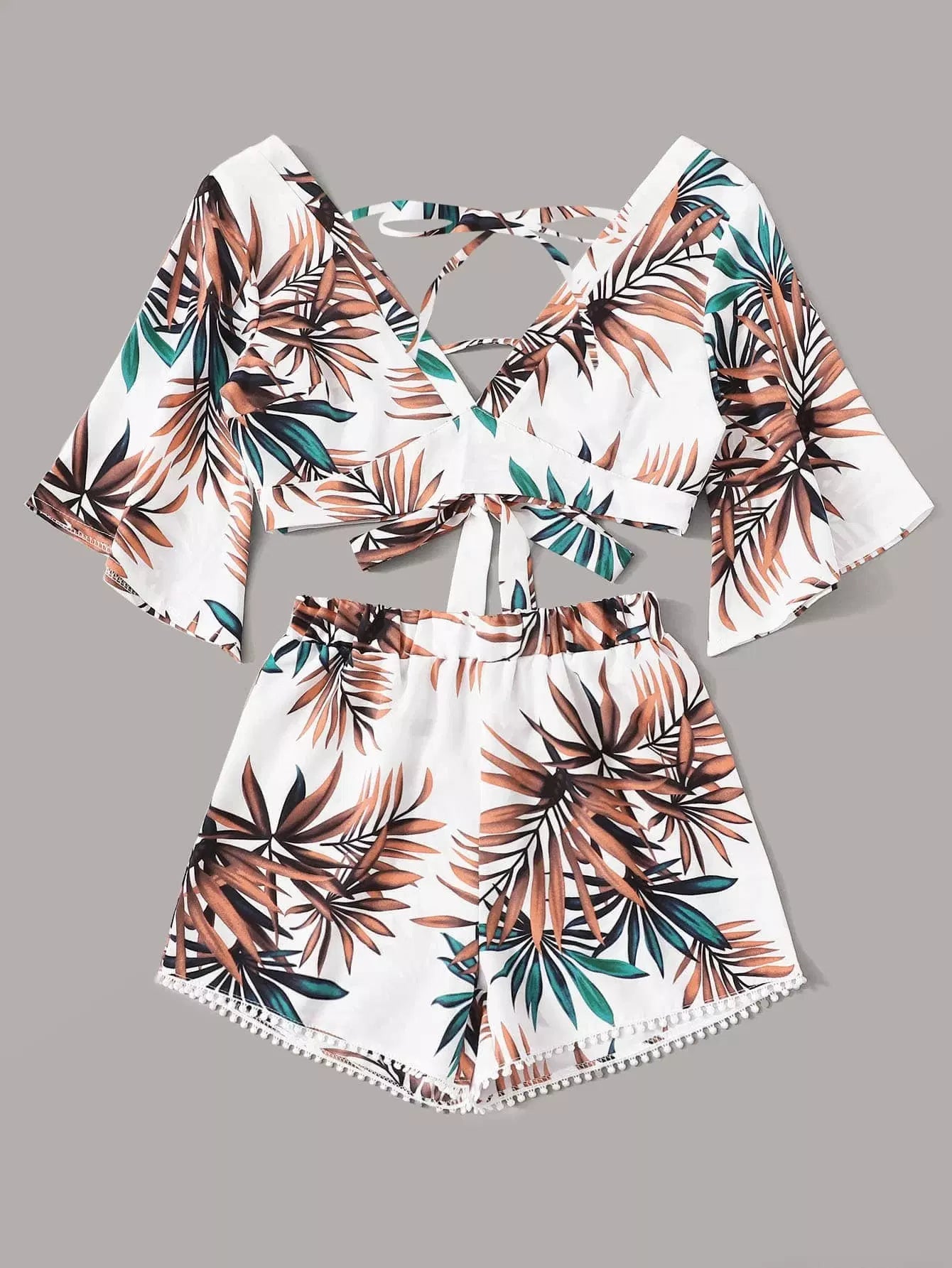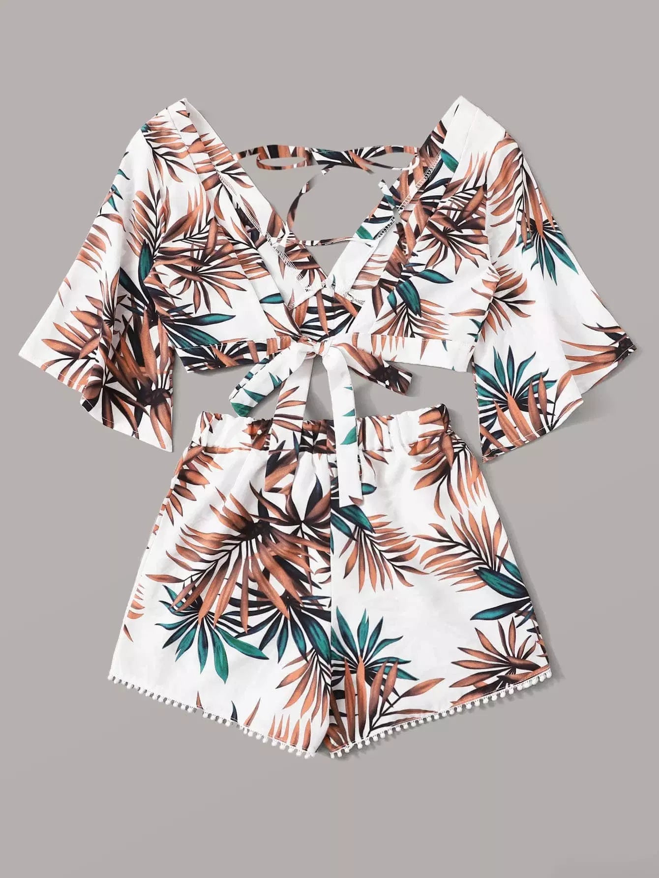 قميص قصير قصير بقصّة ضيقة استوائية وشورت قصير بوم بوم