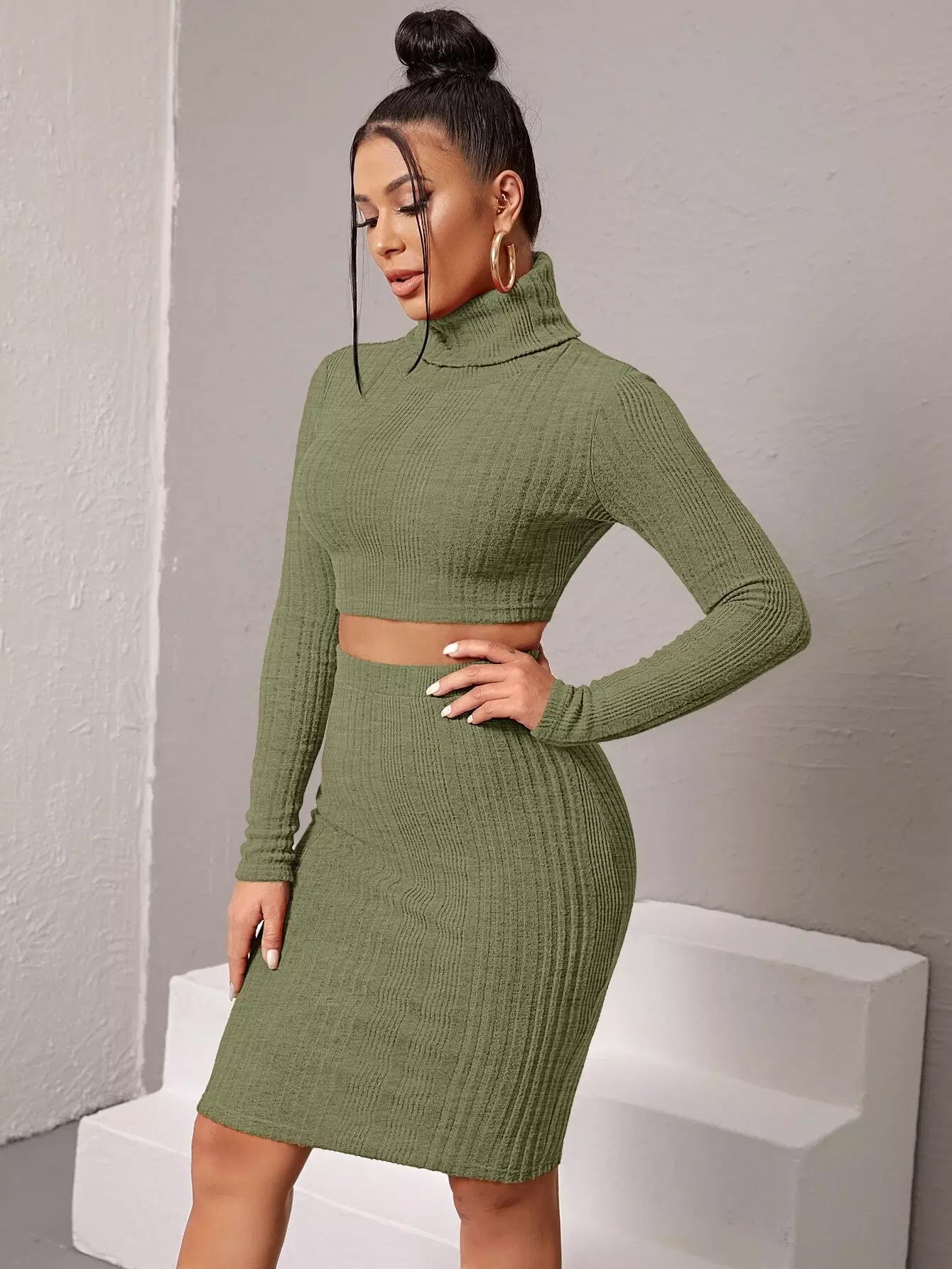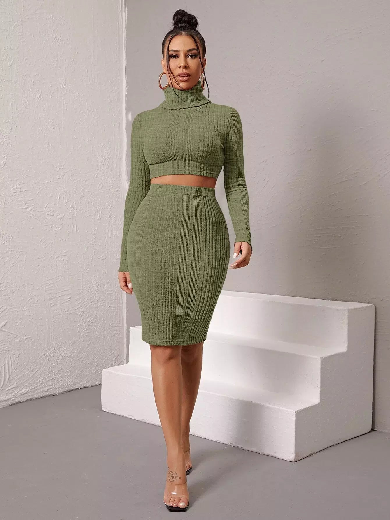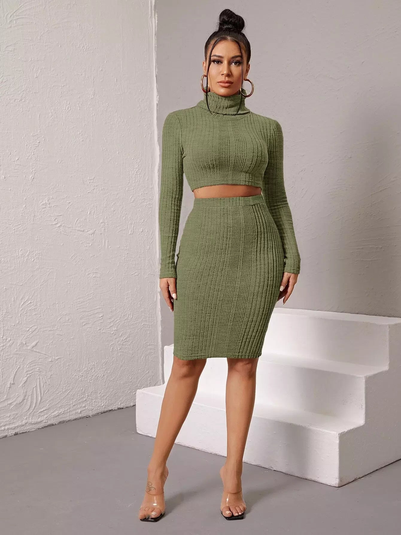 طقم بلوزة وتنورة محبوكة على شكل سلحفاة برقبة سلحفاة