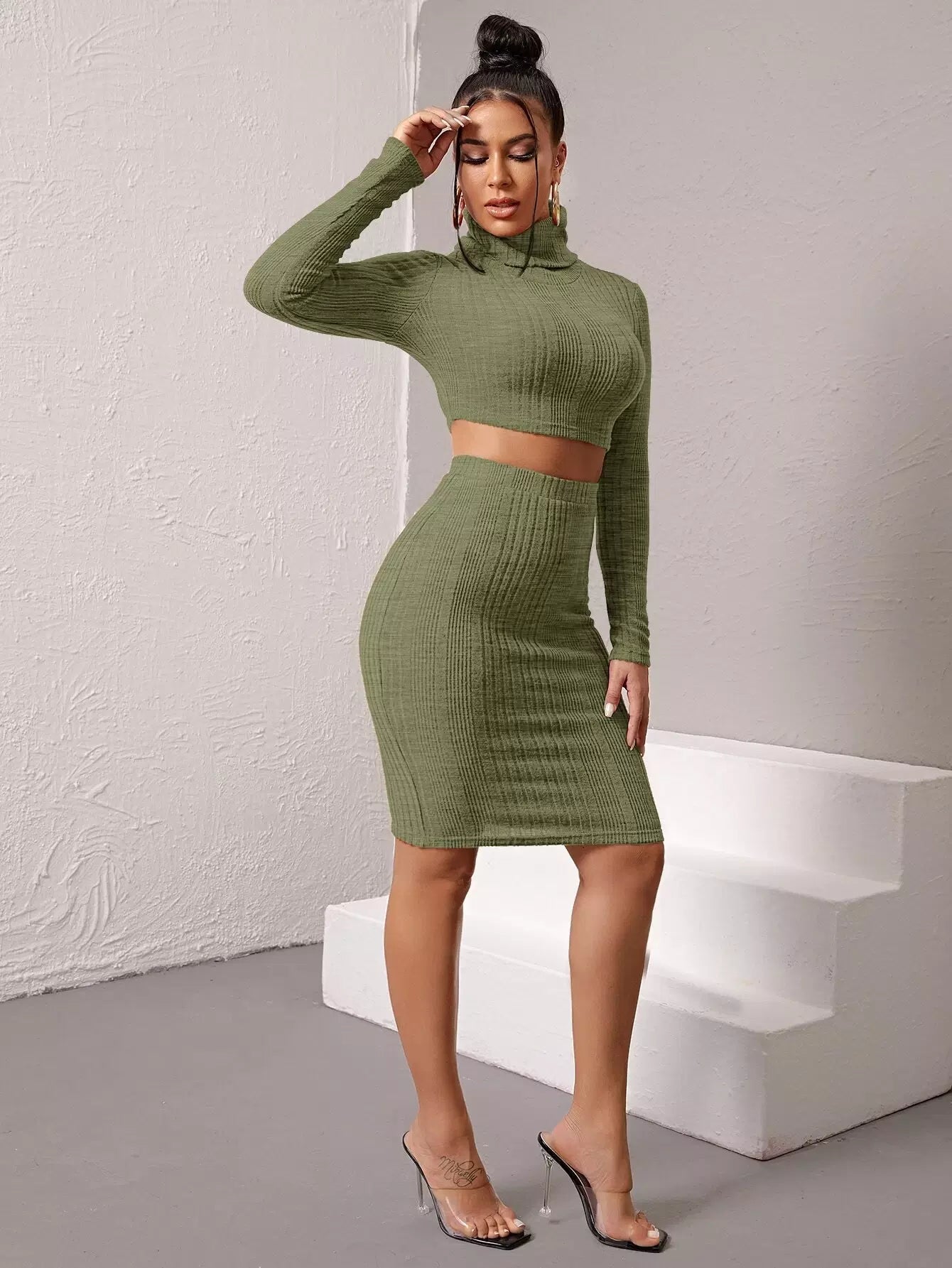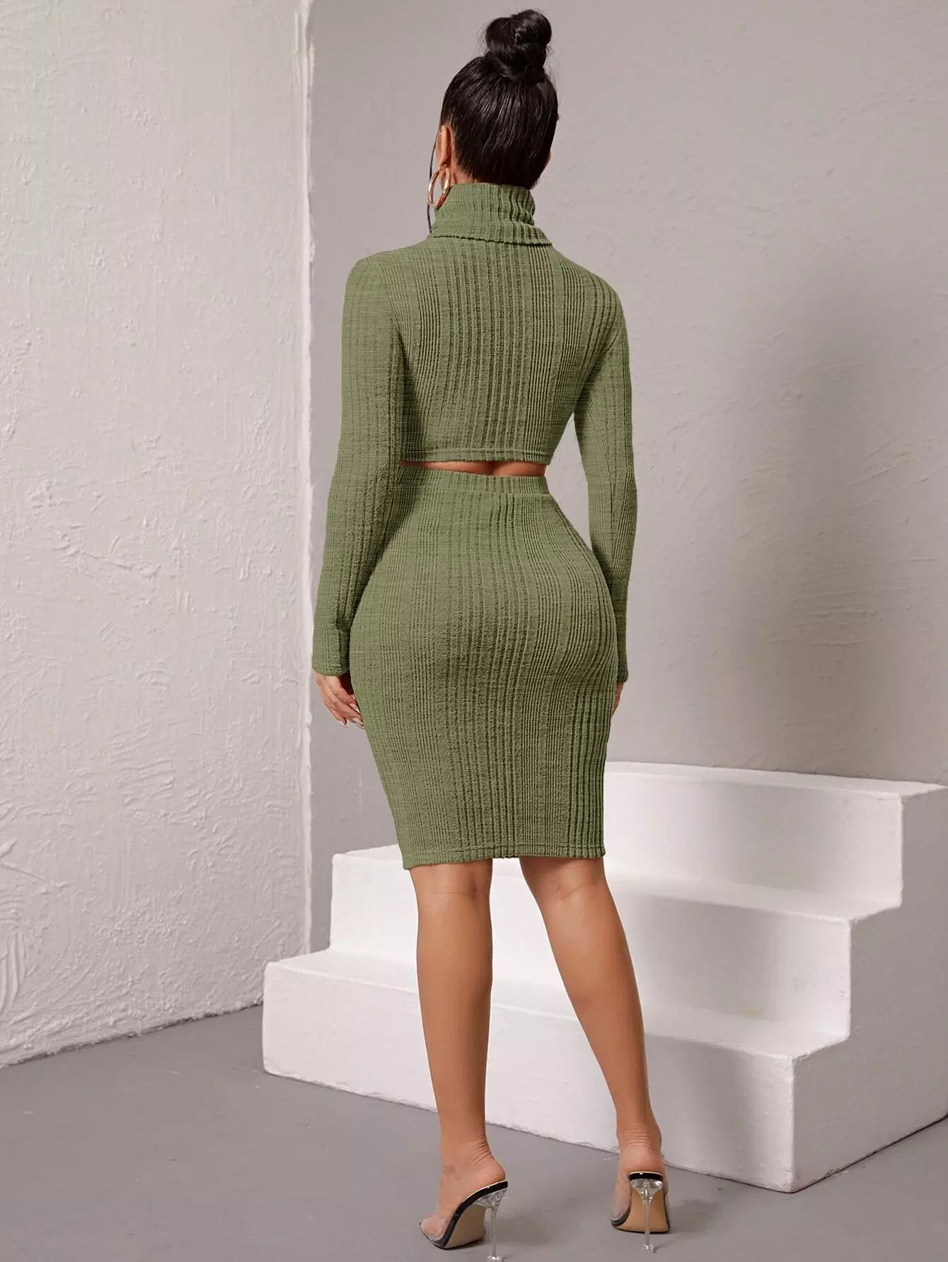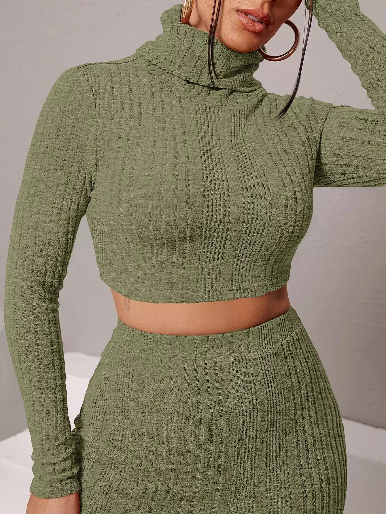 طقم بلوزة وتنورة محبوكة على شكل سلحفاة برقبة سلحفاة