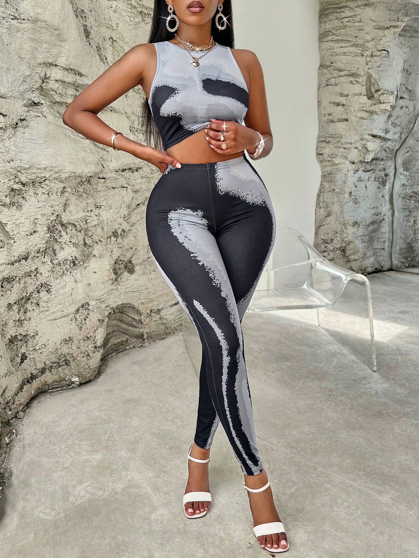 VaVaBold Brush Print Crop Tank Top & Leggings