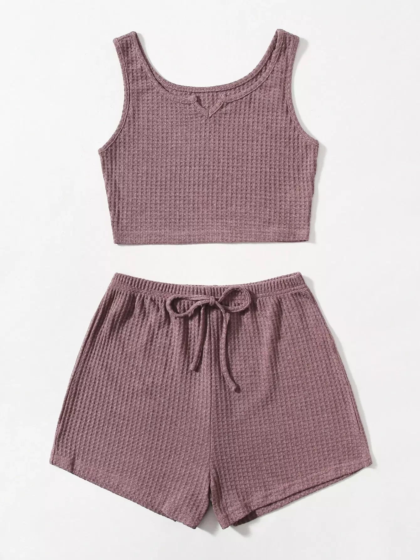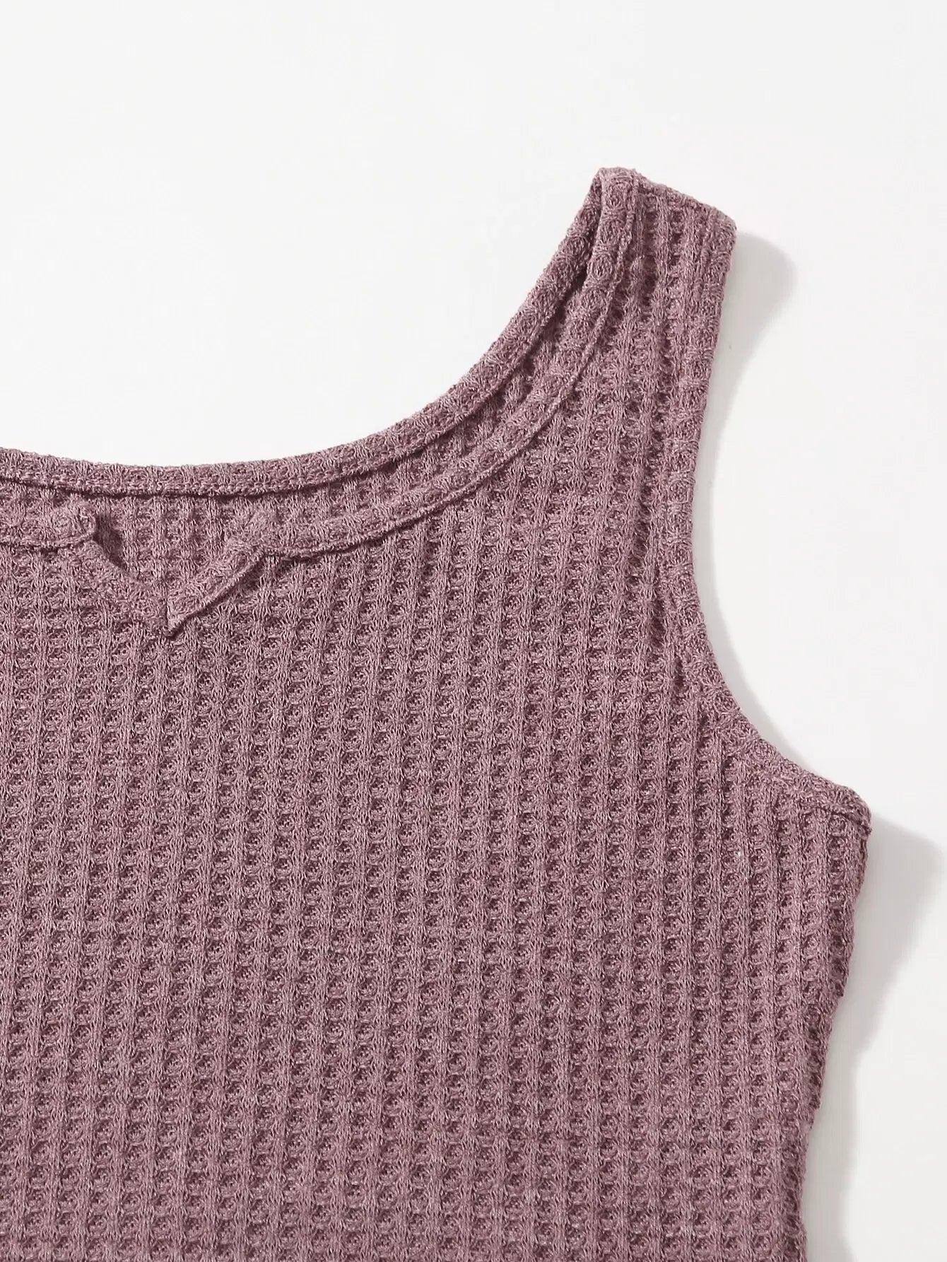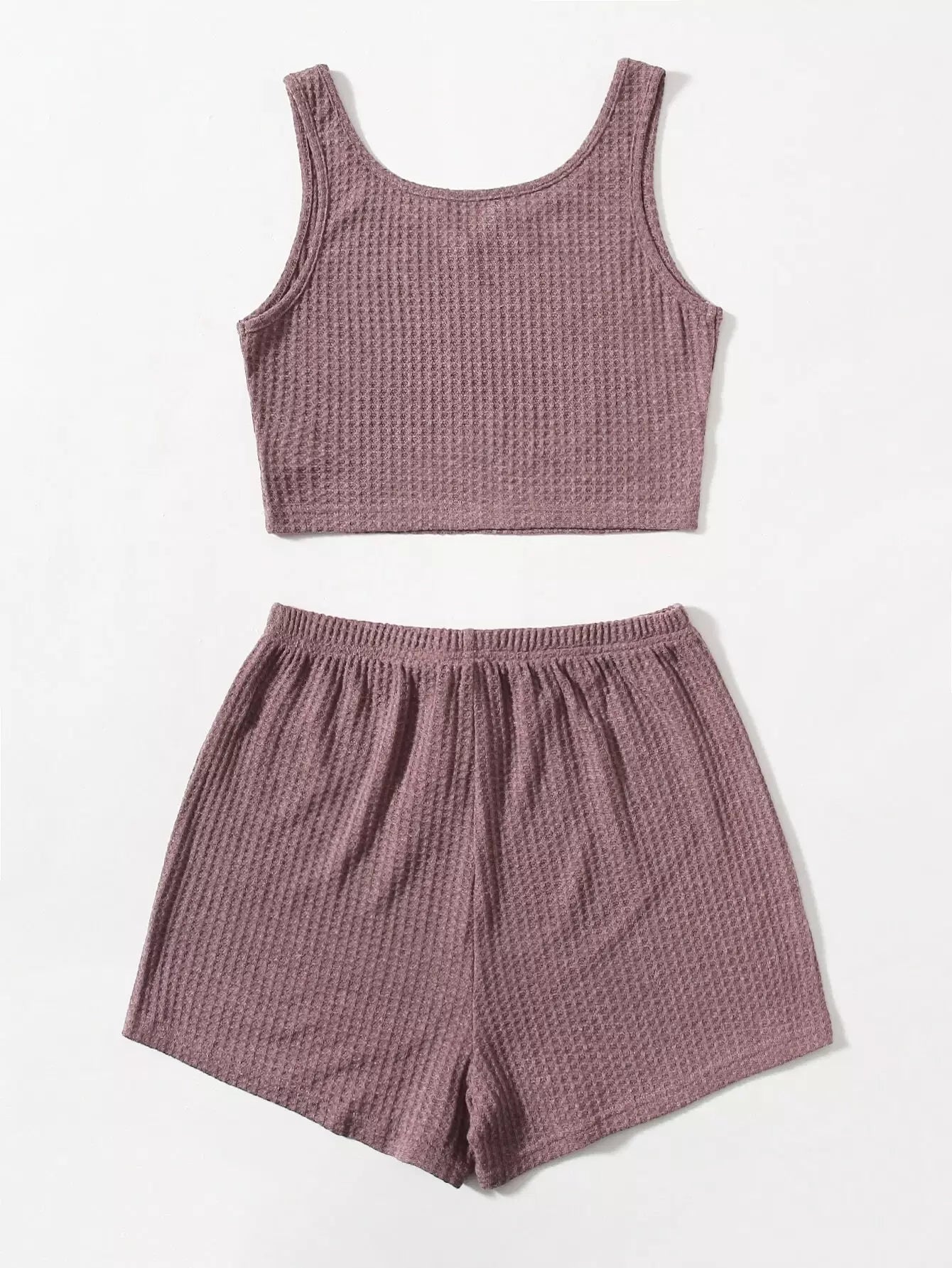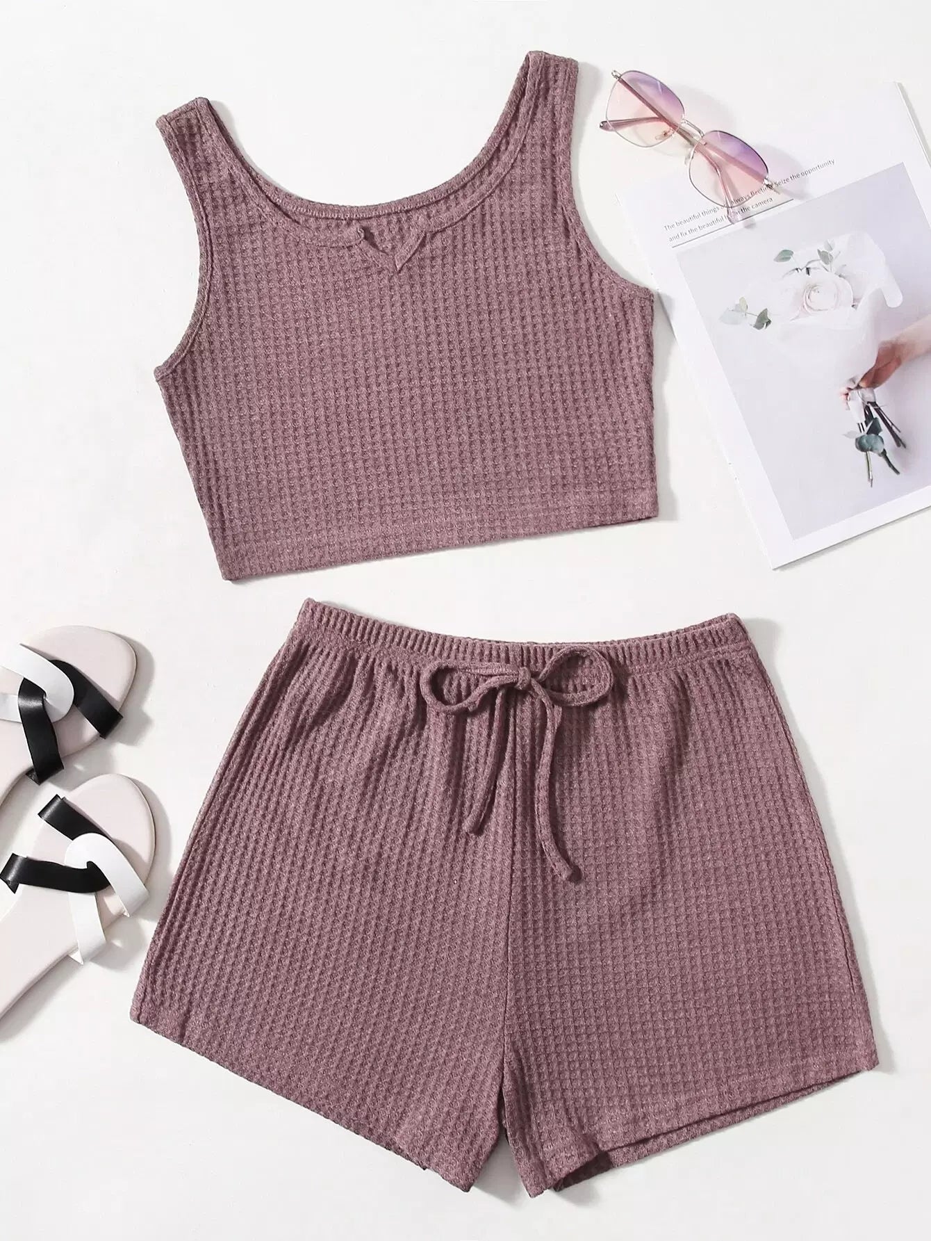 تانك برقبة محبوكة بفتحة رقبة محبوكة وشورت قصير