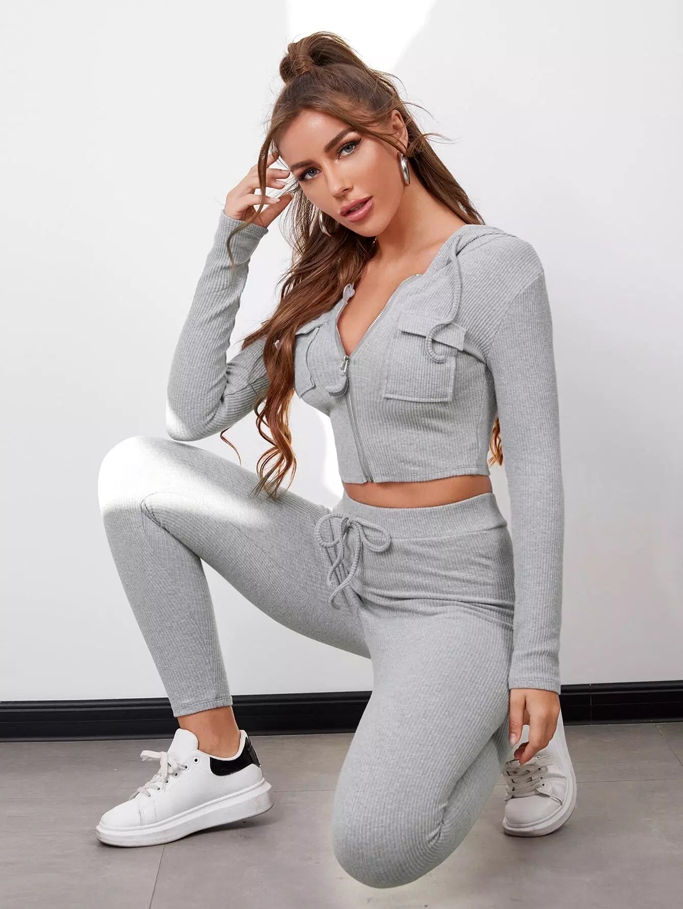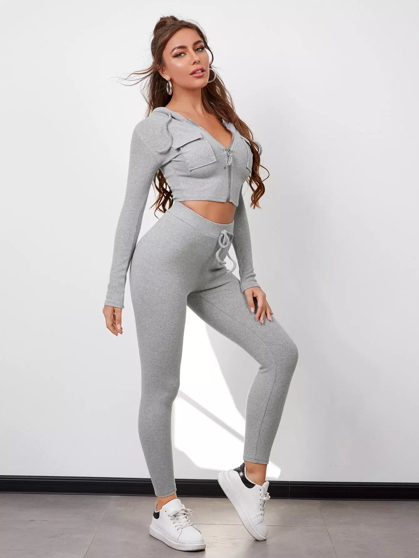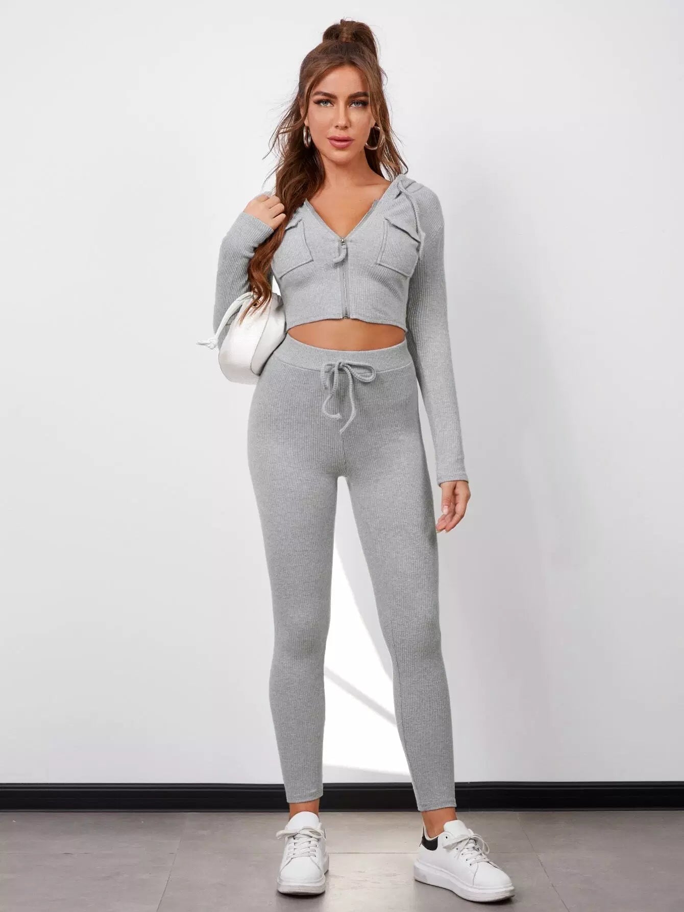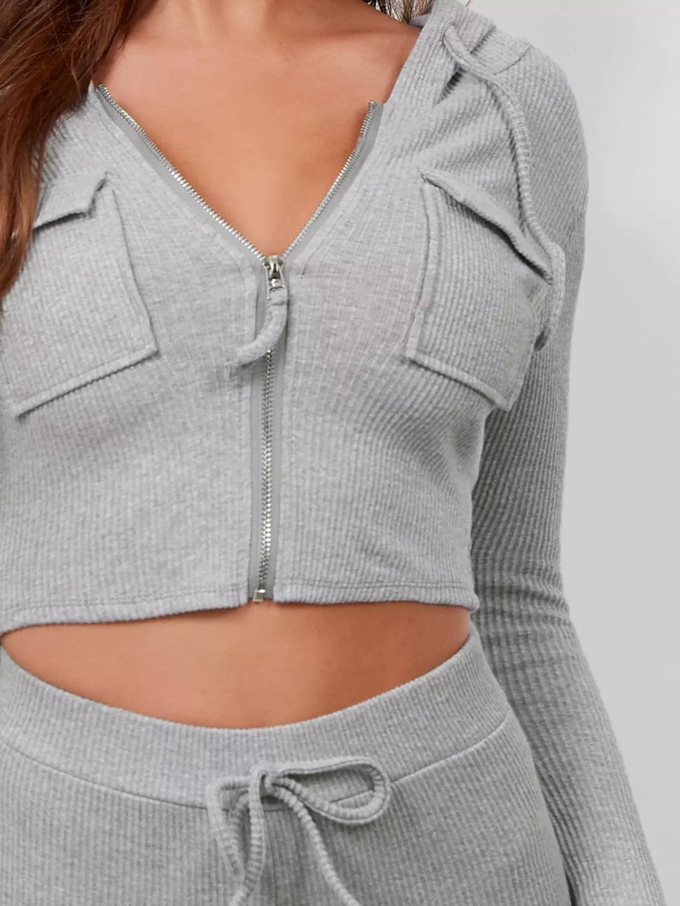 بلوزة وبنطال بسحاب برباط برباط برباط بسحاب محبوك من نسيج مضلع