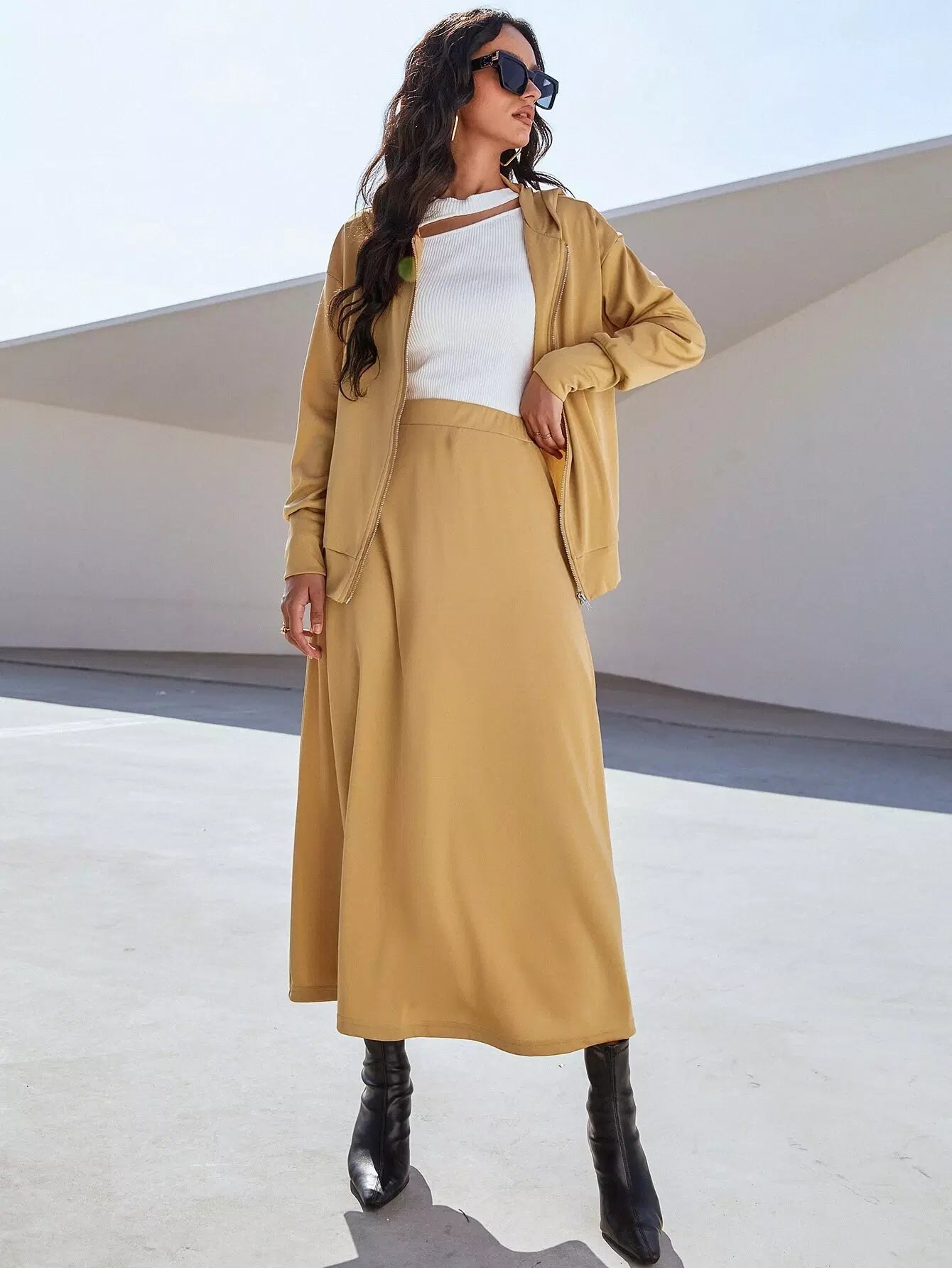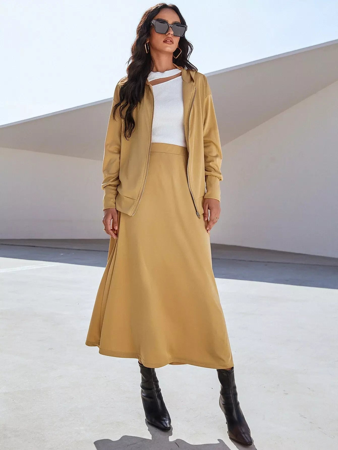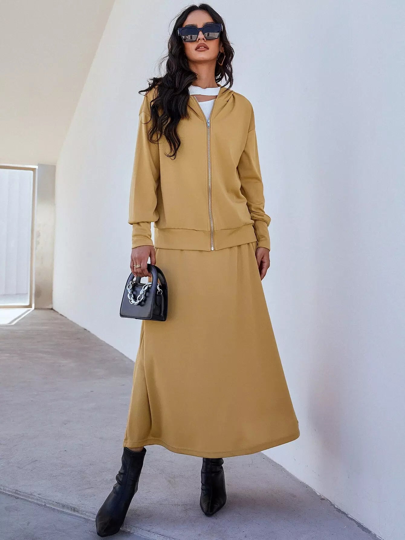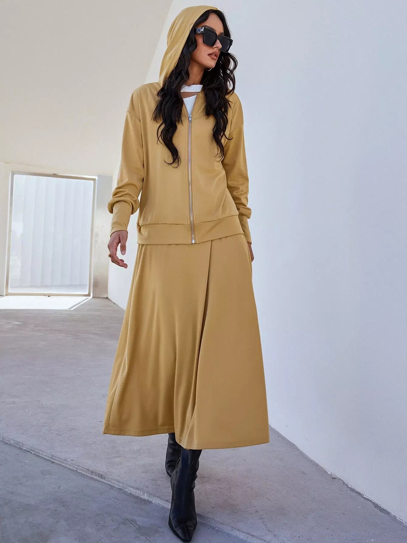 هودي بغطاء كتف منسدل بسحاب وتنورة بسحاب