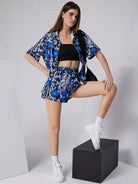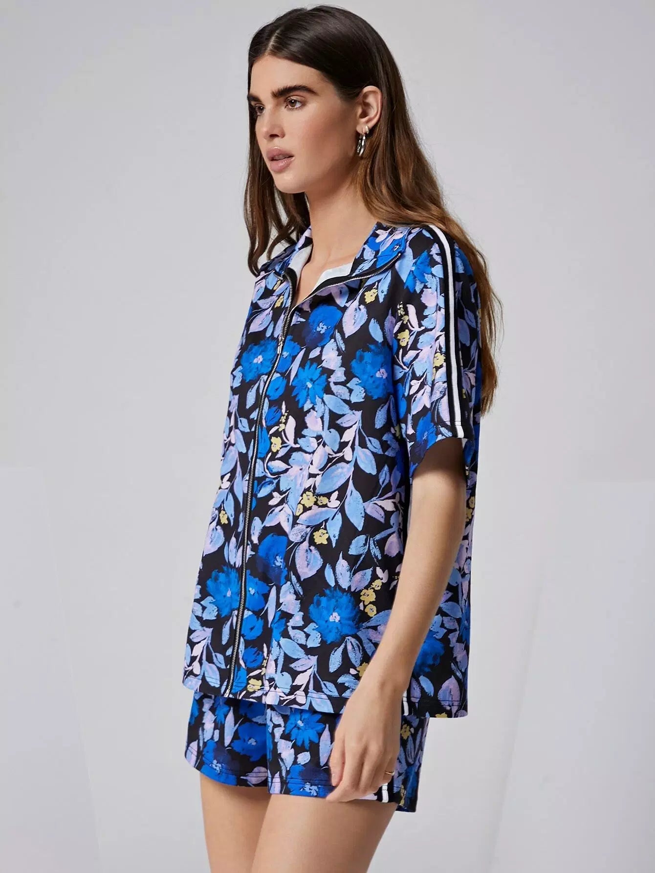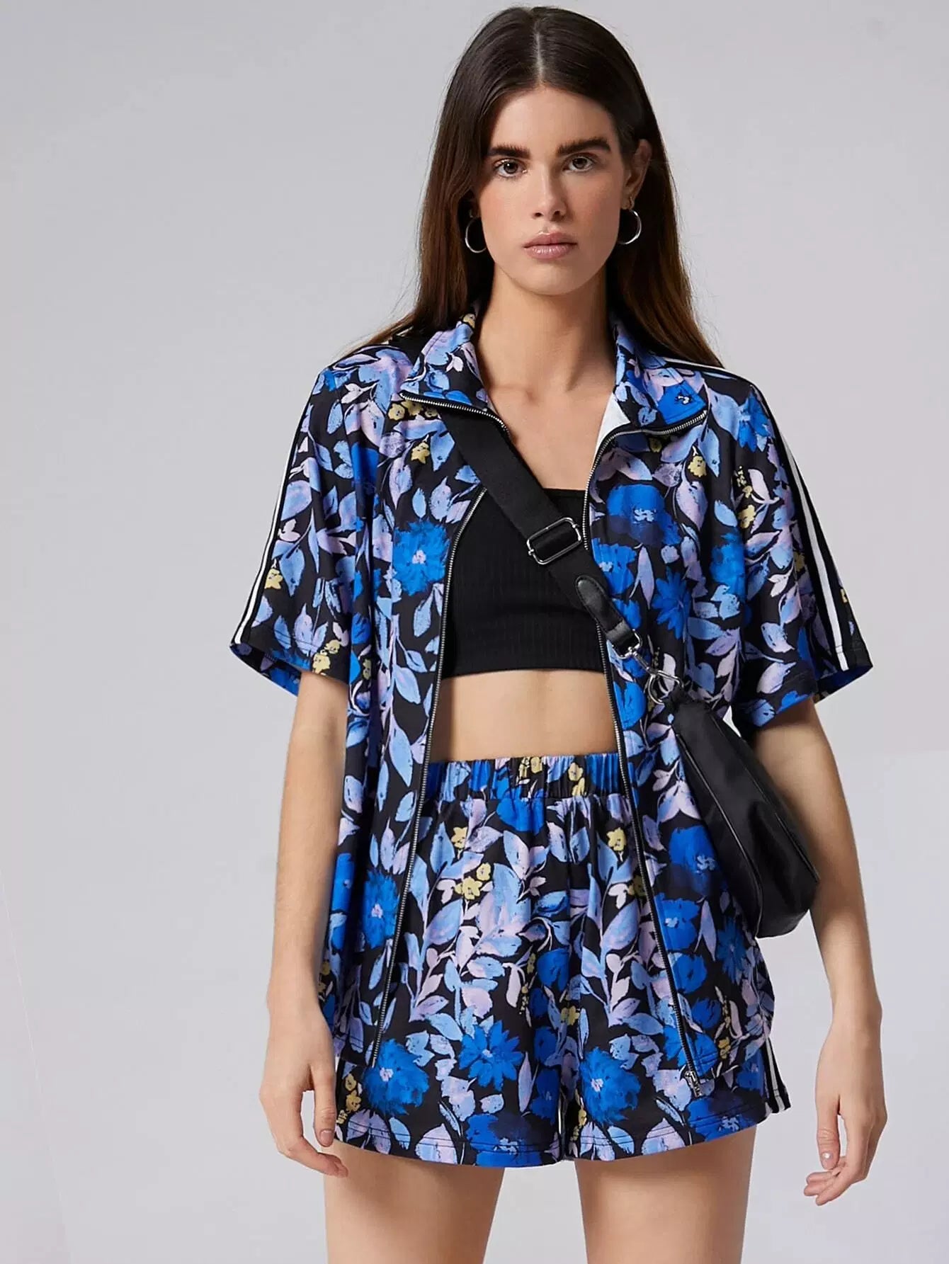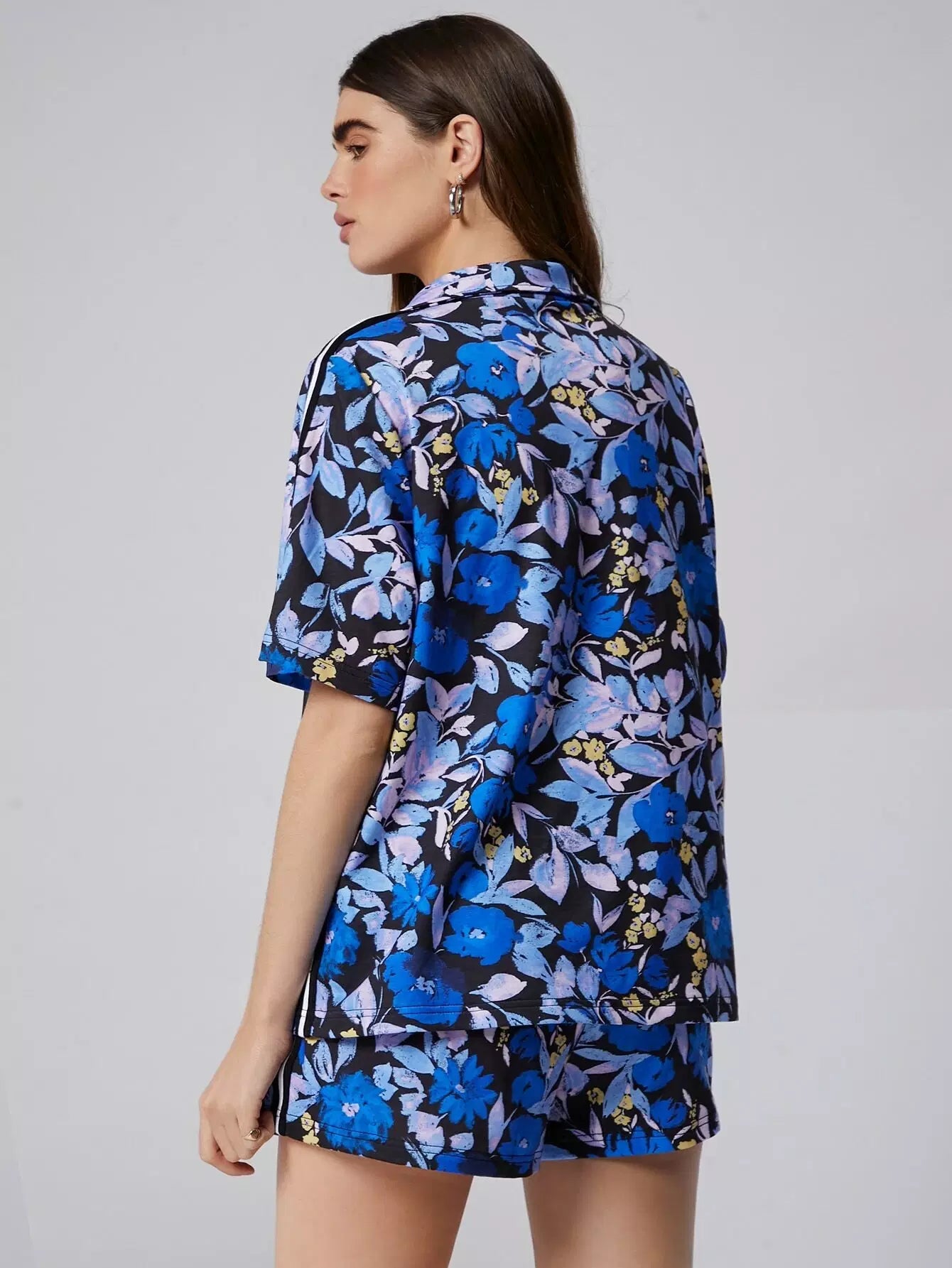 طقم بلوزة وشورت بأكمام مخططة بأكمام مخططة بطبعة زهور