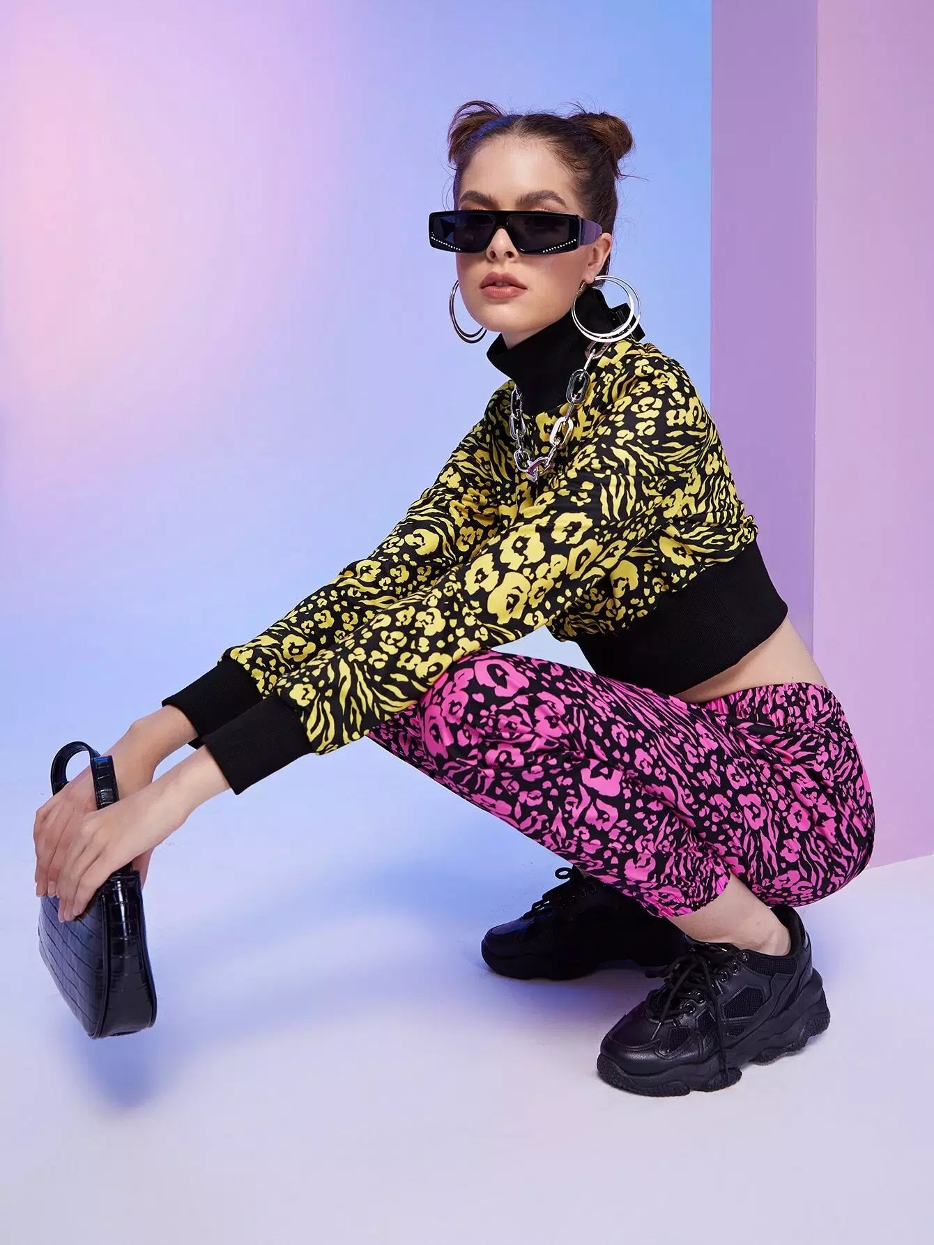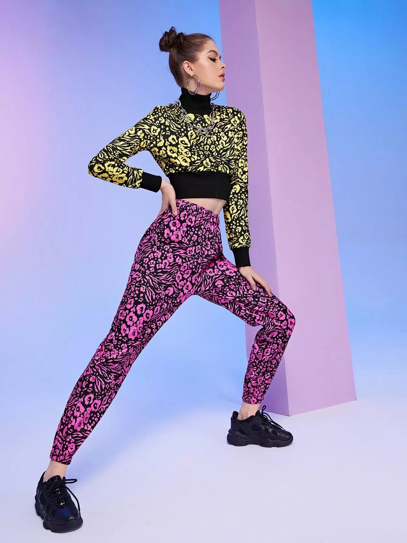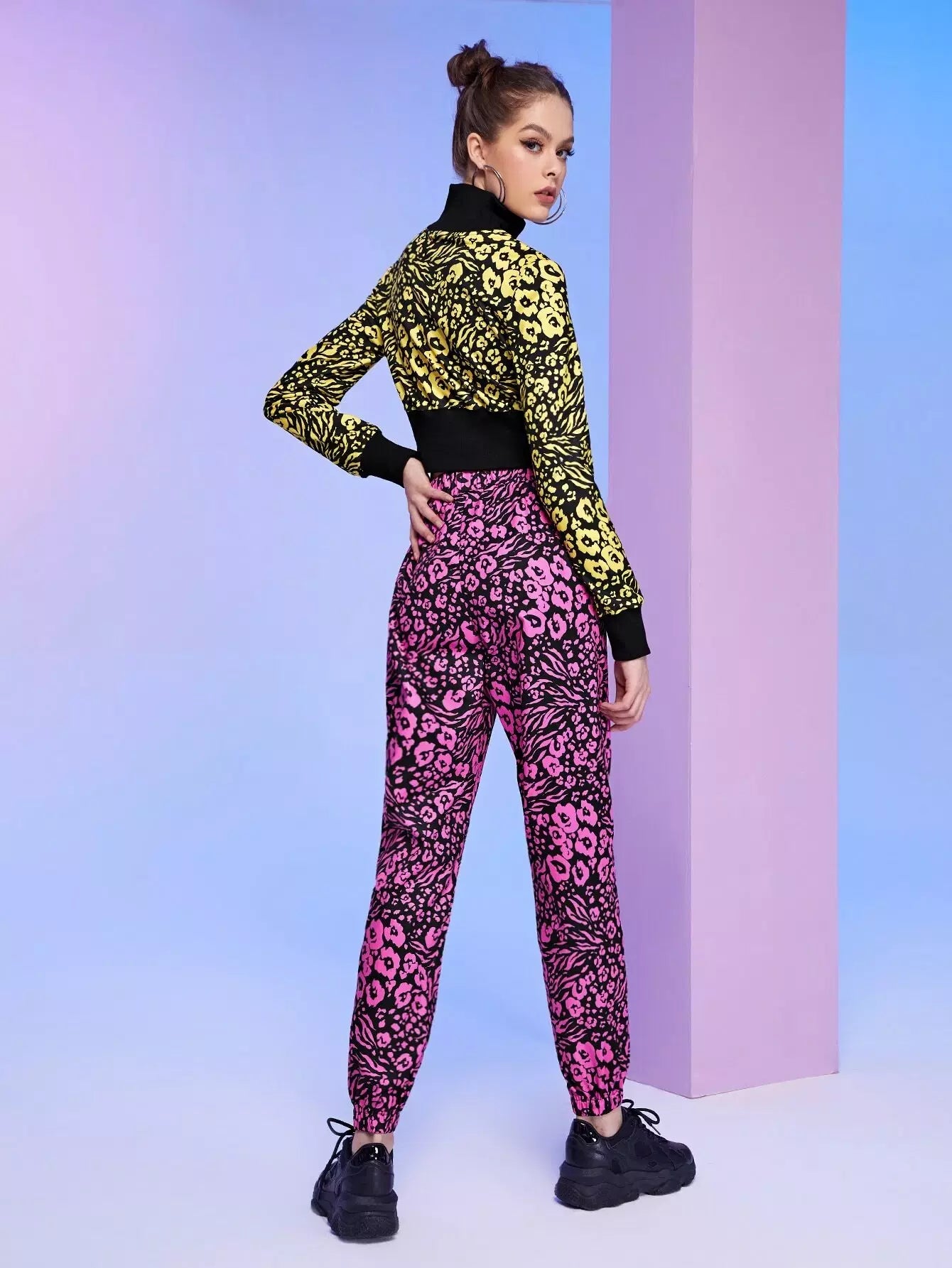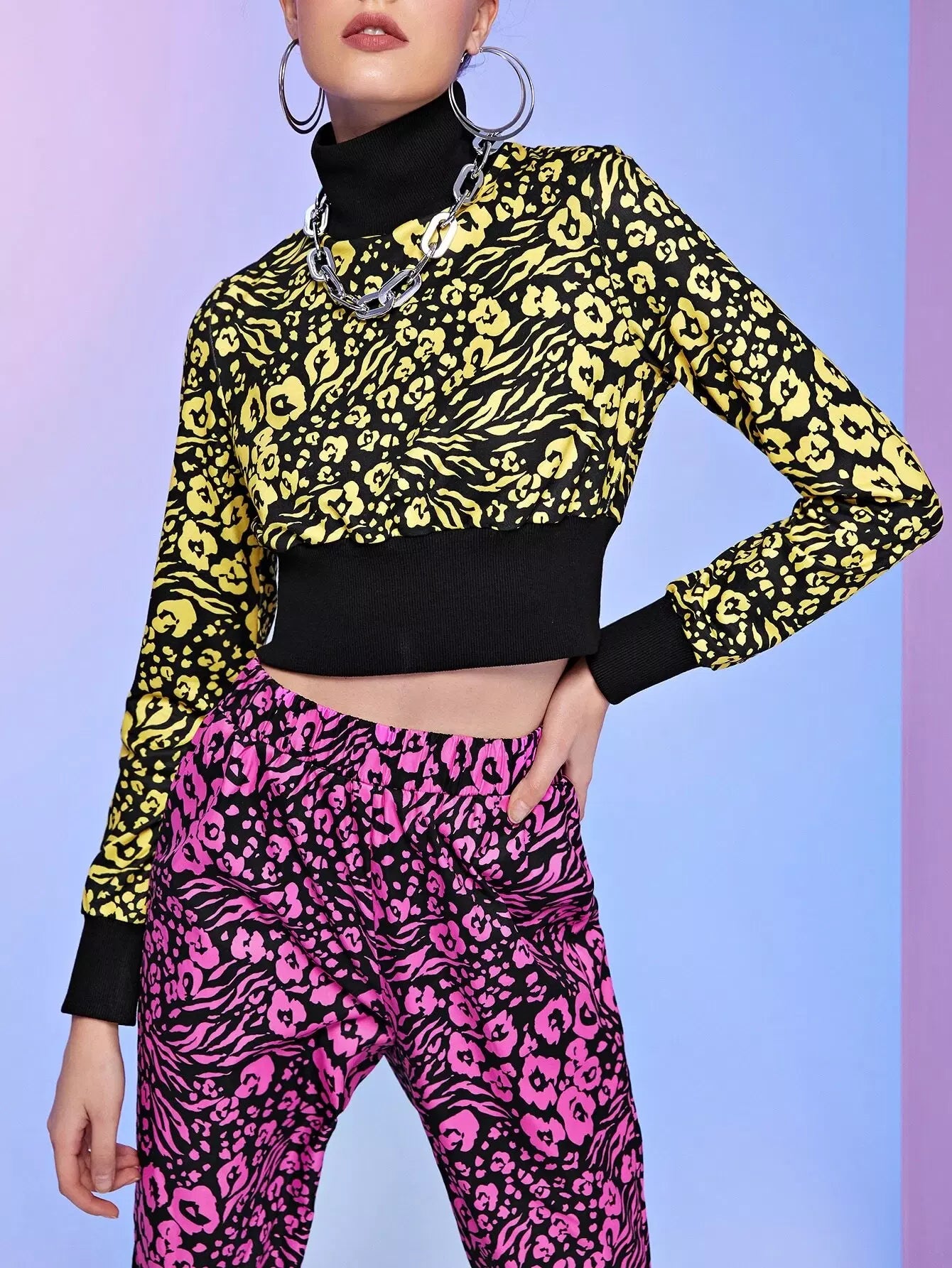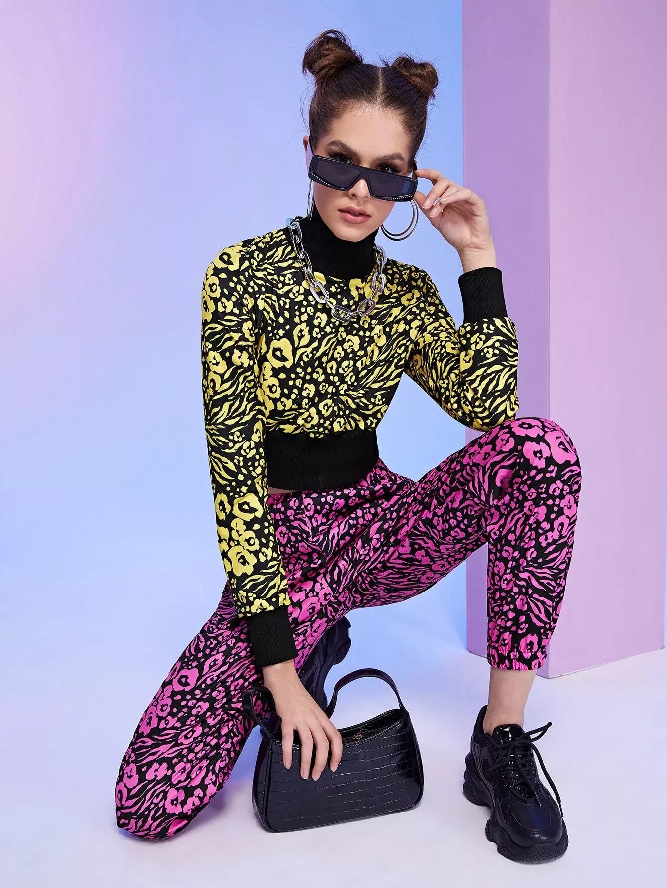 للنساء - طقم كنزة وسروال برقبة عالية وطبعة كاملة