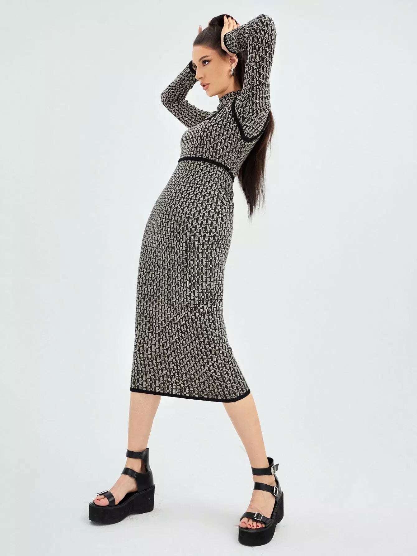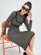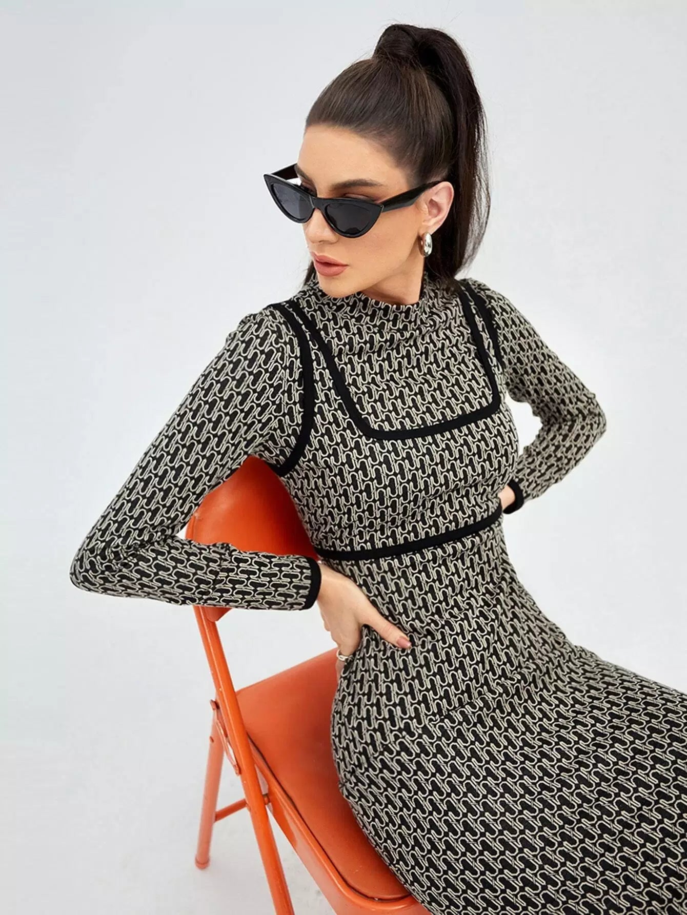 فستان برقبة قميص بياقة قطنية مطبوع عليها بالكامل وقميص برقبة وهمية