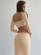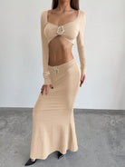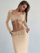 Aloruh Women Metal Detail Long Sleeve Top And Mermaid Hem Skirt 2pcs Set