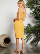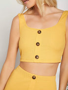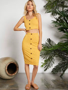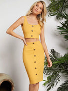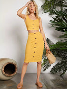 طقم تنورة وقميص بدون أكمام بأزرار أمامية ومضلع