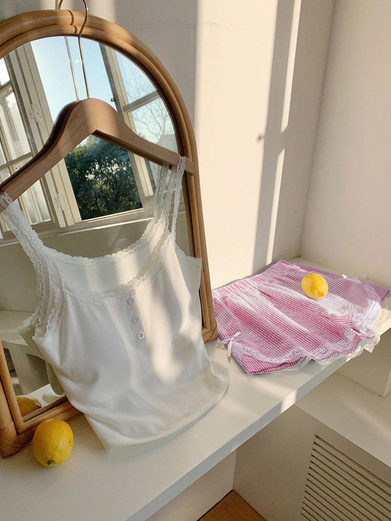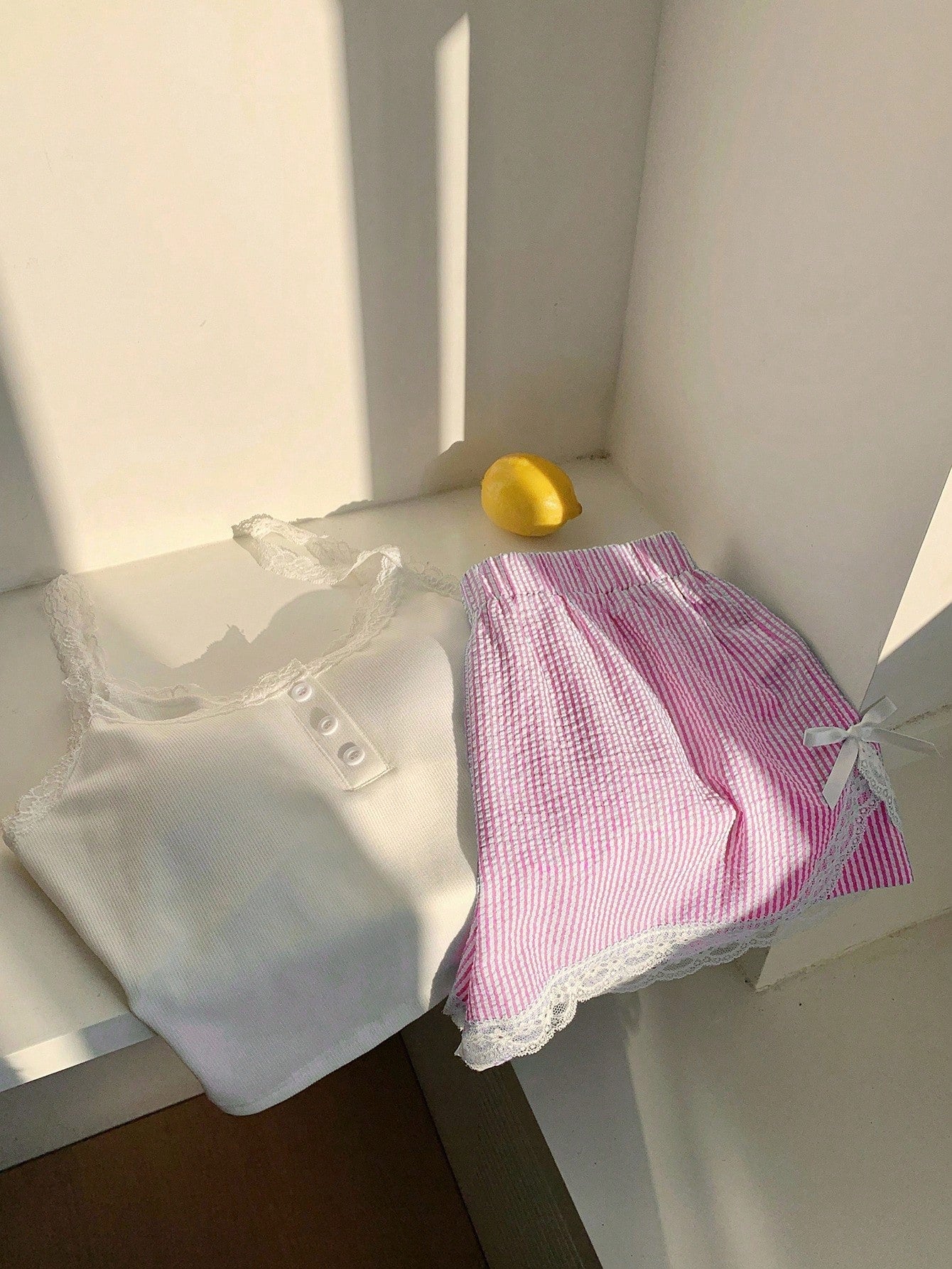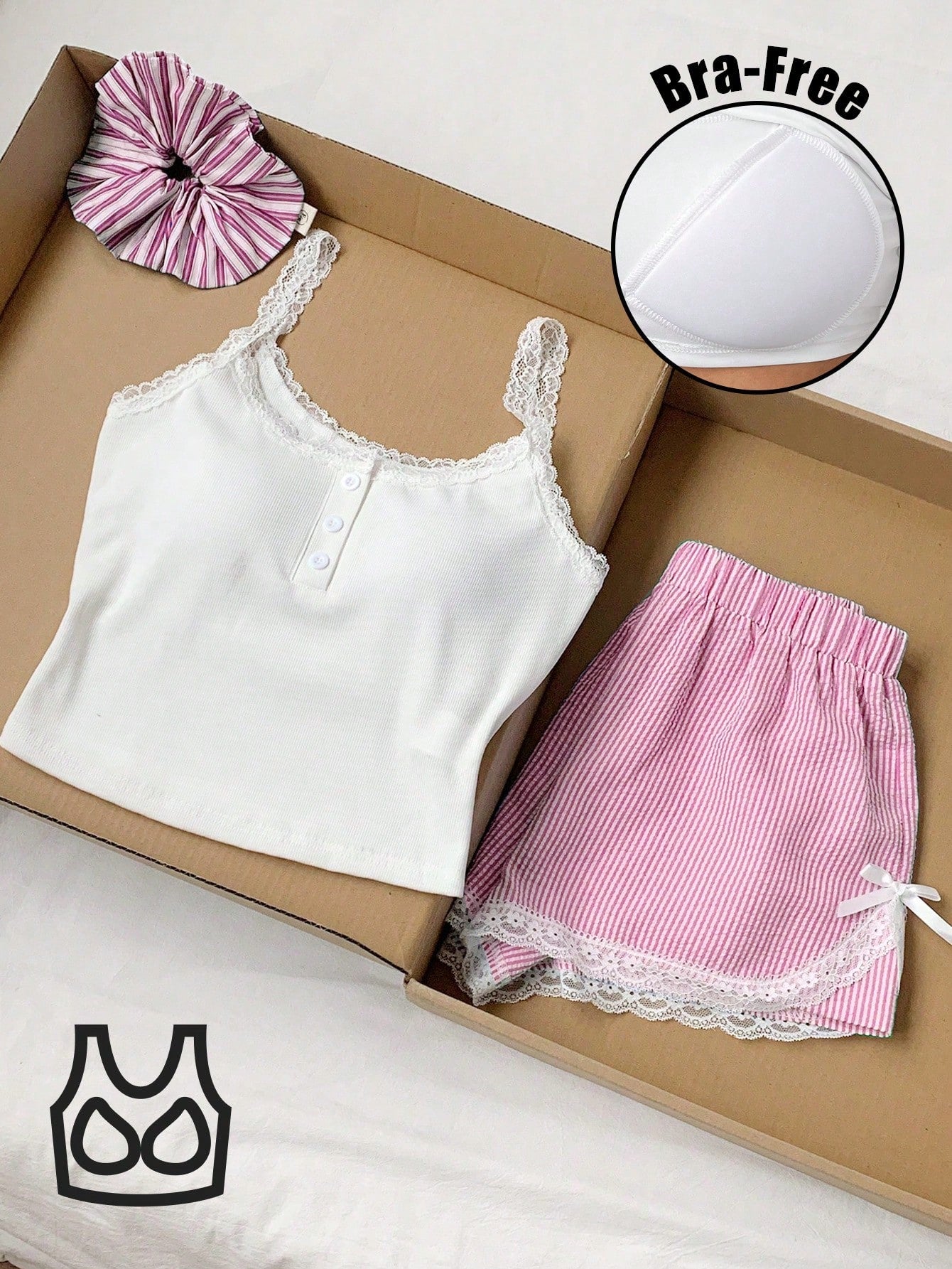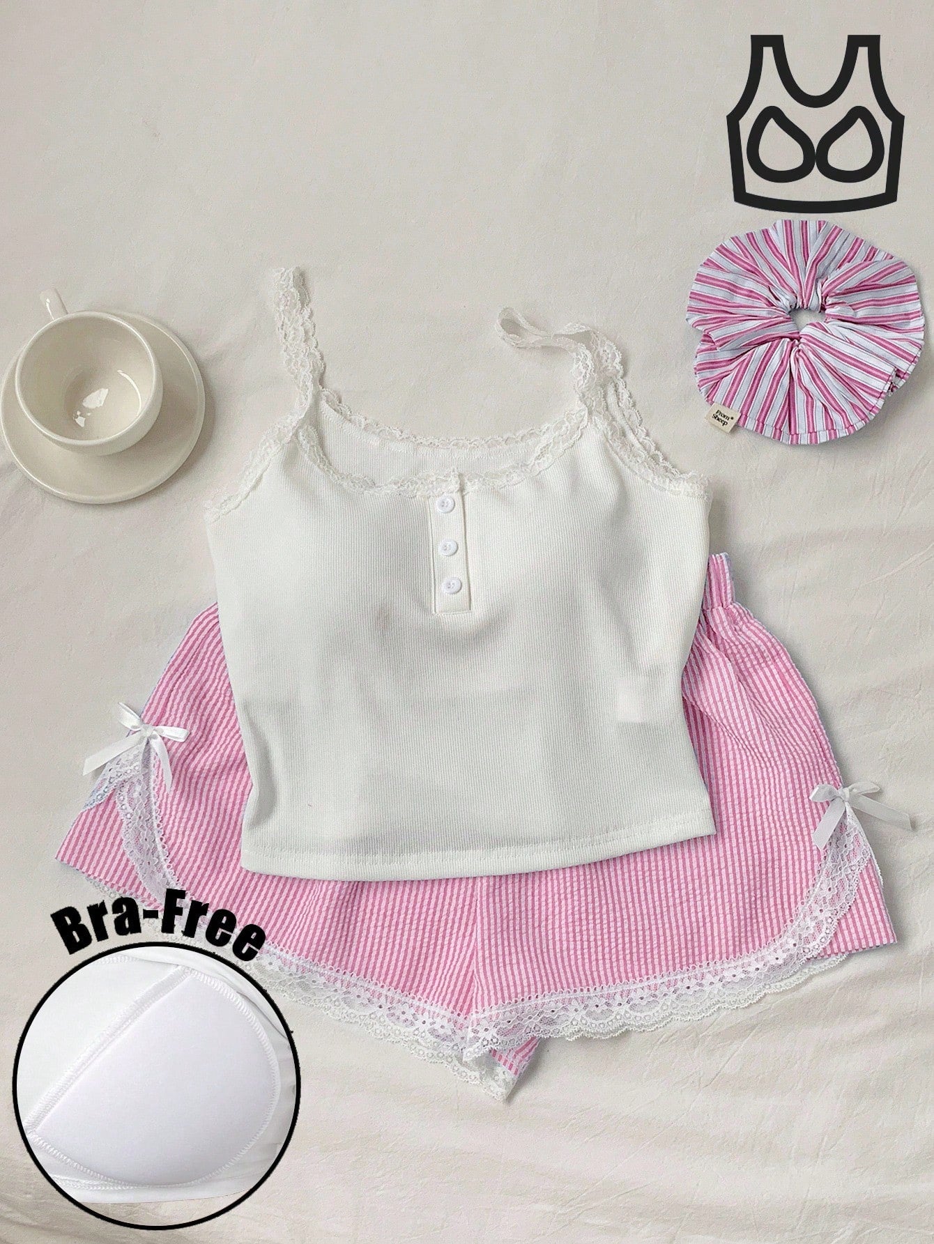 طقم ملابس داخلية وشورت صيفي كاجوال نسائي من Comfortcana مكون من قطعتين، مزين بدانتيل ومطبوع بخطوط، مناسب لقضاء العطلات على الجزيرة