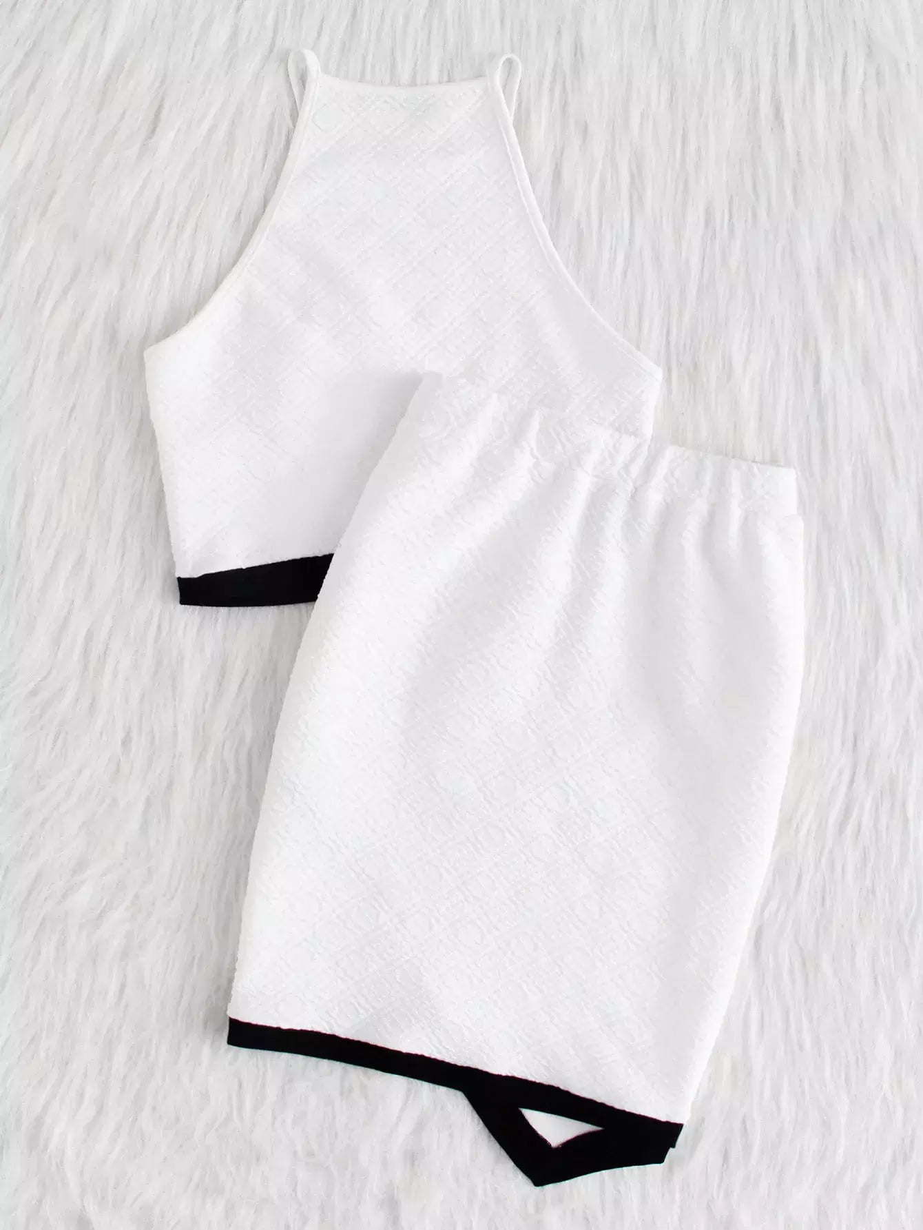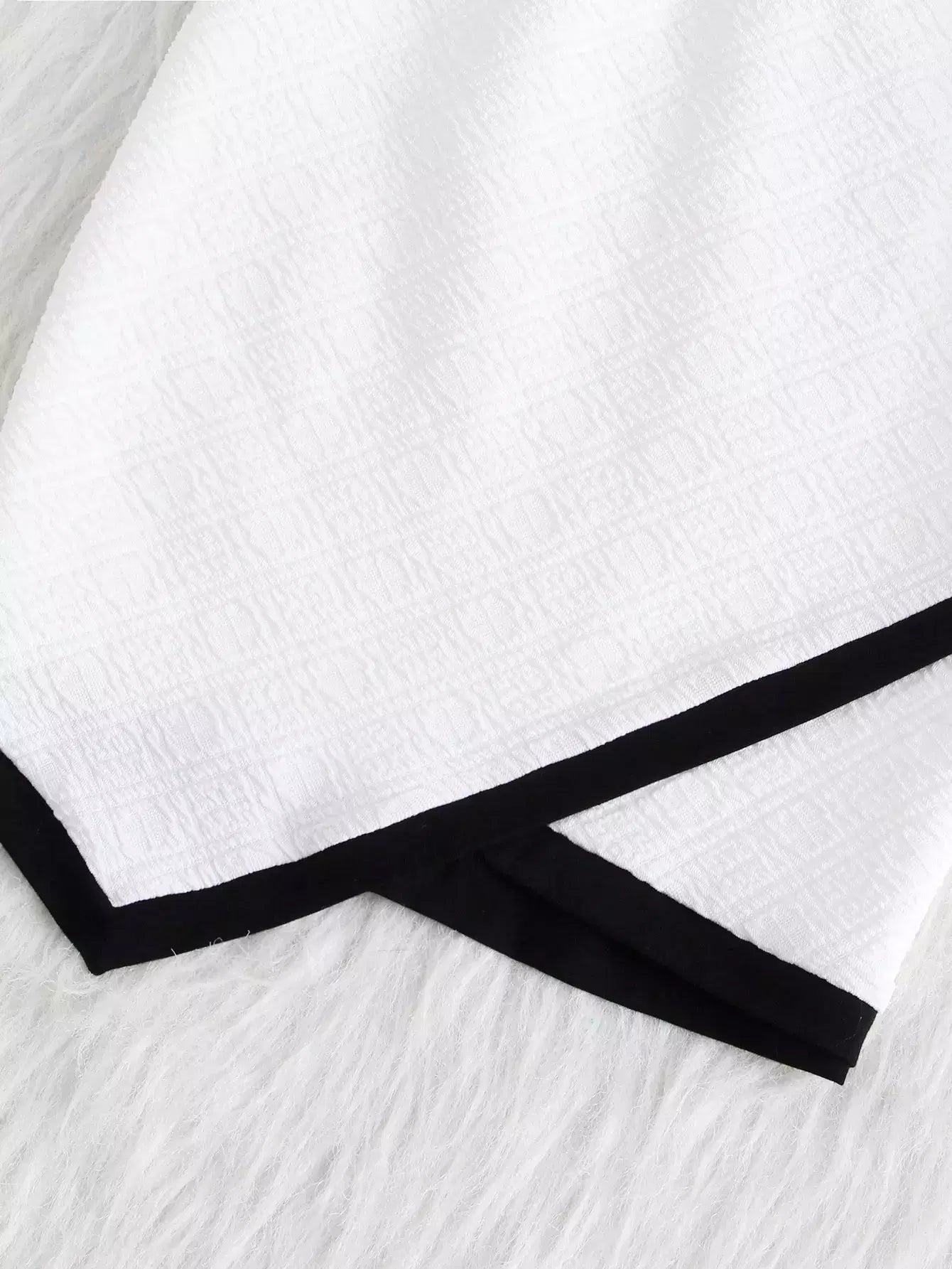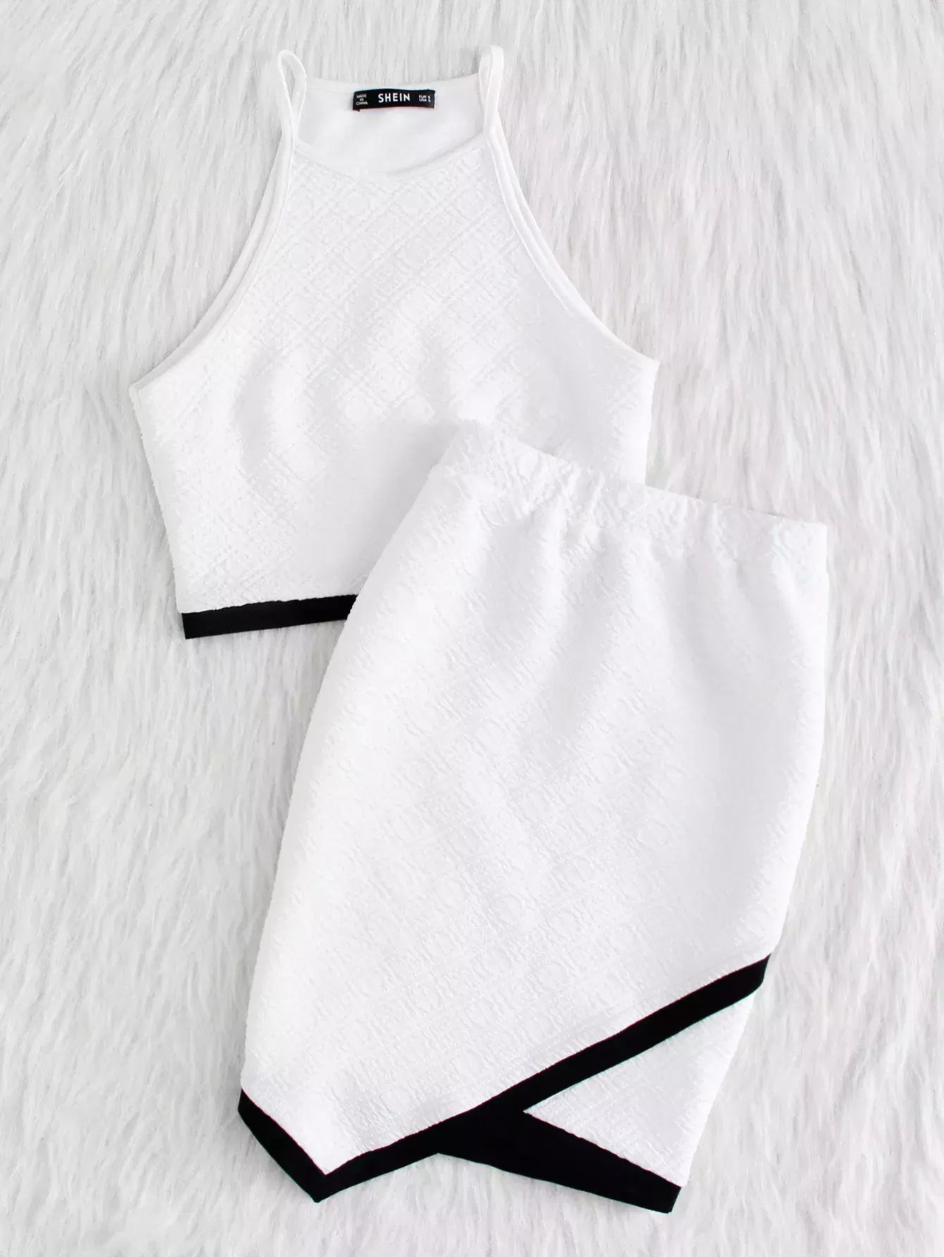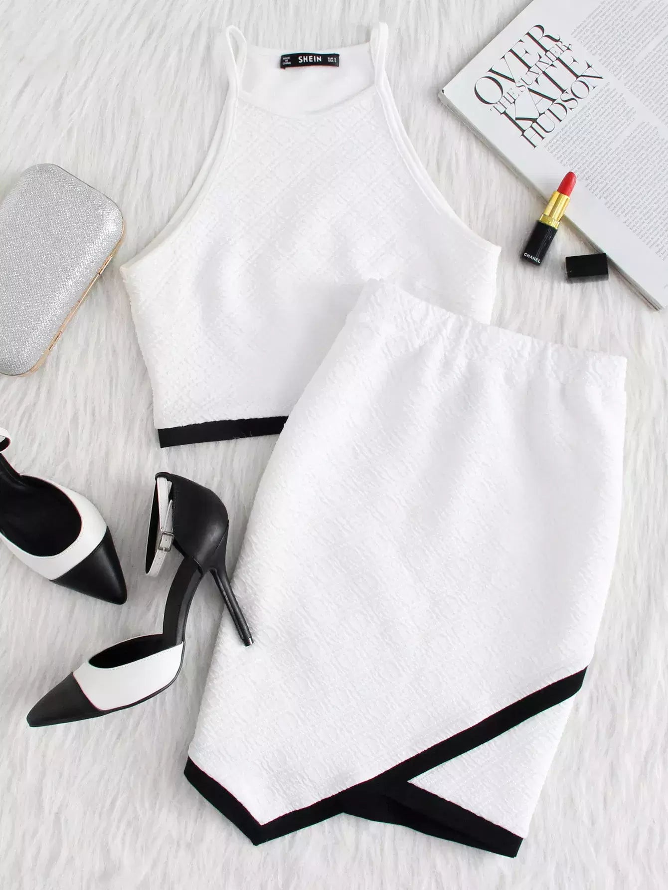 طقم بلوزة بحاشية بلون مغلفة بلون مغاير وتنورة متداخلة