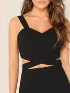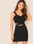 طقم تانك قصير ضيق ضيق متقاطع مع تنورة ضيقة