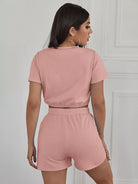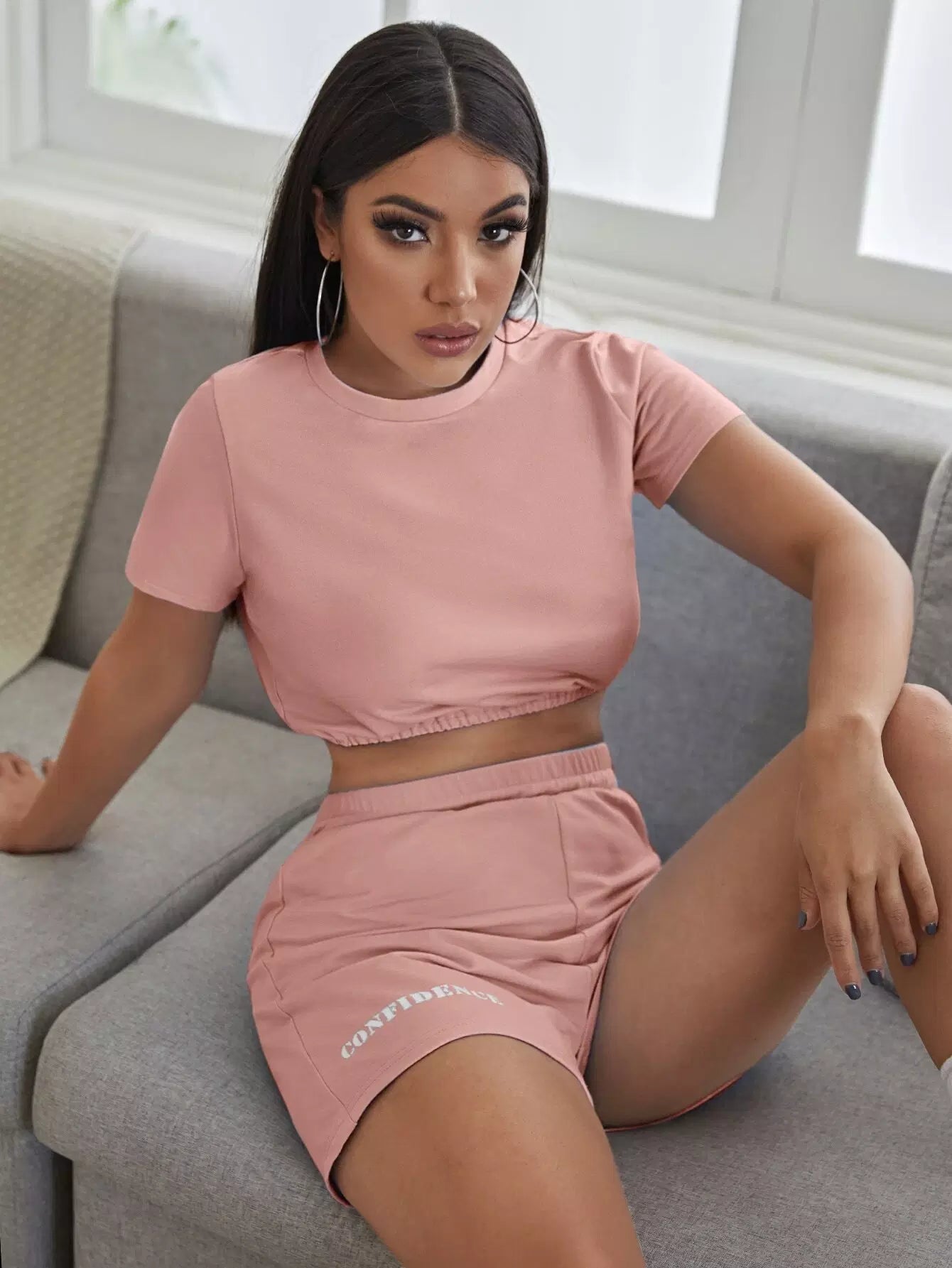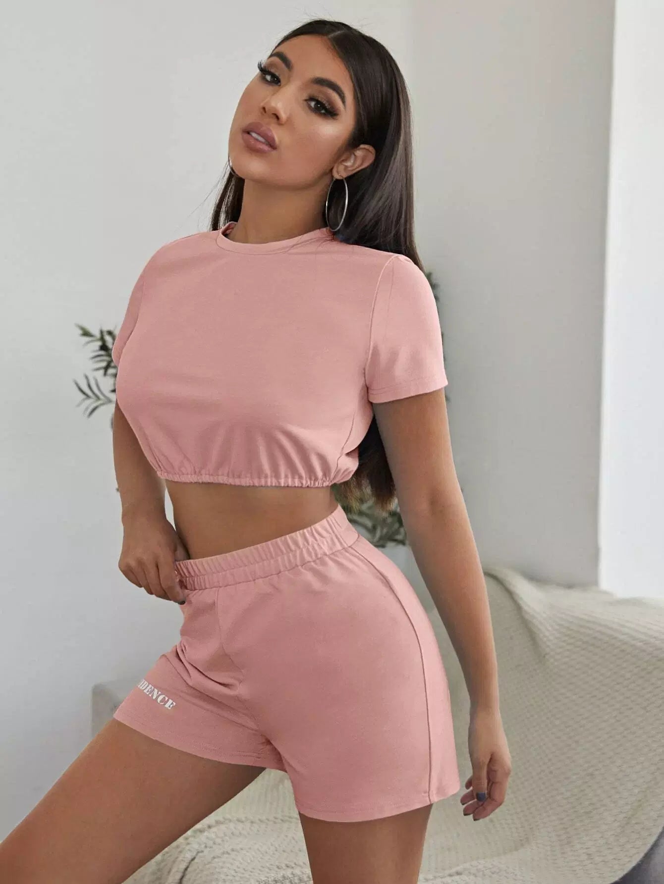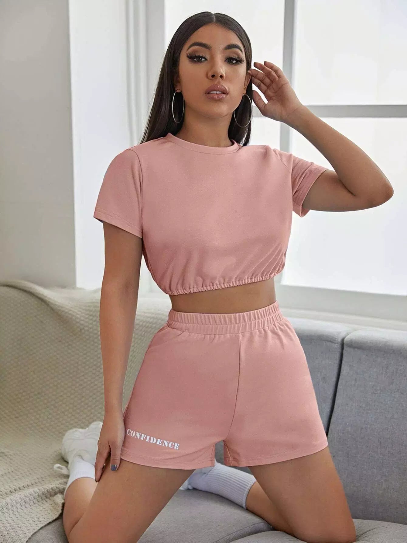 تي شيرت قصير قصير مع شورت برسومات حروف