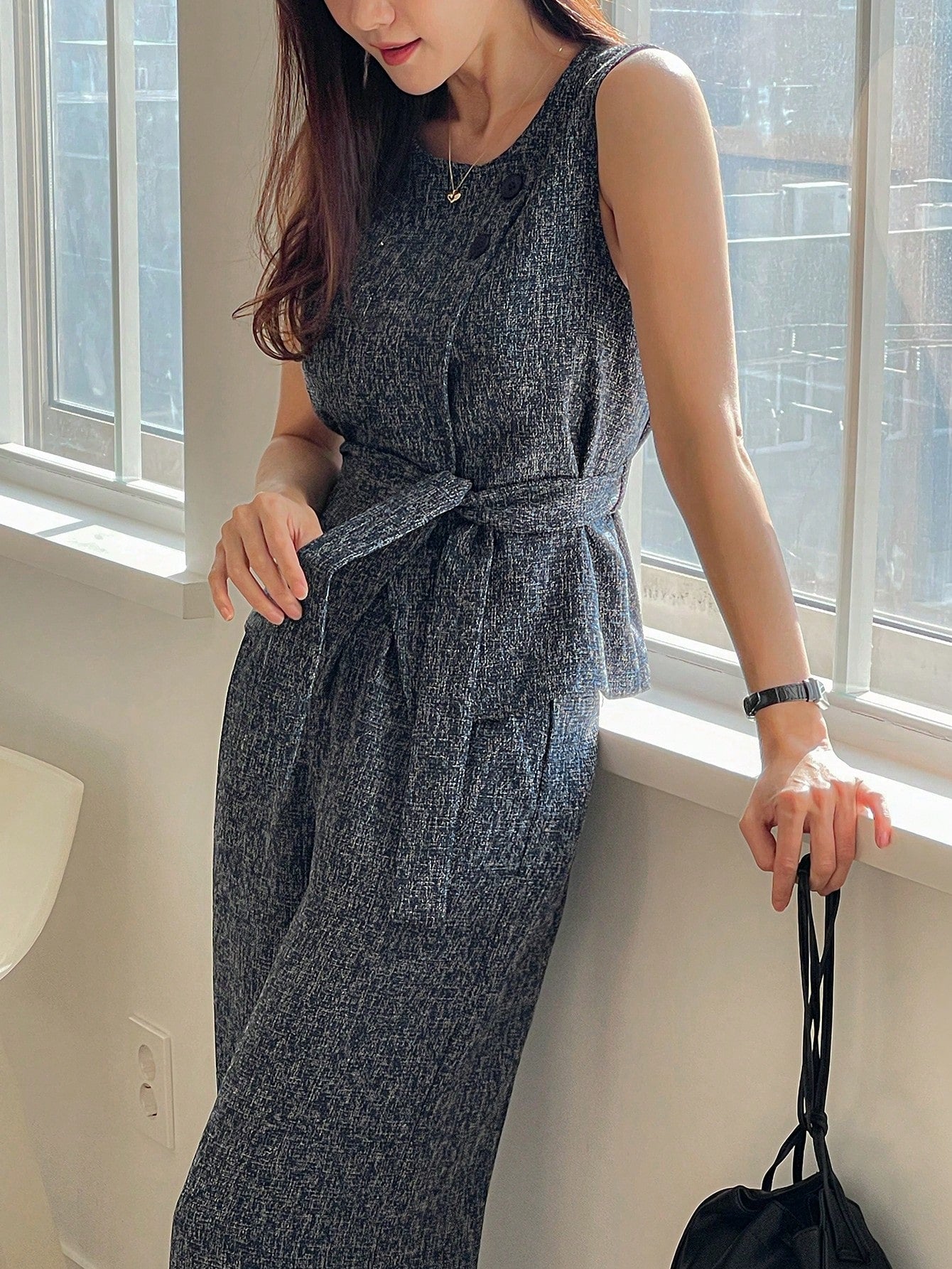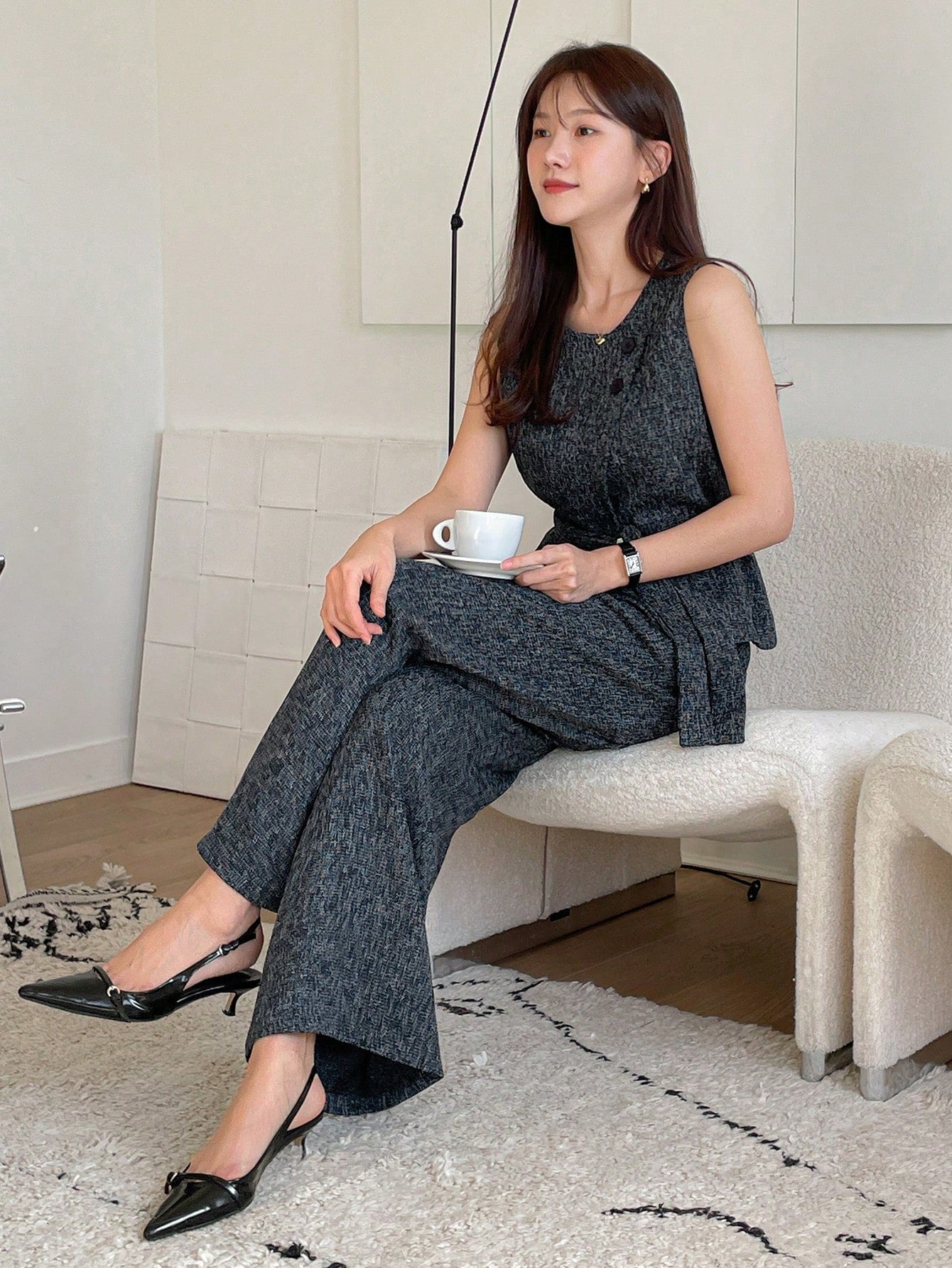 طقم ملابس عمل أنيقة من DAZY مكون من قطعتين، مكون من بلوزة وبنطلون مستقيم الساق، مناسب للتنقل، مناسب للعمل والتنقل