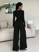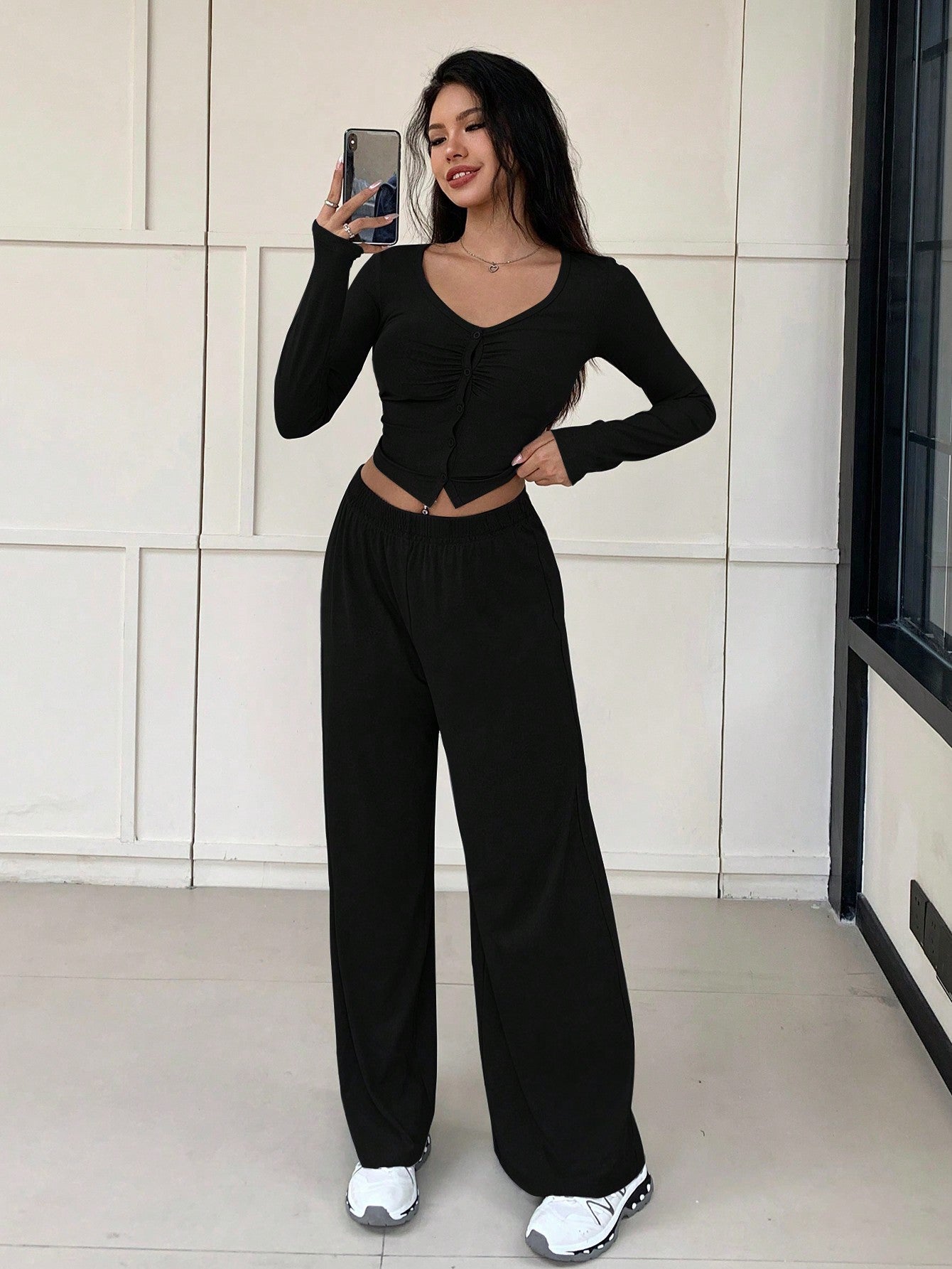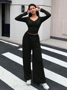 DAZY 2pcs Women Fitted Top With Fleece Lined Pants Set Fall,Winter