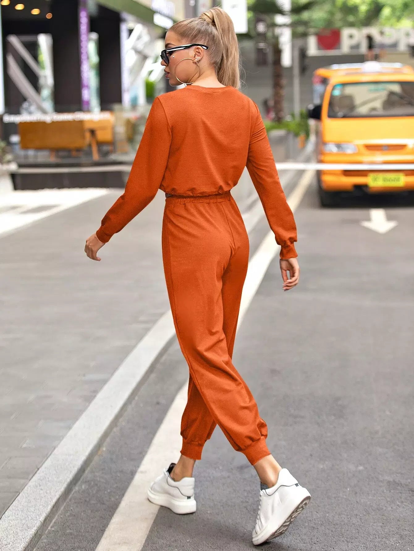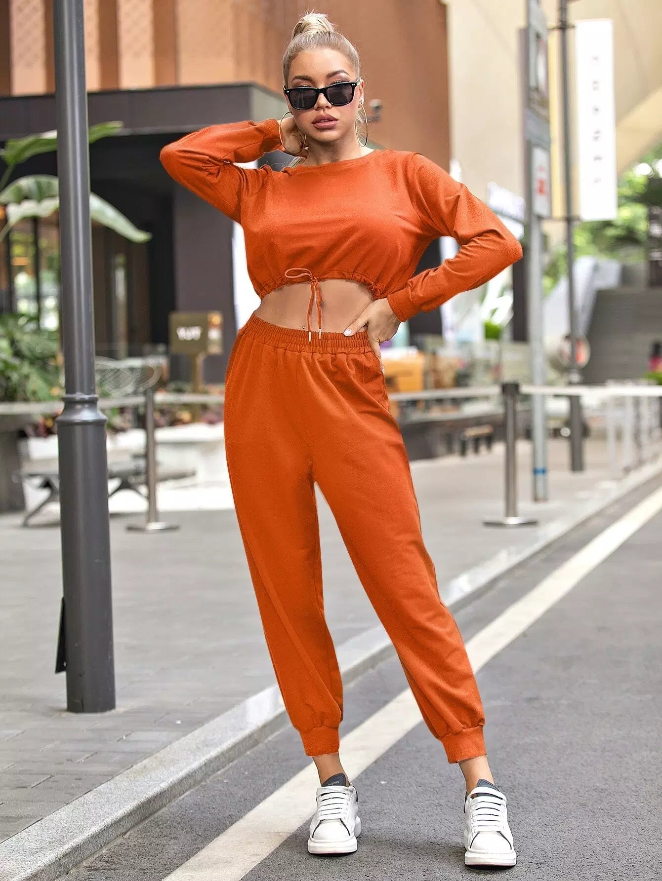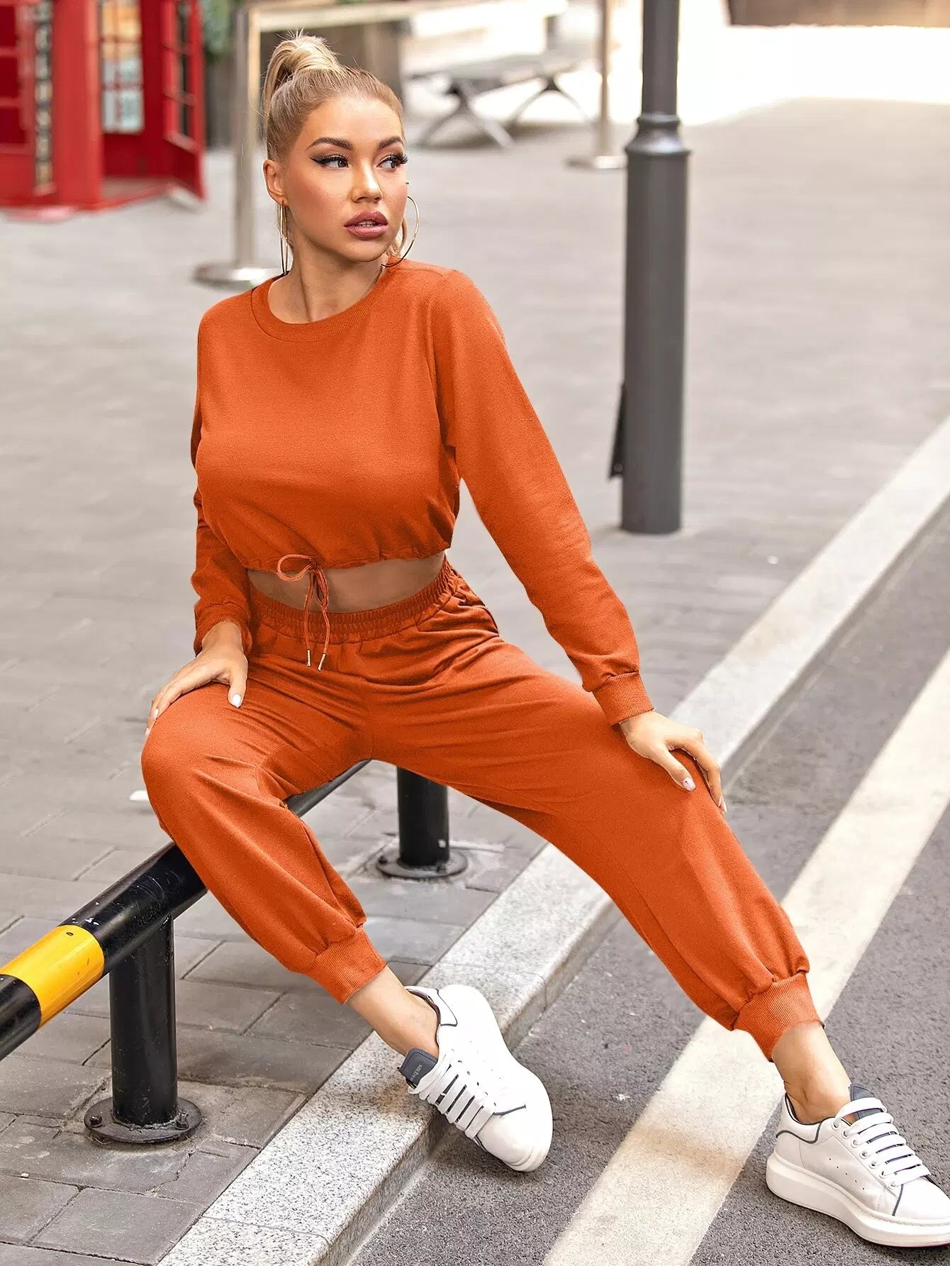 سويت شيرت بحافة رباط بحاشية ضيقة وبنطال رياضي قصير