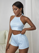 النساء - طقم شورت وبلوزة بطبعة جينغهام