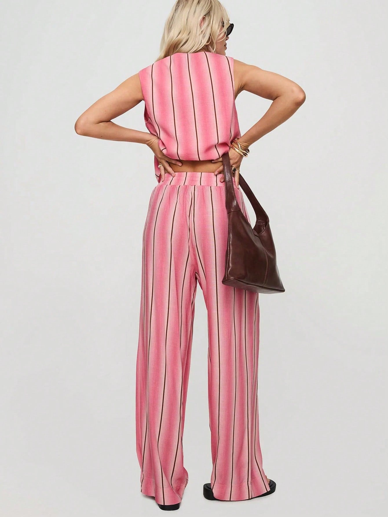 طقم من قطعتين من INAWLY للنساء صيفي مخطط برباط أمامي وبنطلون كاجوال فضفاض