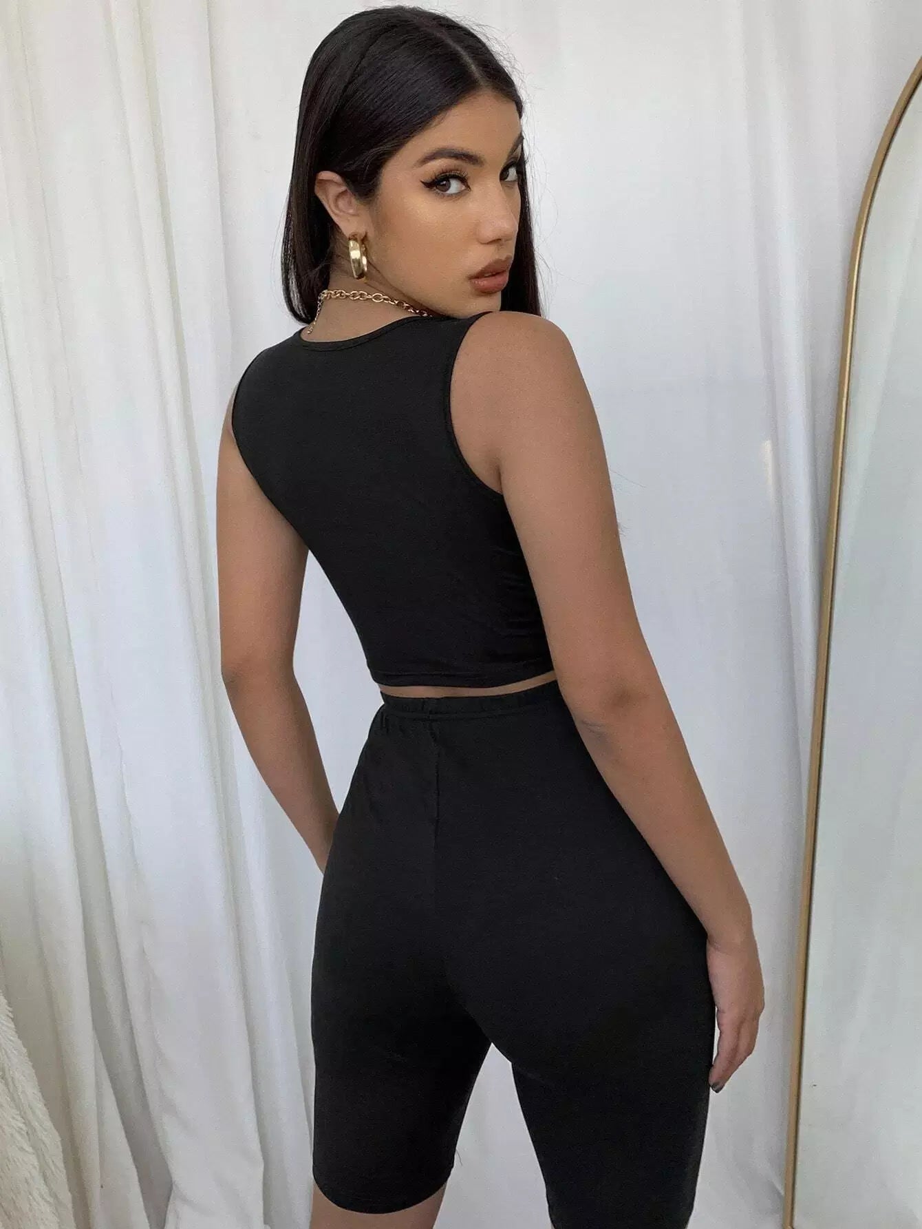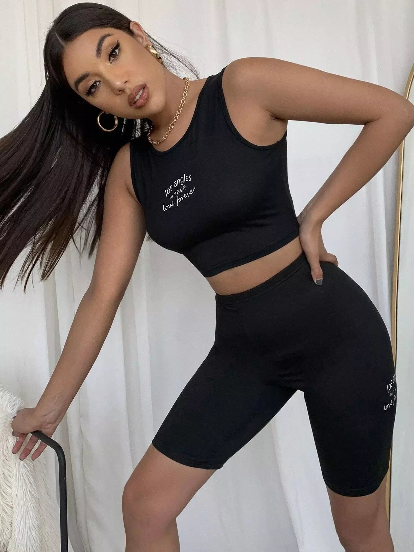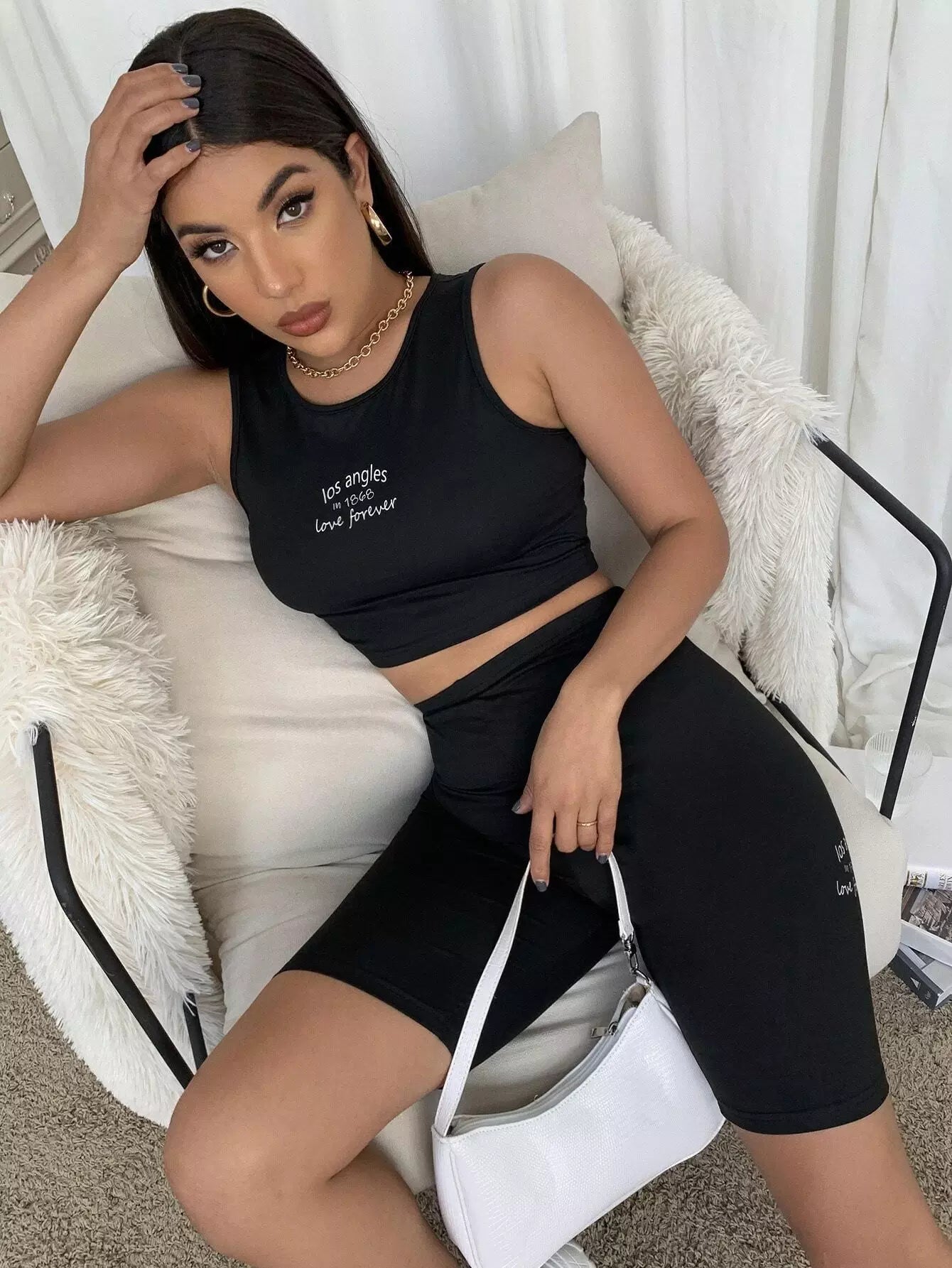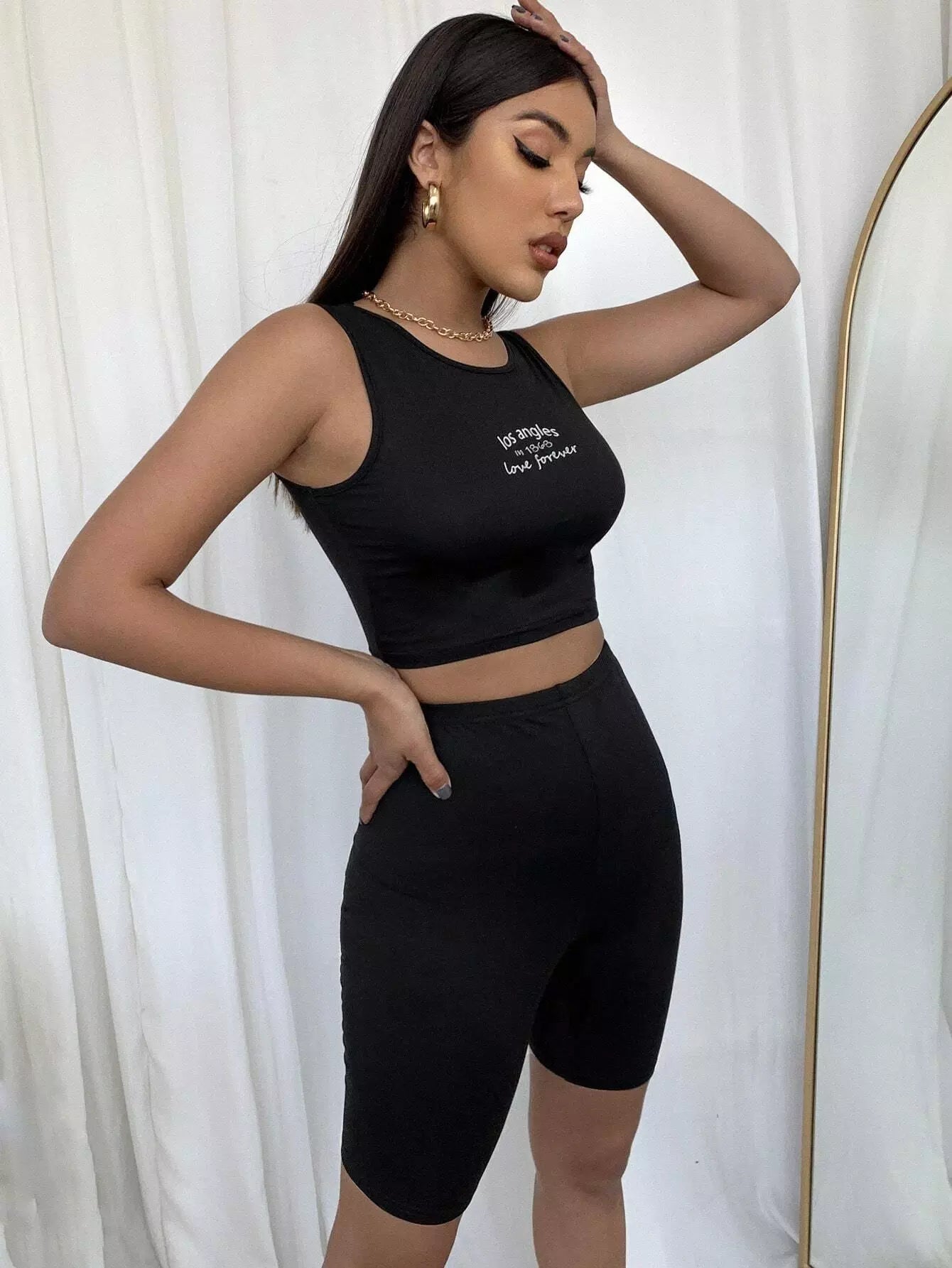 طقم تيشيرت بدون أكمام برسومات حروف وشورت راكب الدراجة النارية