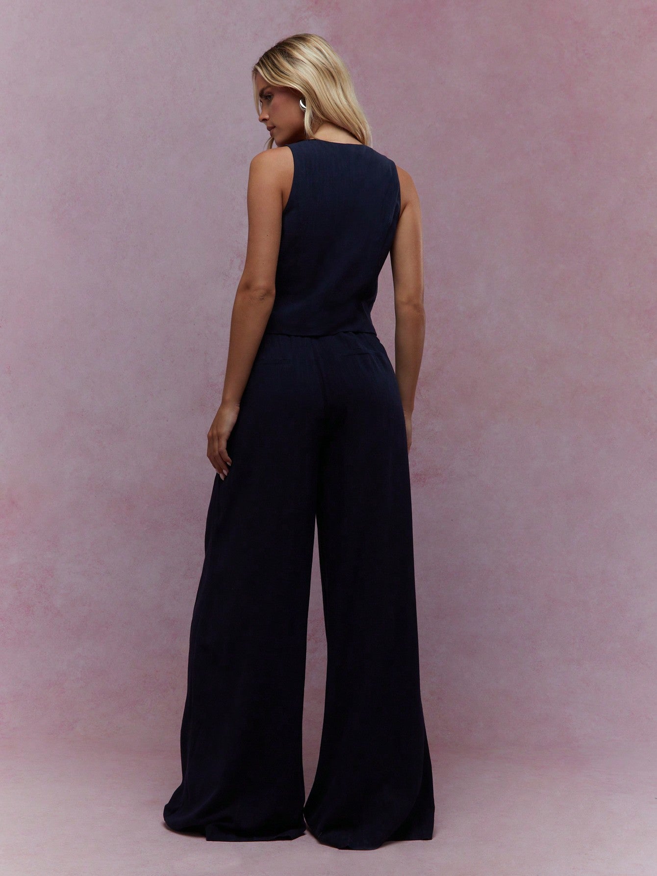 MISSGUIDED Buttoned V Plunge Neck Vest And Pleated Wide Leg Pants Two Piece Co-Ord Set