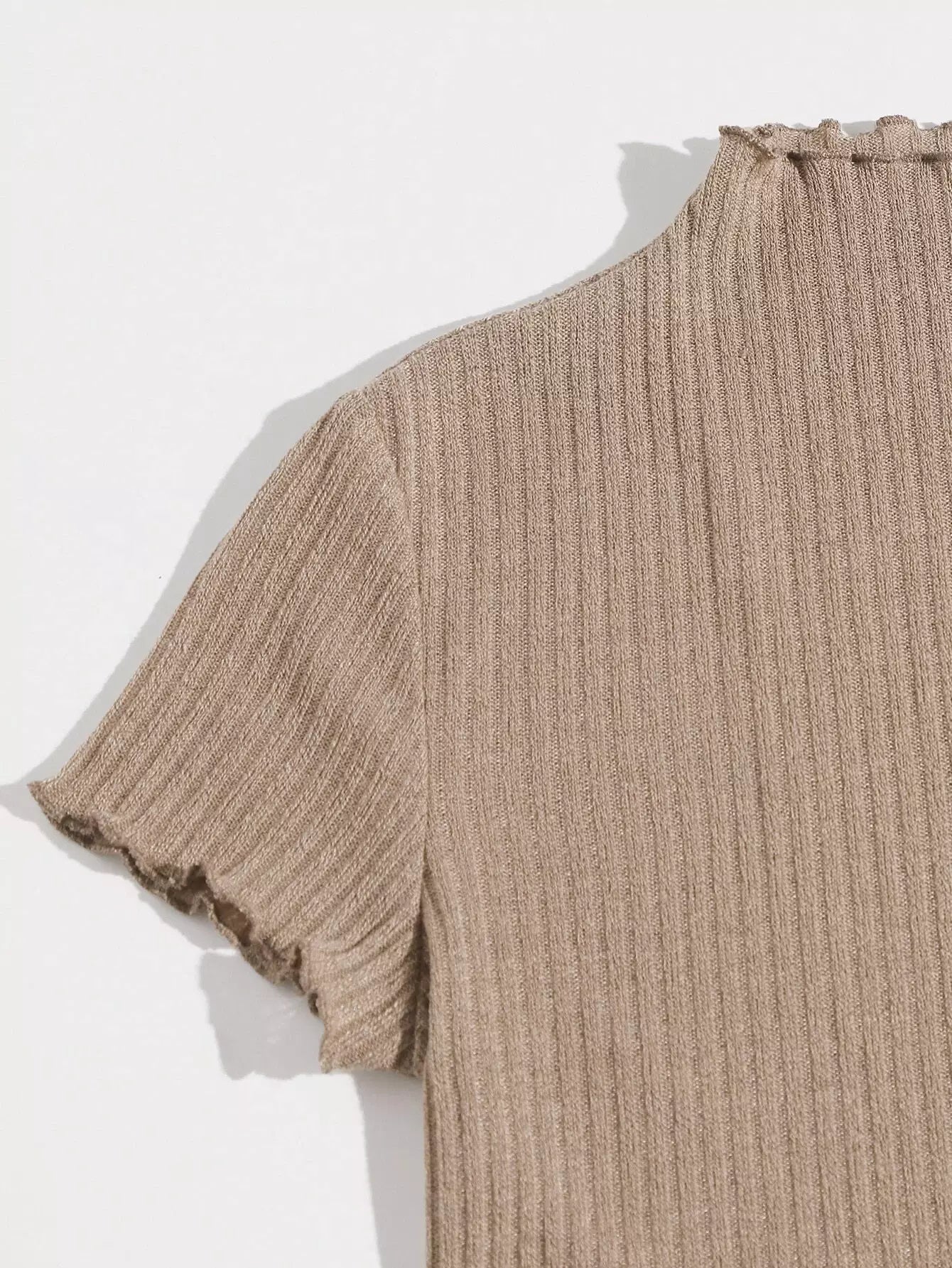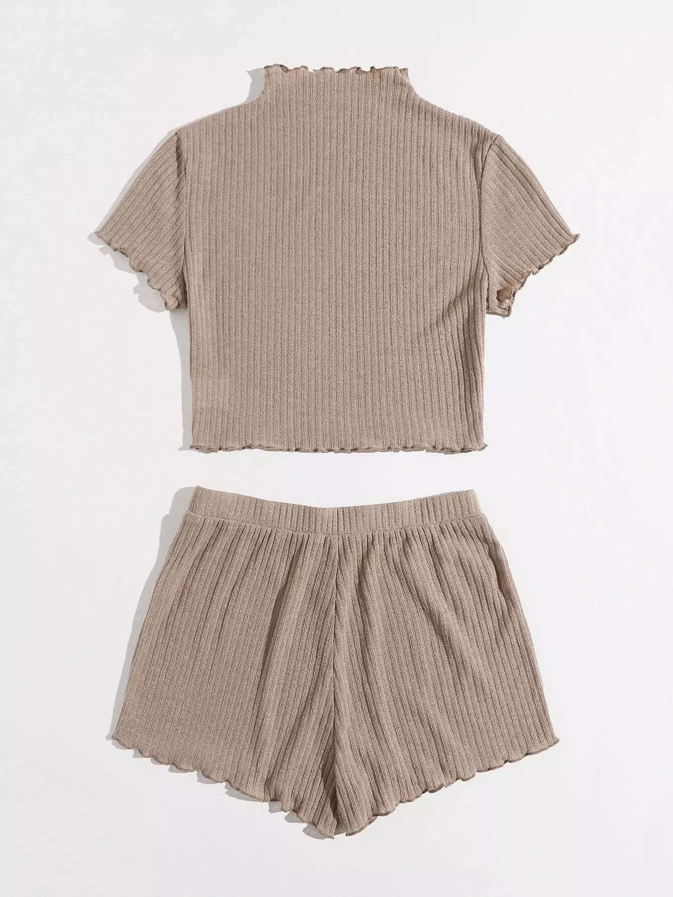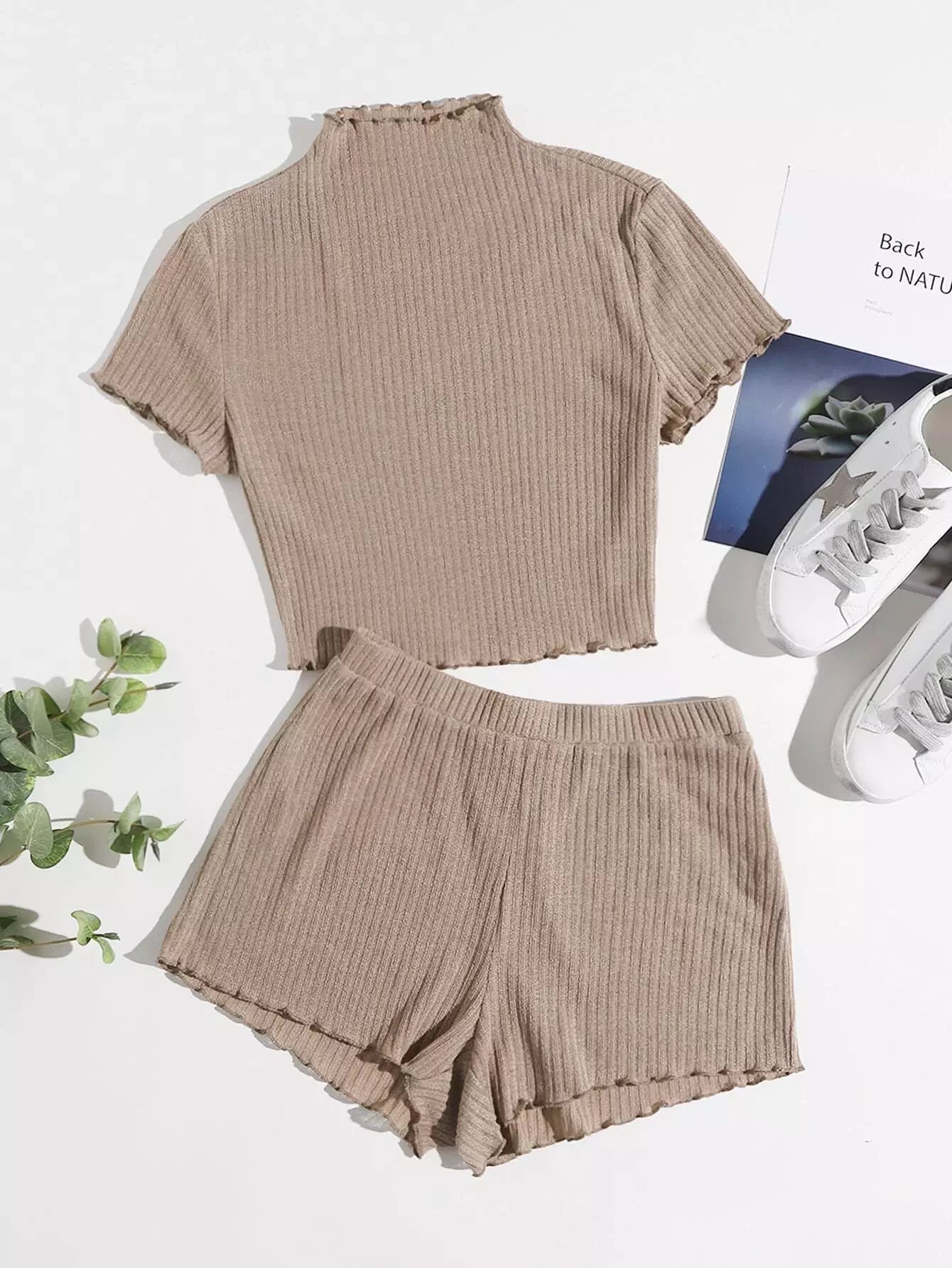 طقم تي شيرت بحافة خس برقبة وهمية وشورت رياضي