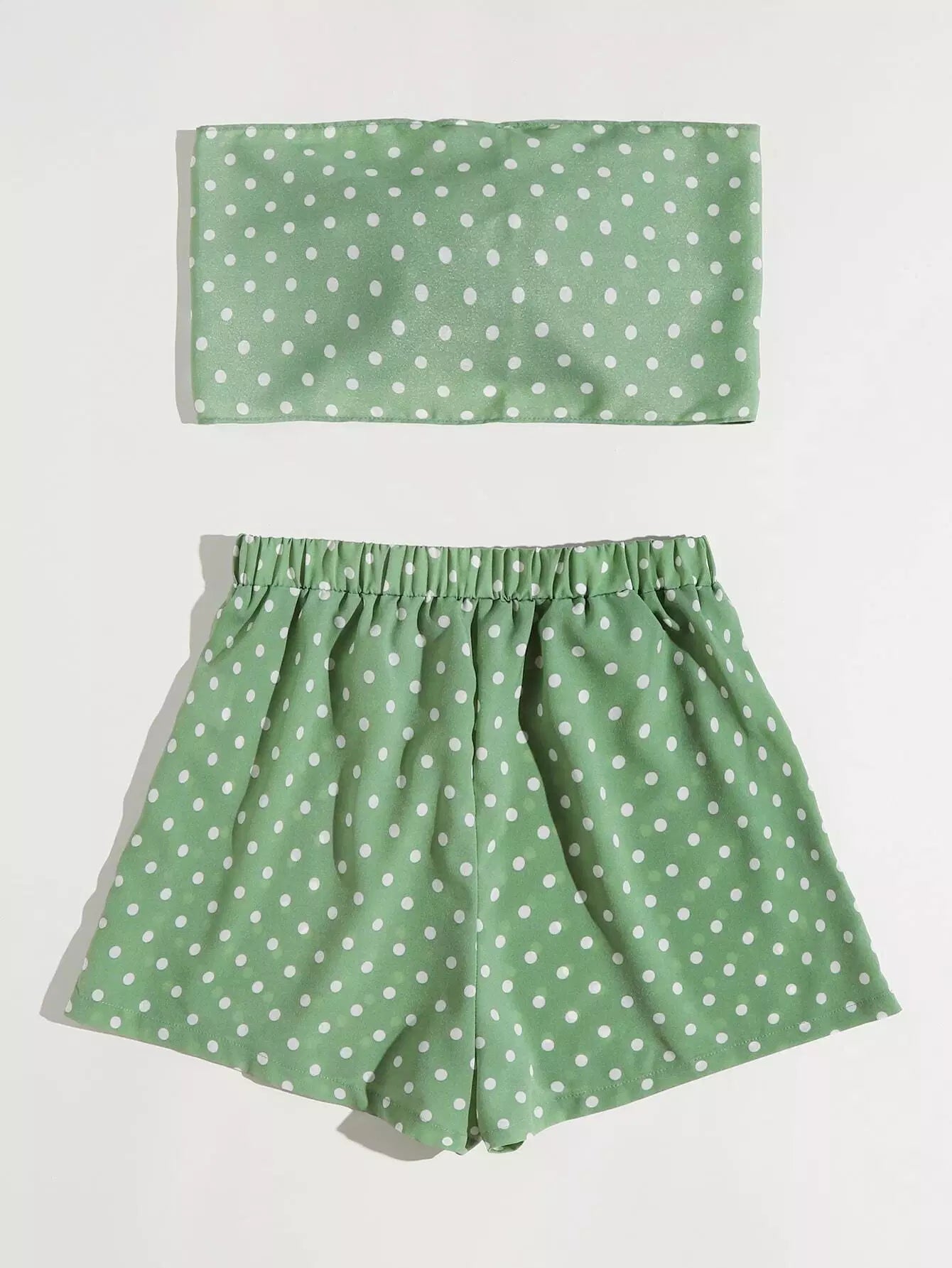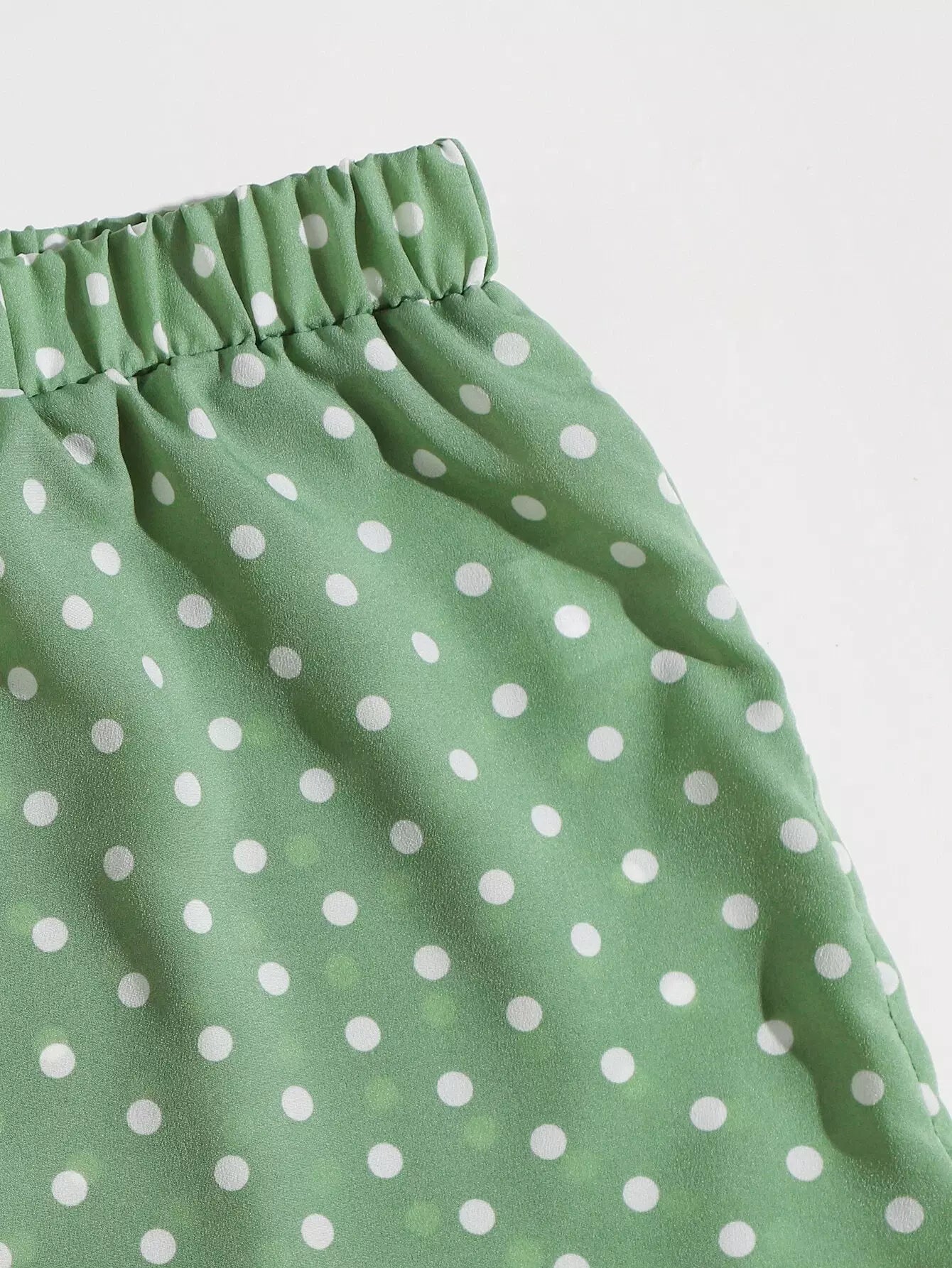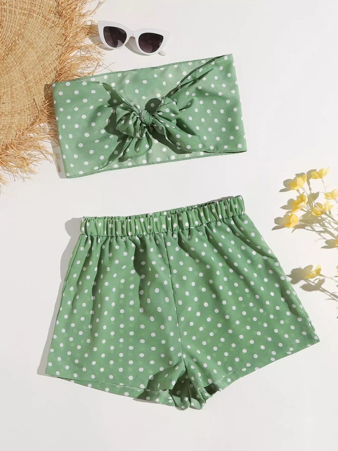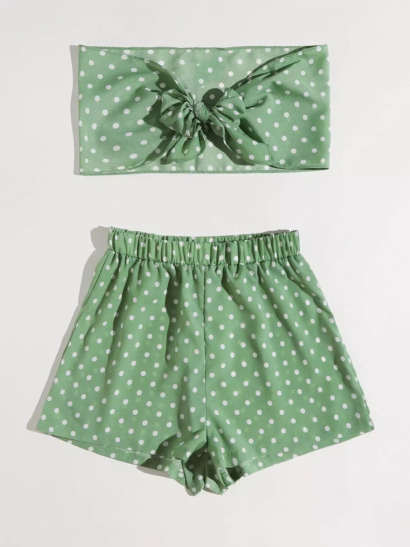 طقم توب وشورت قصير منقّط بربطة عنق أمامية منقطة
