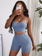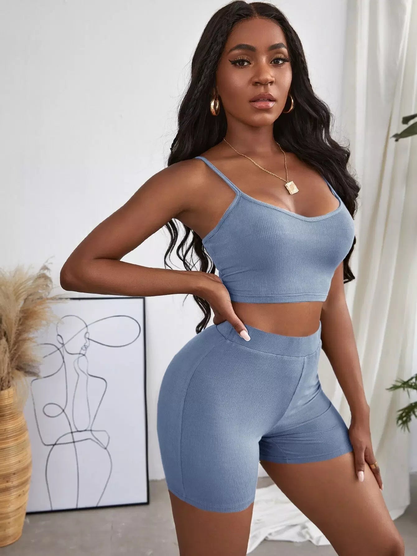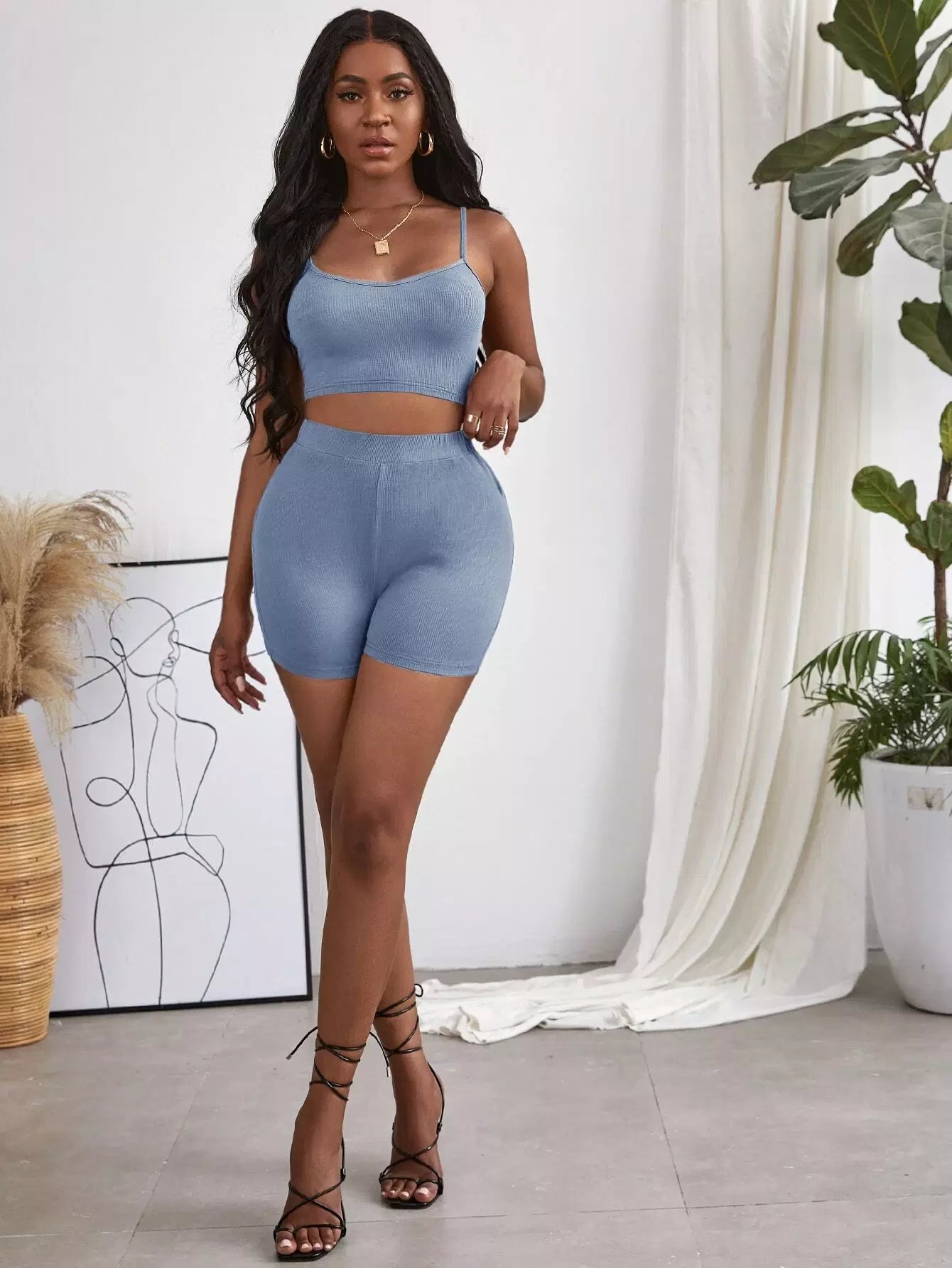 طقم قميص قصير محبوك على شكل ضلع وسروال قصير لراكبي الدراجات النارية