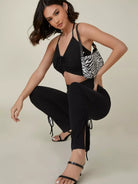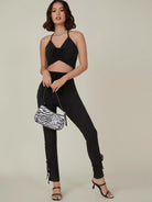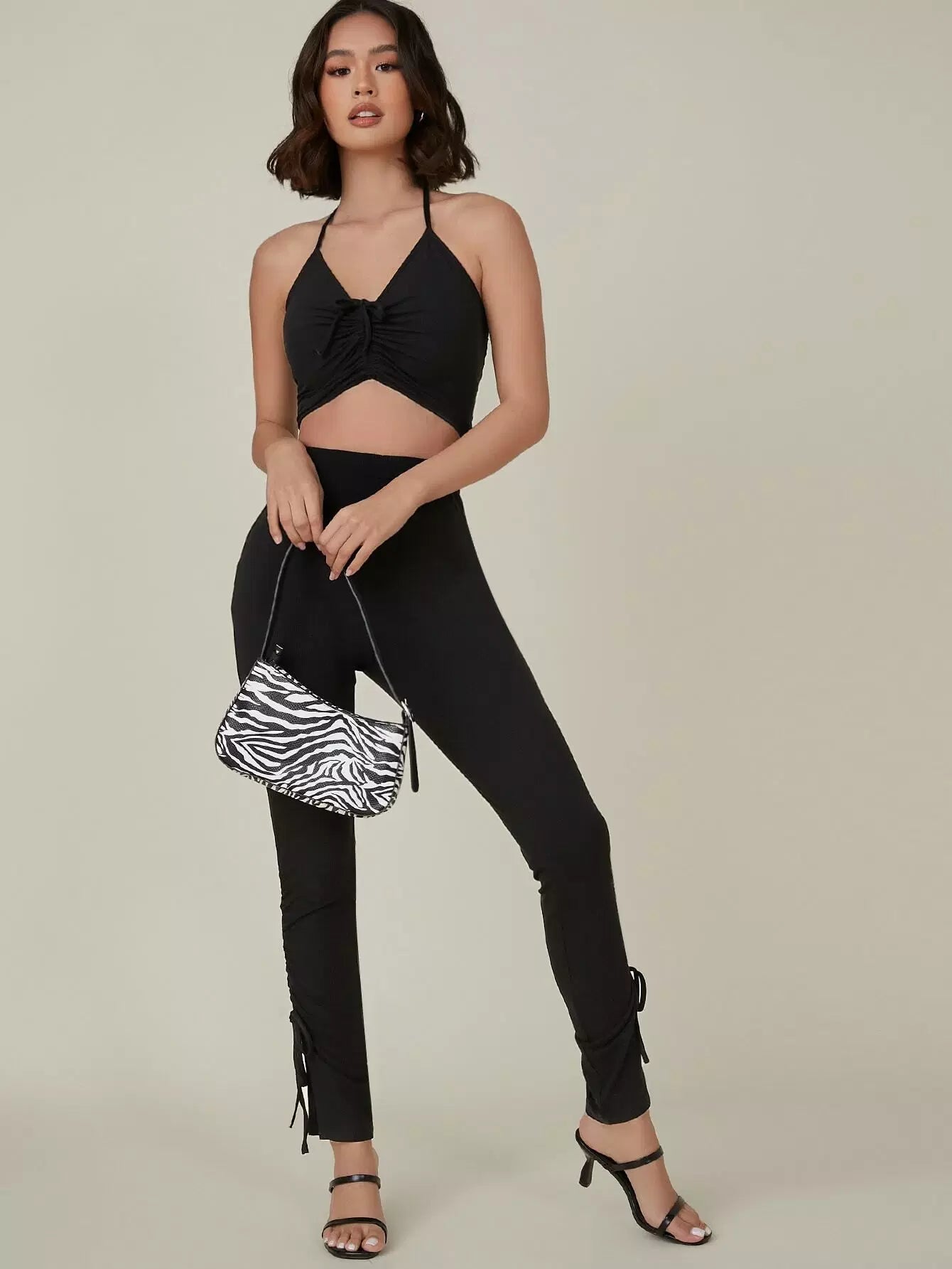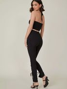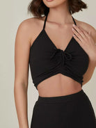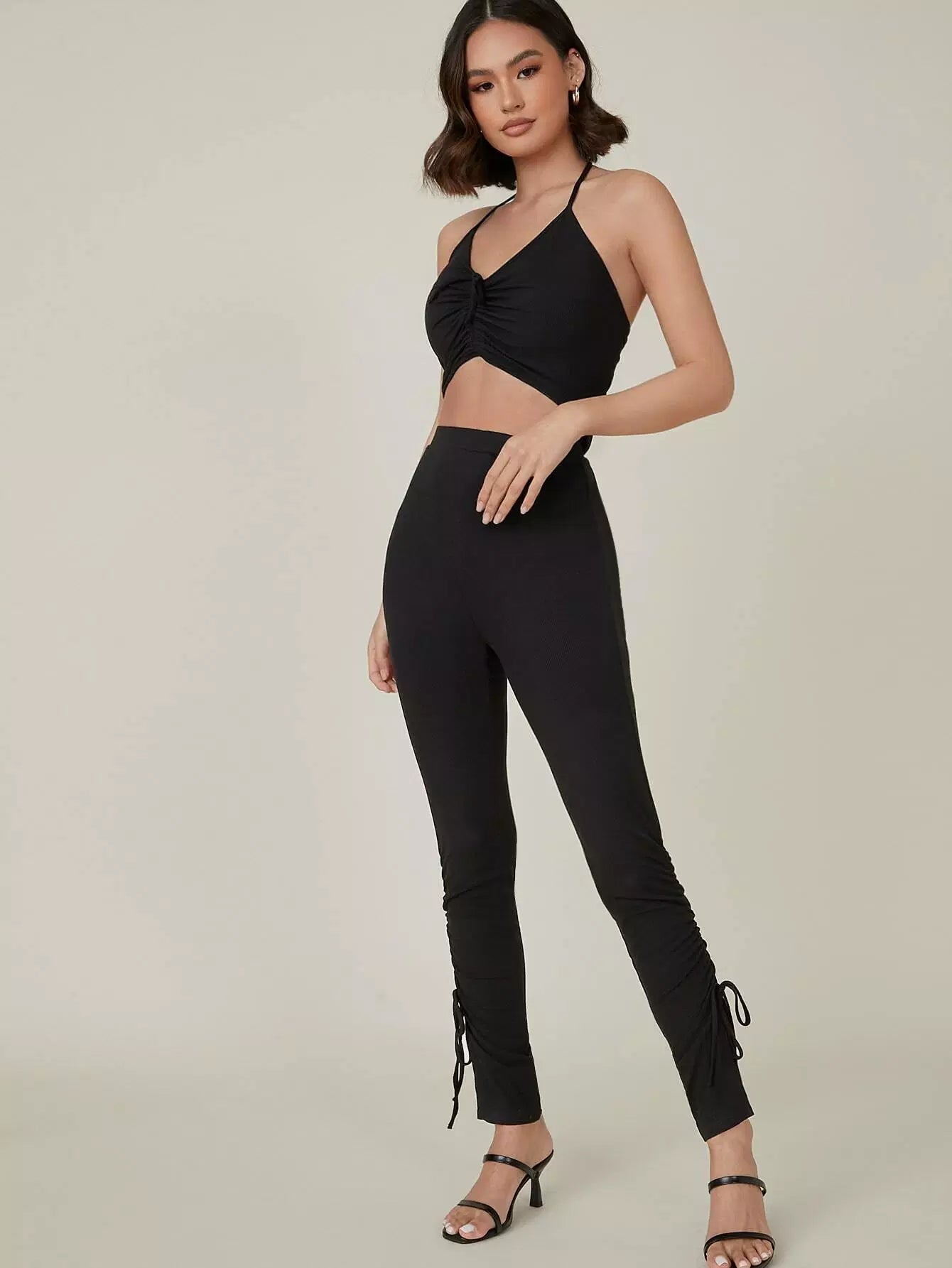 طقم مكون من بلوزة قصيرة مضلعة مكشكشة وسروال ضيق مع رباط سحب