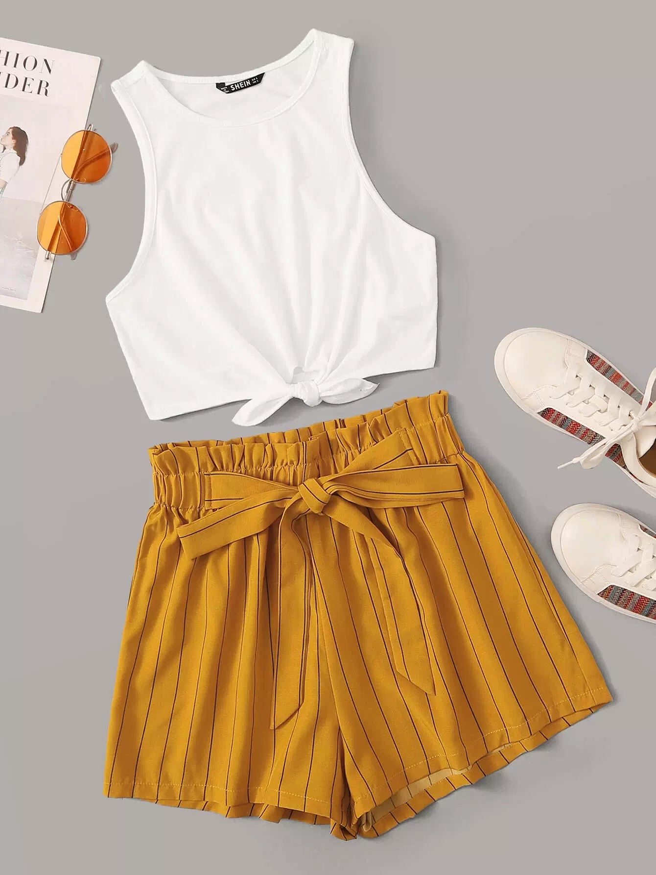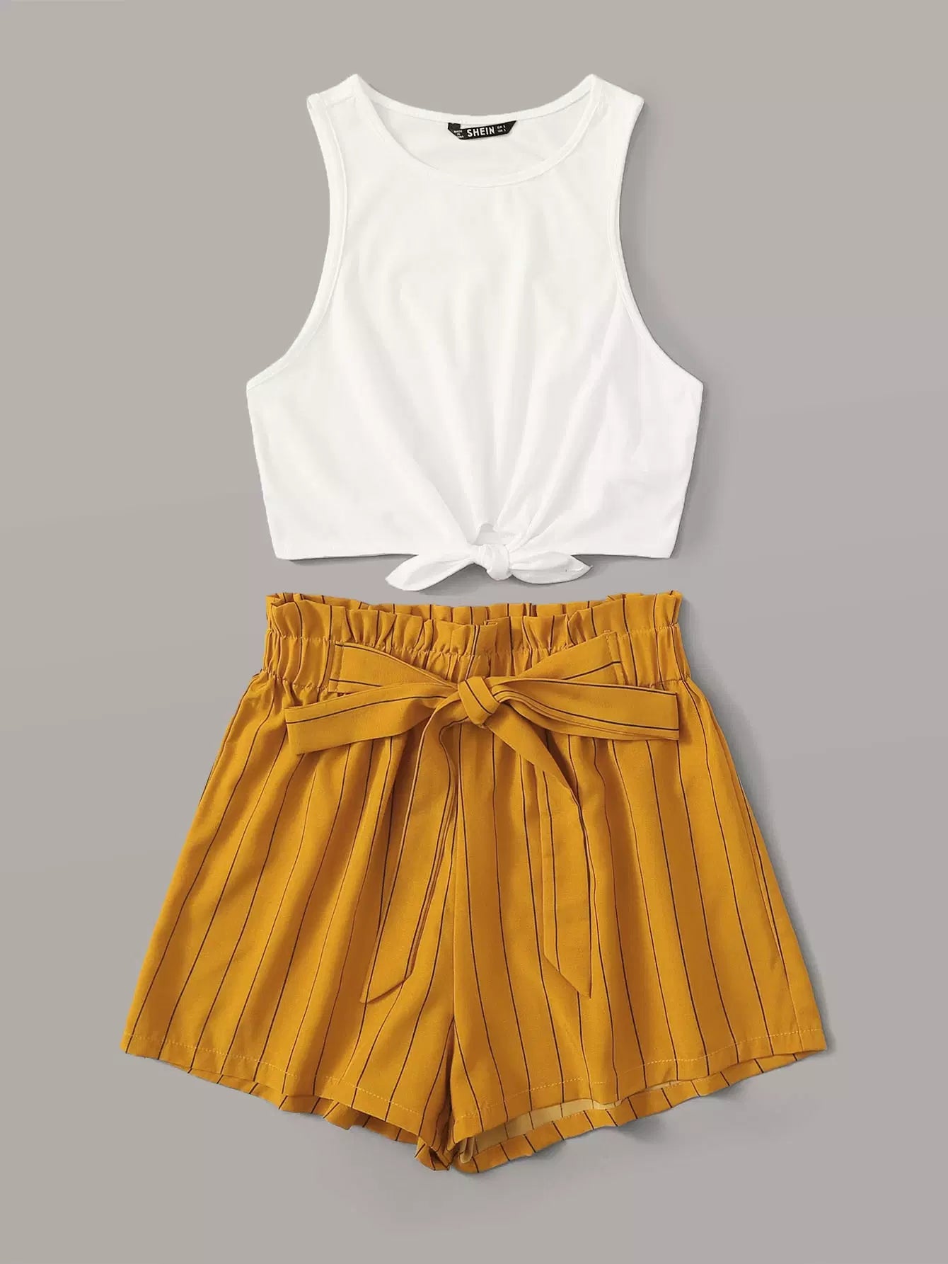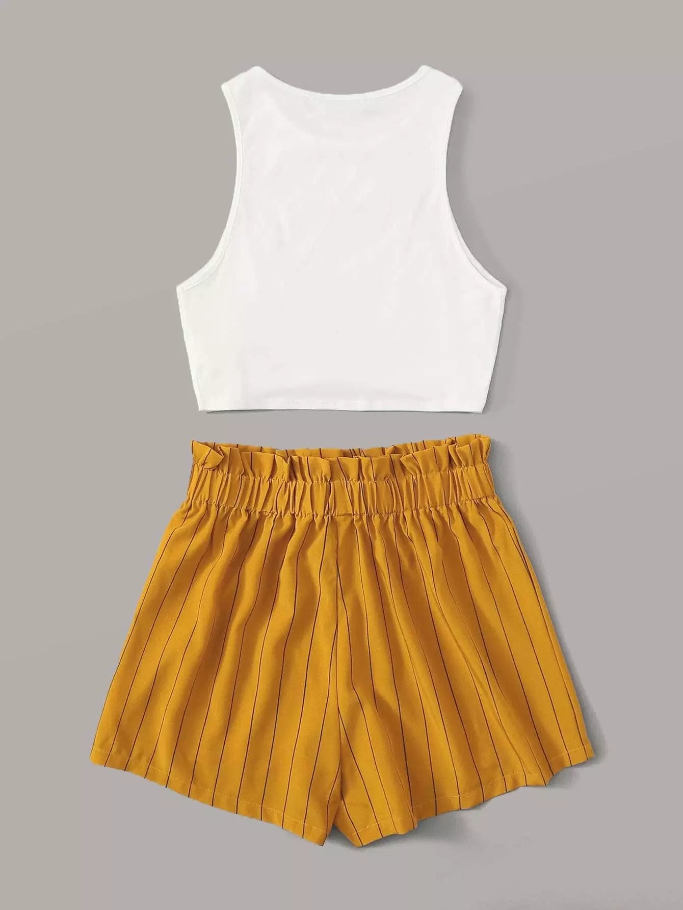 طقم من توب داخلي برباط ذاتي وشورت مخطط من Paperbag