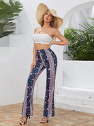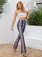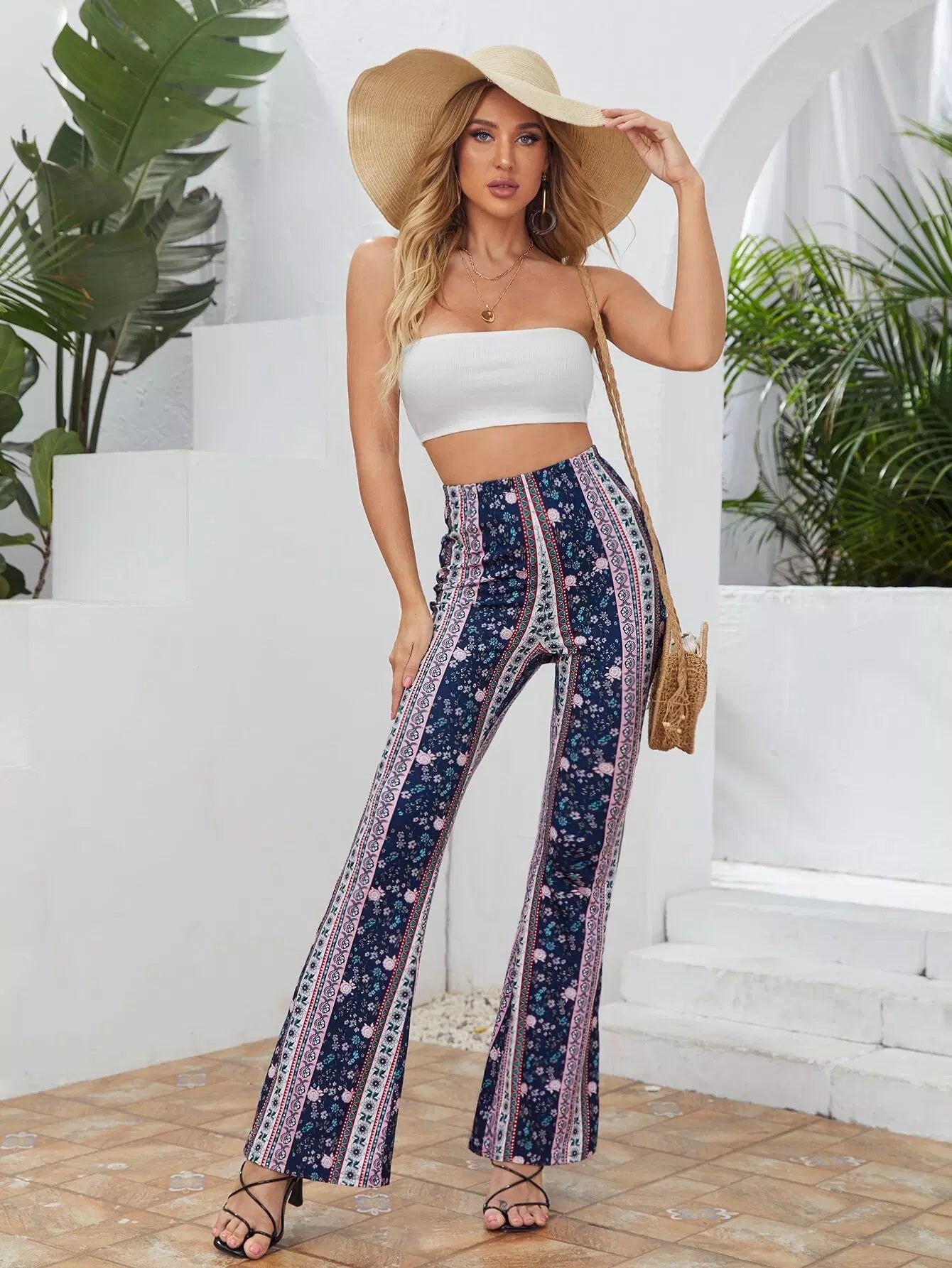 طقم بلوزة سادة بعصابة سادة وبنطلون بطبعة زهور واسع الساقين
