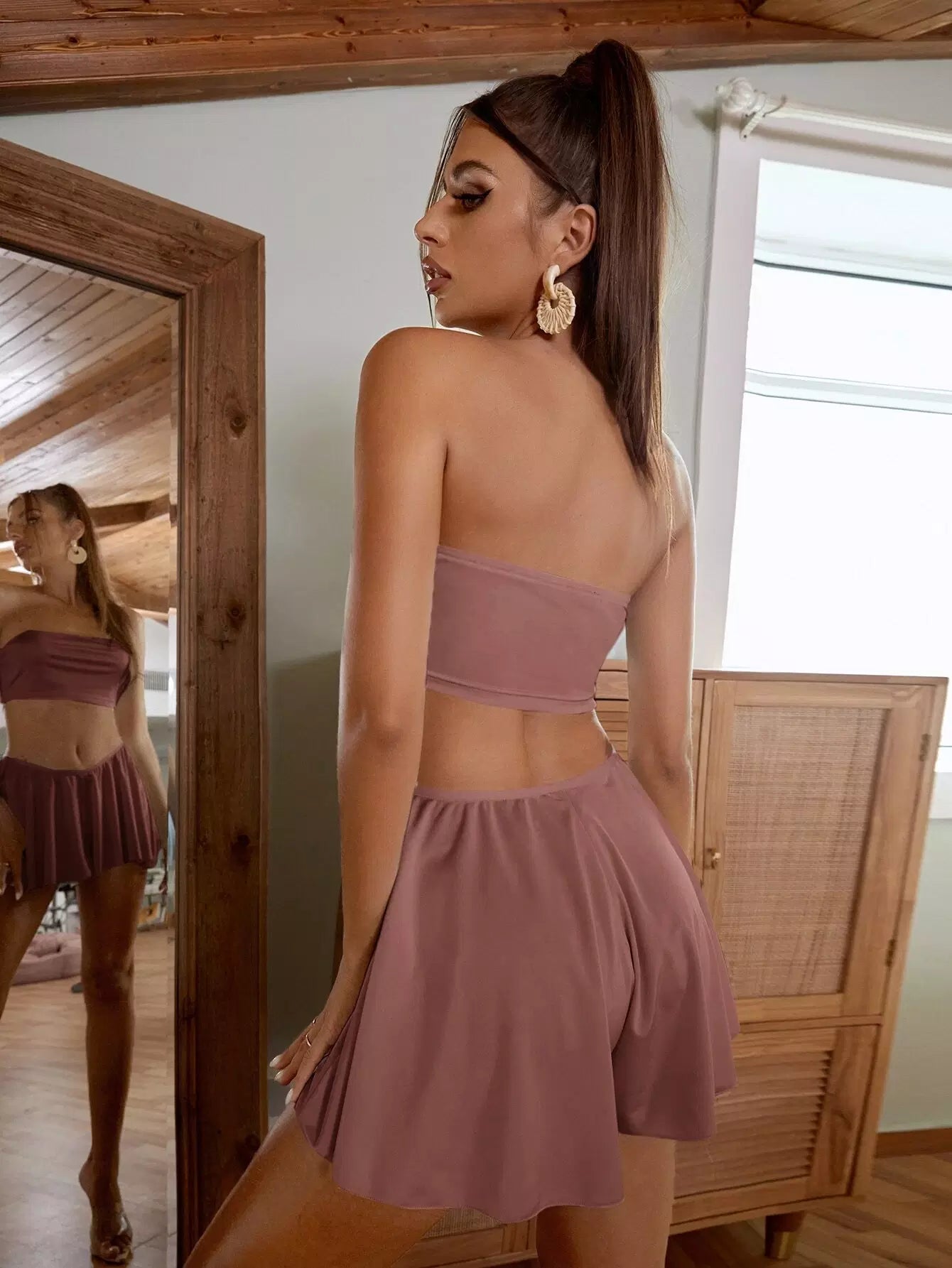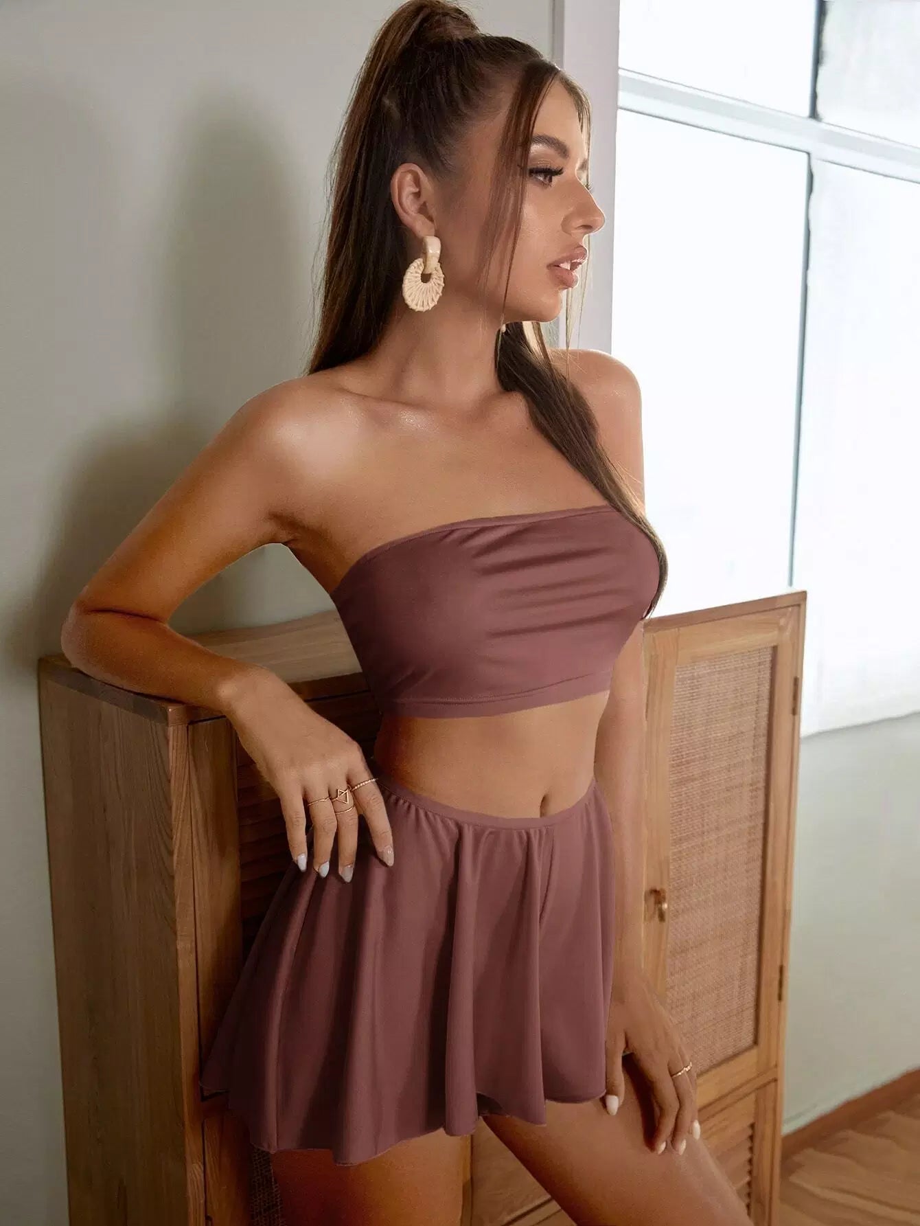 بلوزة سادة قصيرة قصيرة قصيرة مع شورت قصير