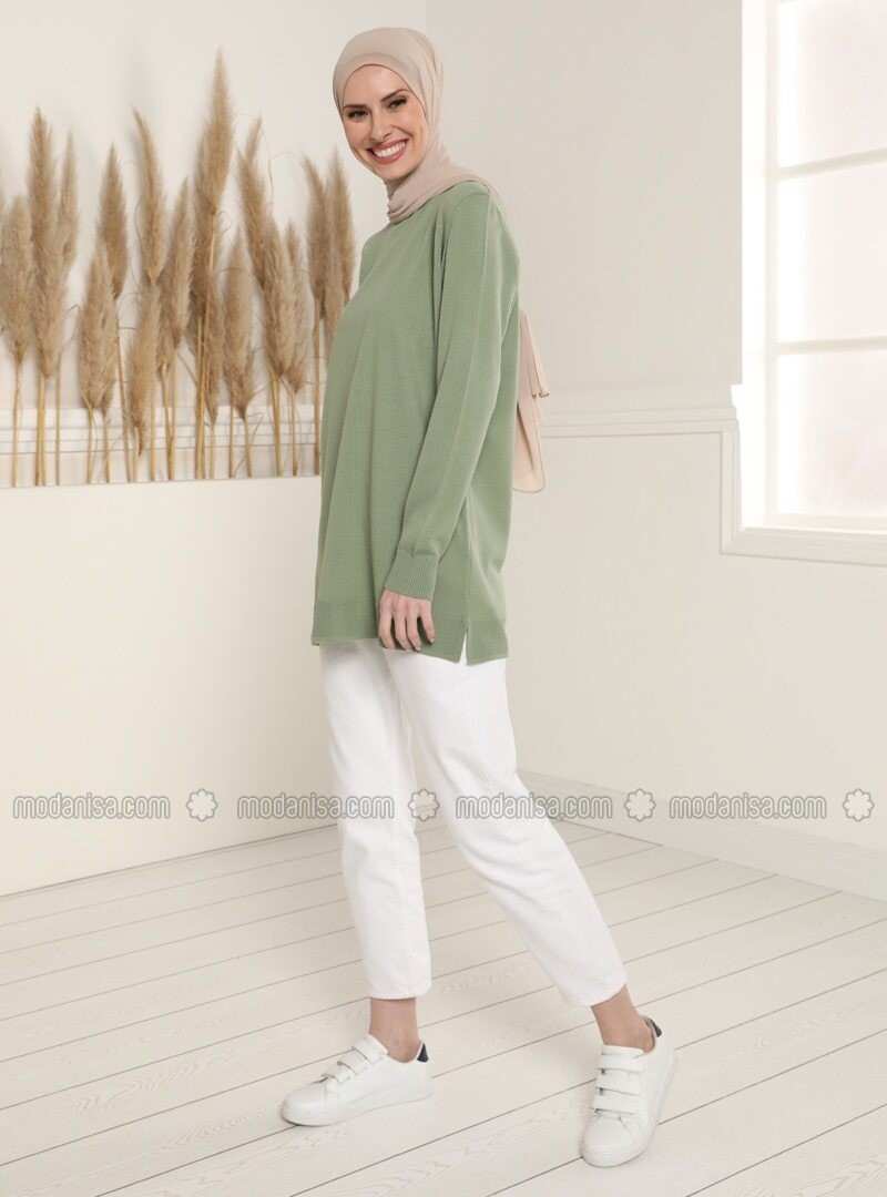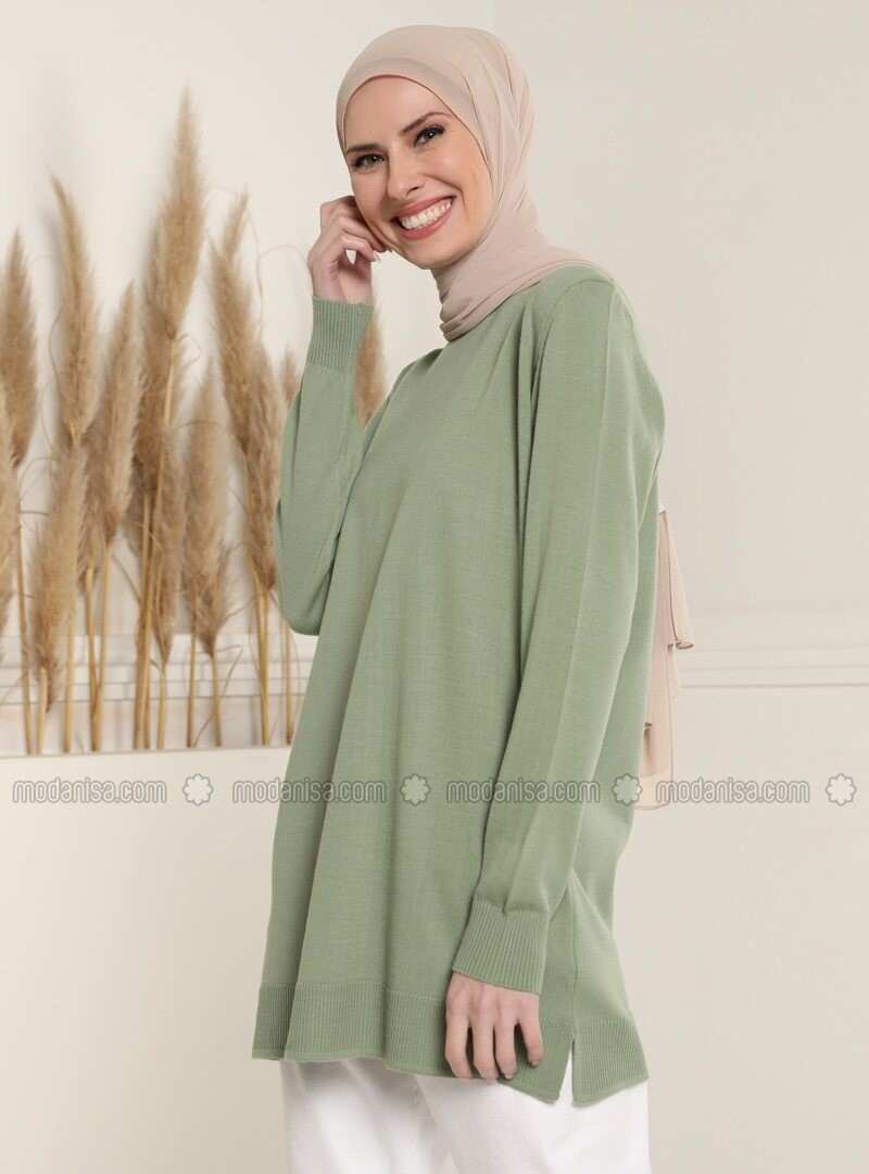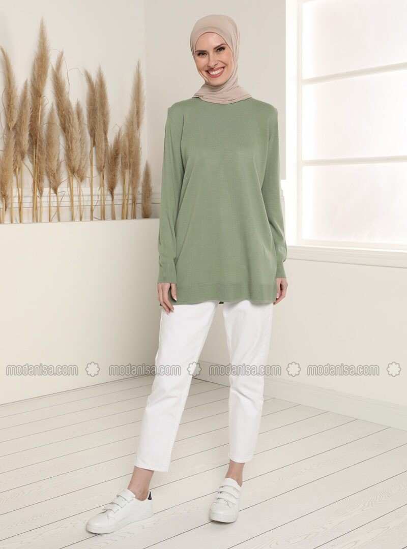 تافين الأخضر اللوز البلوز الرقبة الطاقم