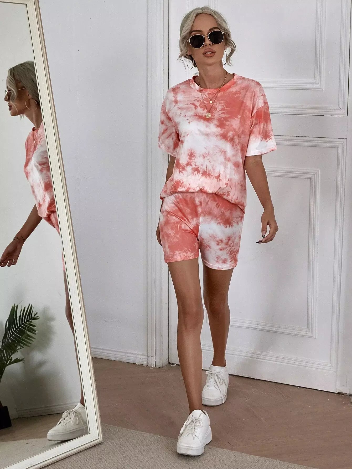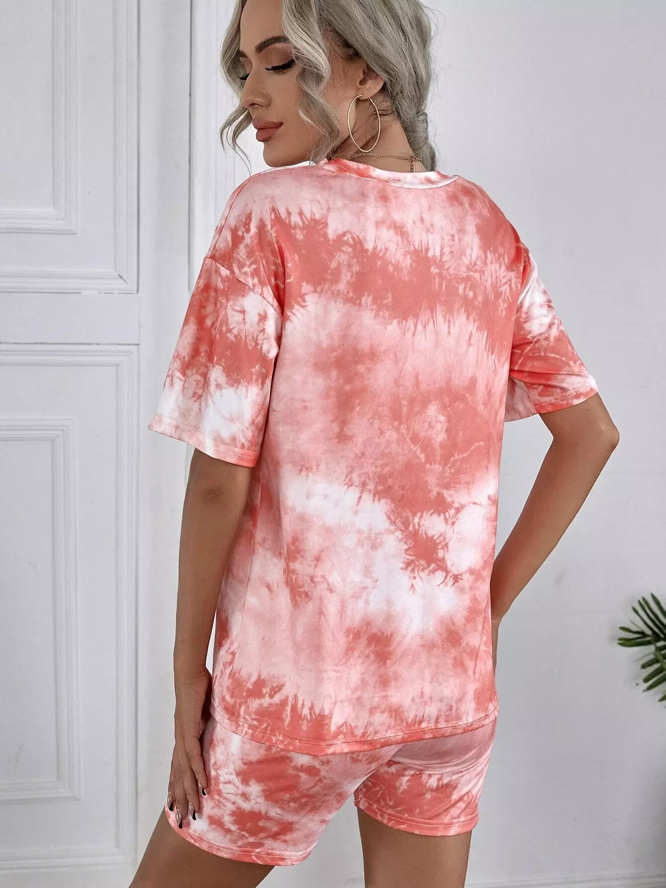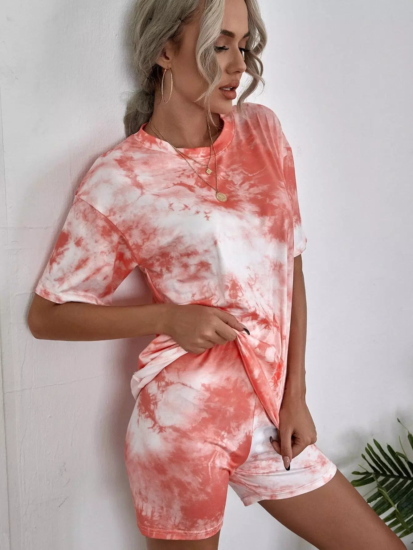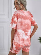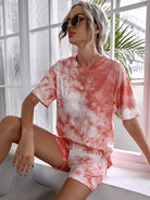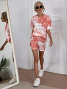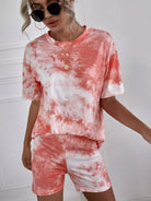تي شيرت برقبة كرو مصبوغ بربطة عنق وسروال قصير