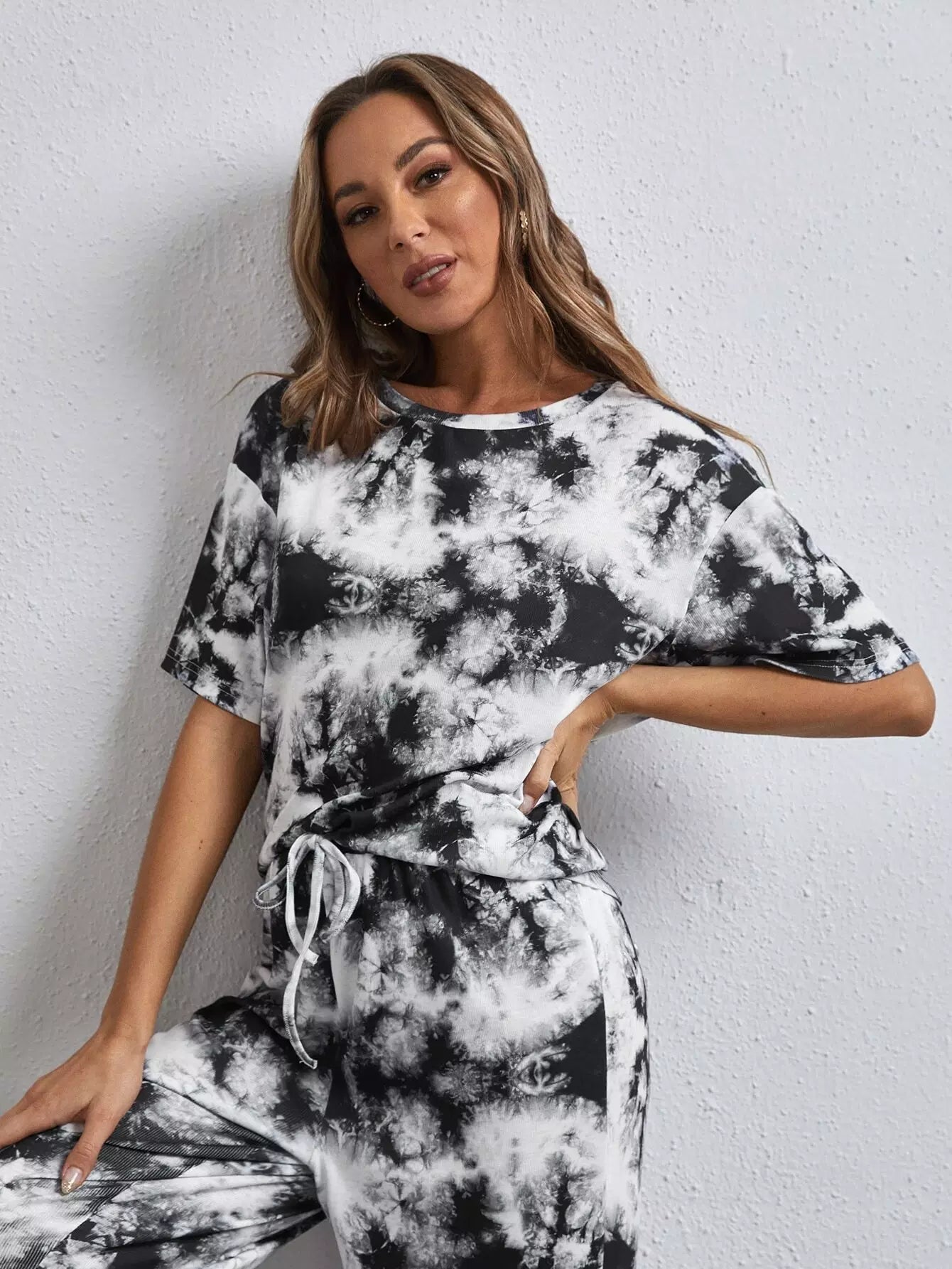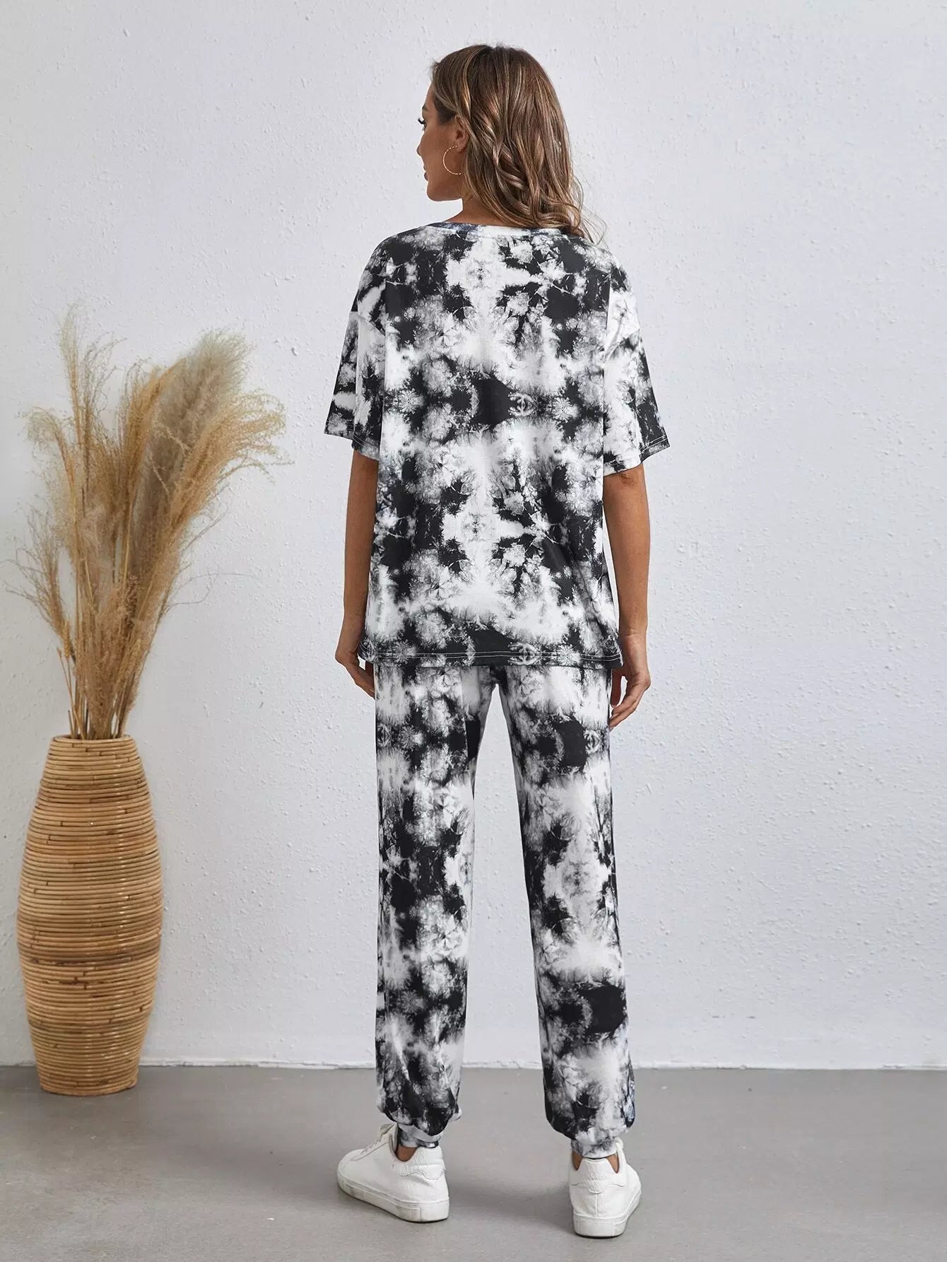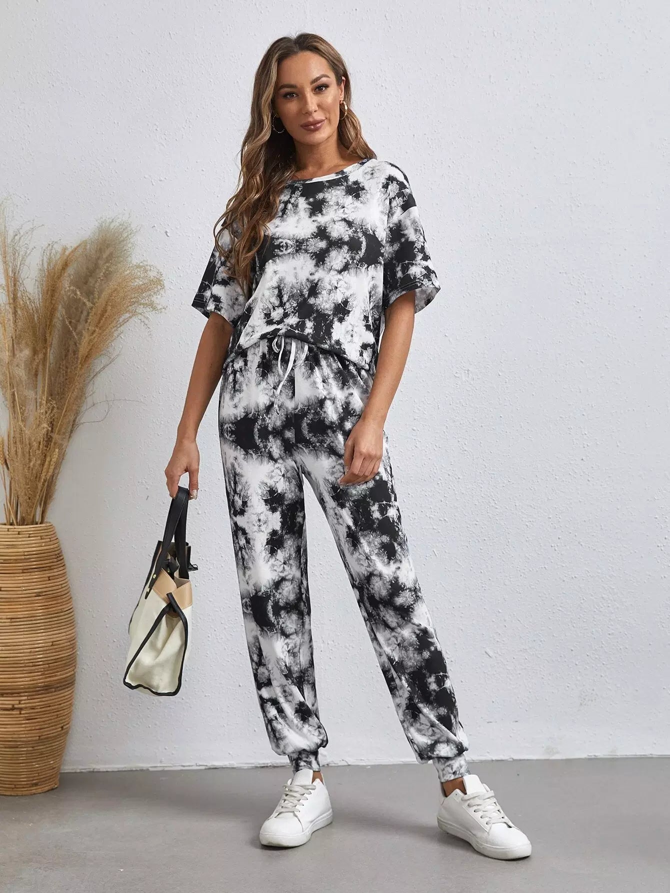 طقم بلوزة وبنطال رياضي مصبوغين بربطة عنق مصبوغين