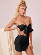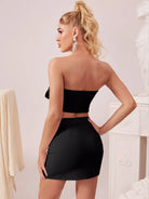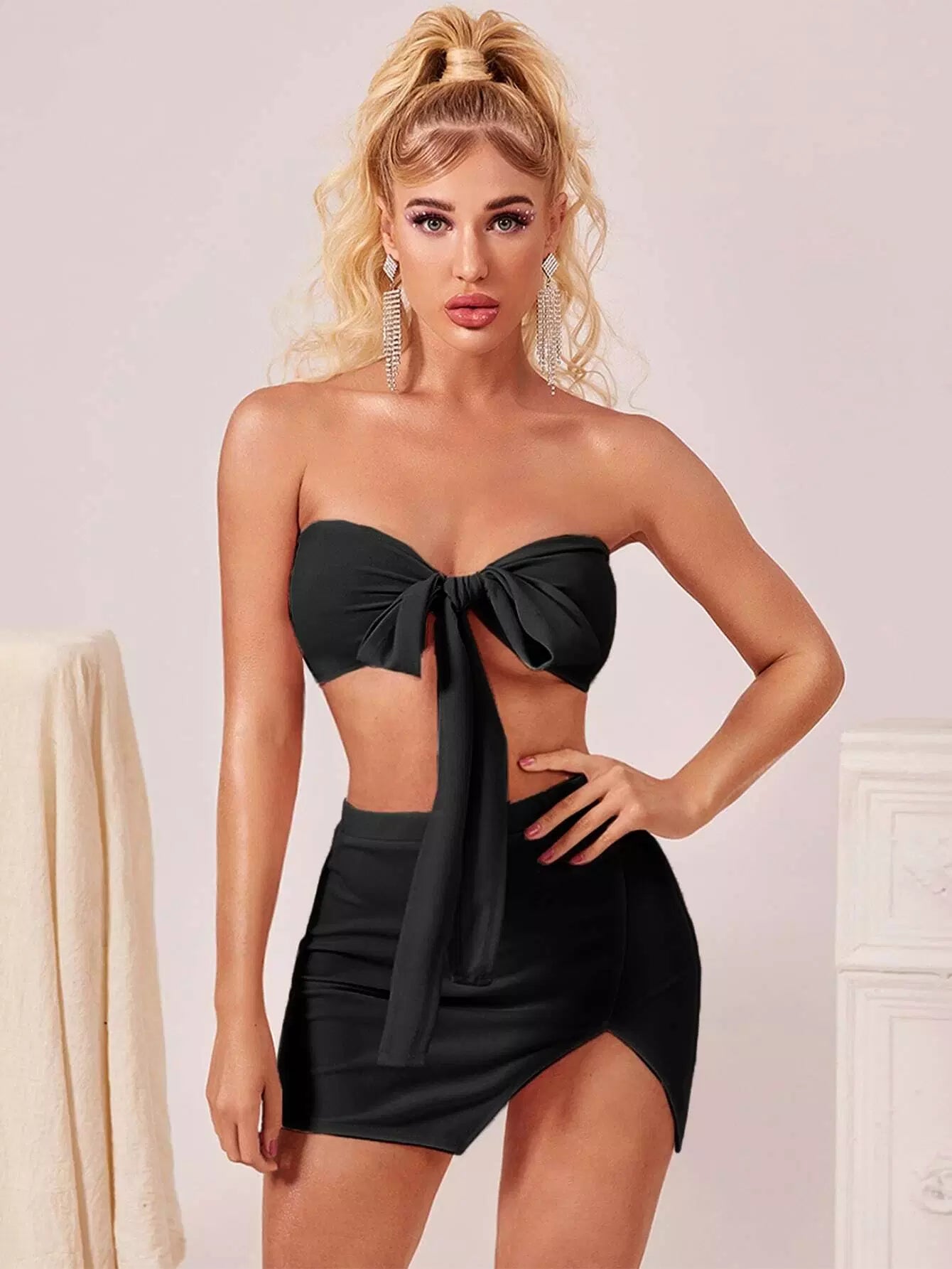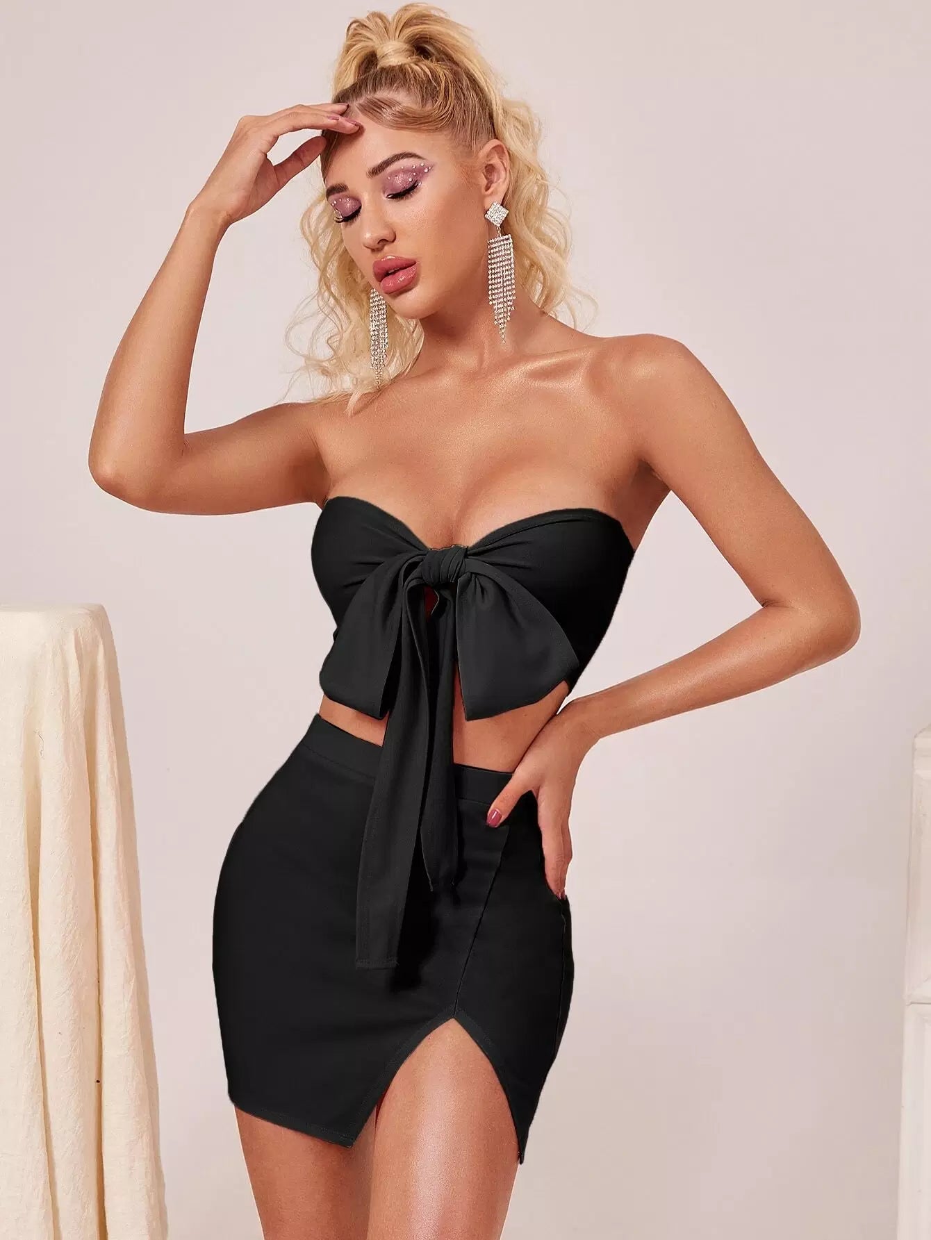طقم توب أنبوبي برباط أمامي وتنورة بحاشية مقسمة
