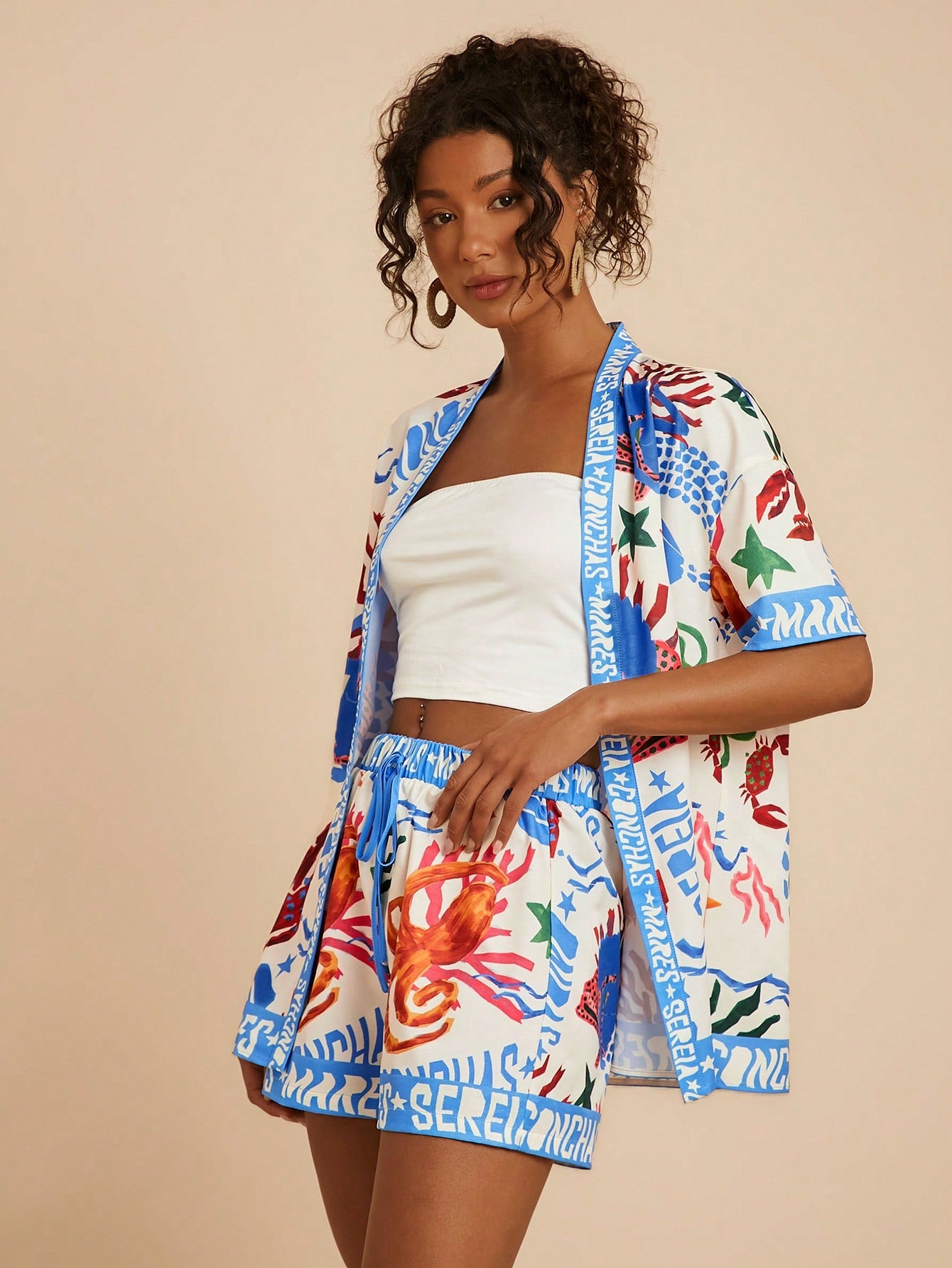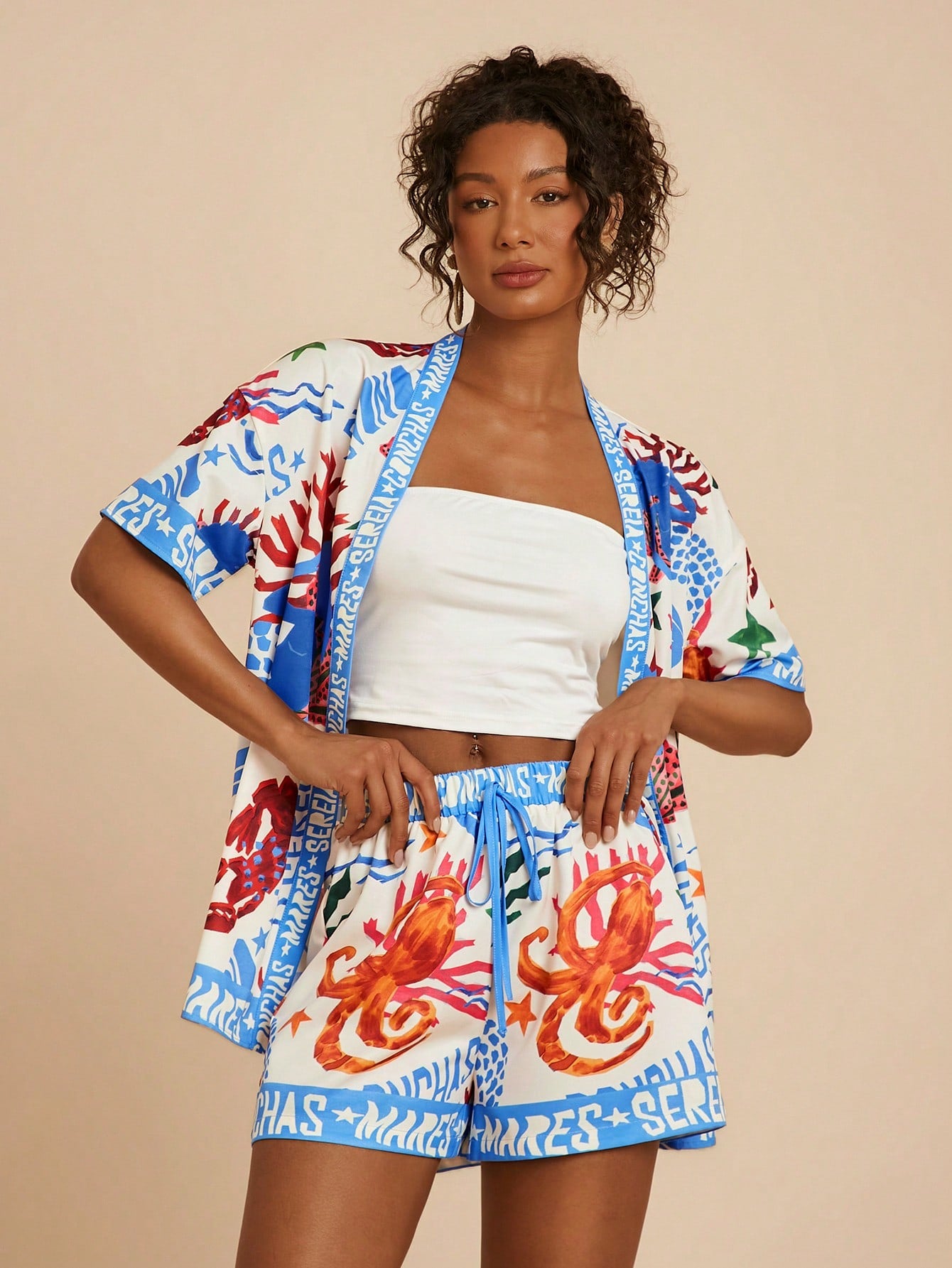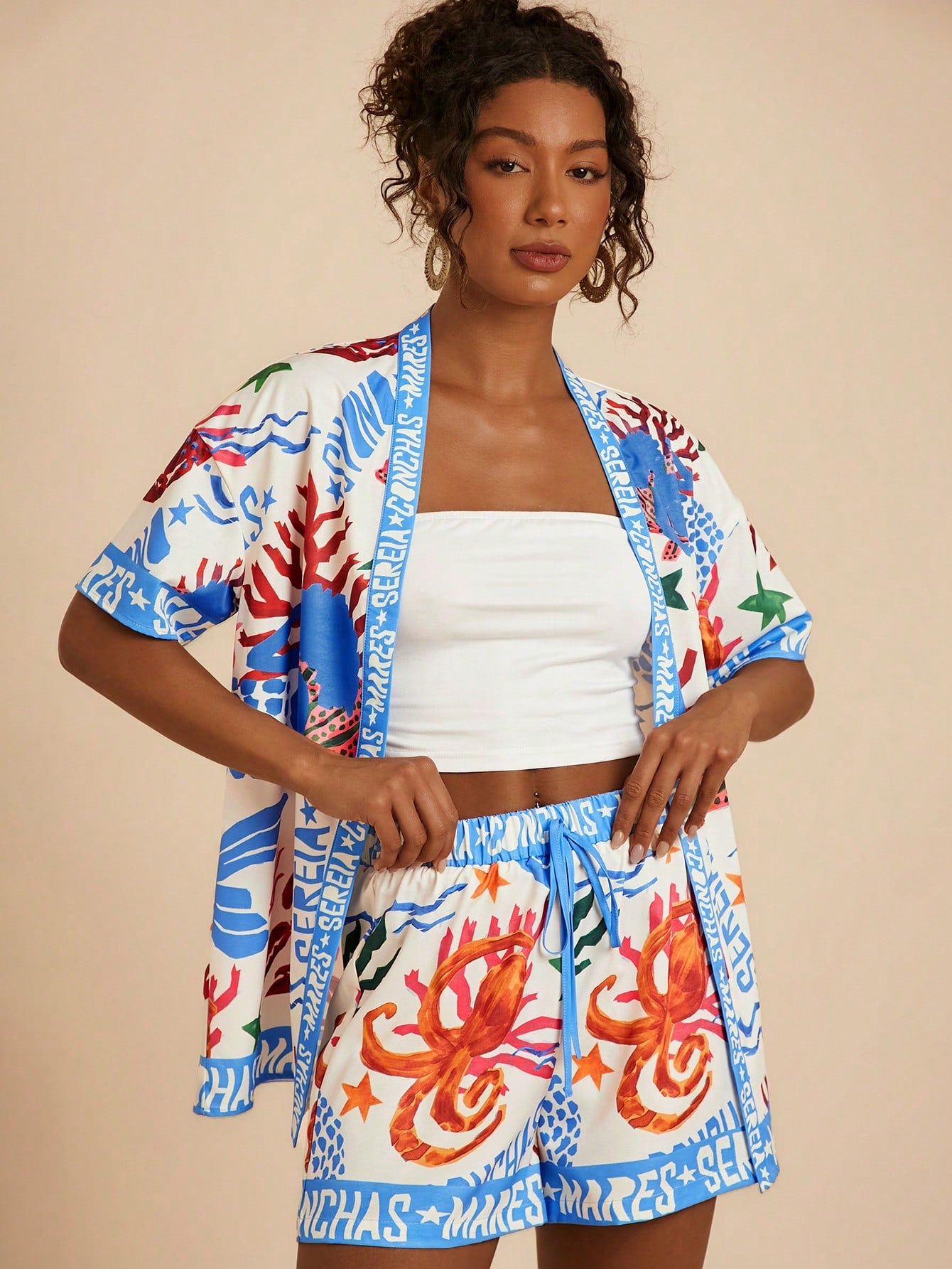 طقم ملابس نسائية من قطعتين من ترافشيك، مناسب للارتداء اليومي، مناسب للعطلات، بطباعة جرافيكية منسوجة، مناسب للصيف الكاجوال