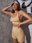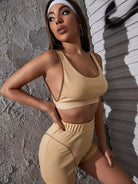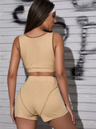 طقم تانك بدون أكمام بفتحة منخفضة على شكل بلوزة وشورت قصير بفتحة منخفضة